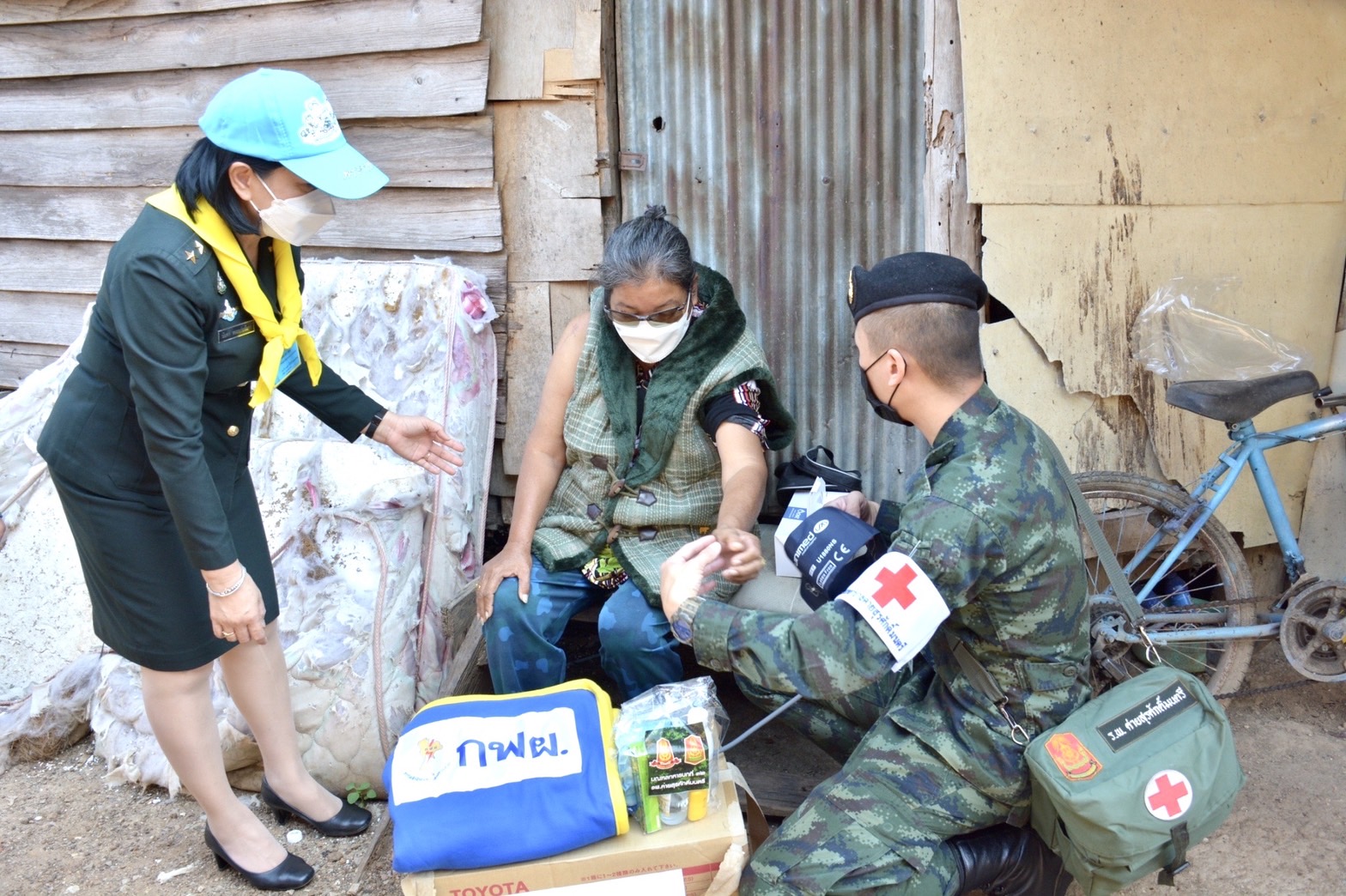 มณฑลทหารบกที่ 32 ร่วมกับ ชุดปฏิบัติการกิจการพลเรือน (ชป.กร.) เข้าเยี่ยมเยือนให้กำลังใจประชาชนกลุ่มเปราะบาง จำนวน 3 ครัวเรือน ที่มีรายได้น้อย รับจ้างรายวันและเก็บของเก่าขาย นำรายได้ใข้จ่ายในครอบครัว ณ ชุมชนบ้านป่าขาม 2 ตำบลพระบาท อำเภอเมืองลำปาง จังหวัดลำปาง