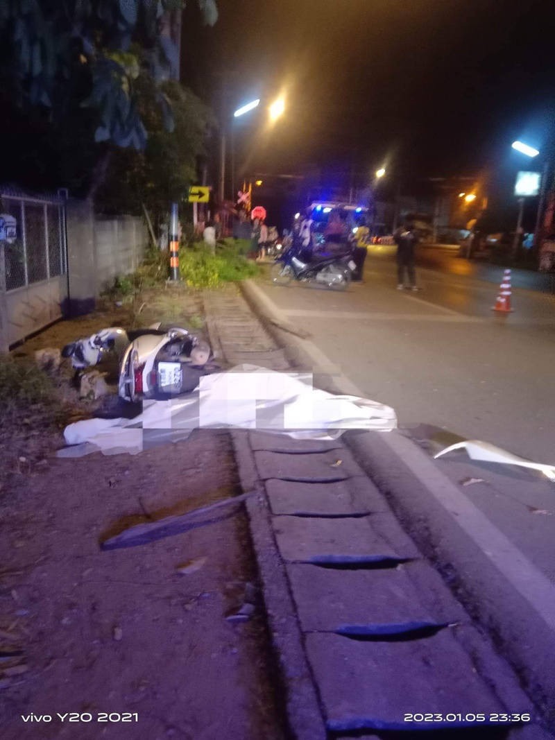 เมื่อวันที่ 5 ม.ค.2566 เวลาประมาณ 23.40 น. เจ้าหน้าที่สมาคมกู้ภัยอัมรินทร์ลำปาง ได้รับแจ้งจากศูนย์รับแจ้งเหตุและสั่งการ กู้ชีพ 1669 ว่าเกิดอุบัติเหตุรถจักรยานยนต์เสียหลัก แหกโค้งชนกับรั้วบ้าน มีผู้เสียชีวิตเป็นชาย 1 ราย บาดเจ็บ 1 ราย บริเวณก่อนถึงทางข้ามทางรถไฟป่าแลว ถ.ลำปาง-แม่ทะ ต.ชมพู อ.เมือง จ.ลำปาง จากนั้นจึงเร่งเข้าไปช่วยเหลือและตรวจสอบ