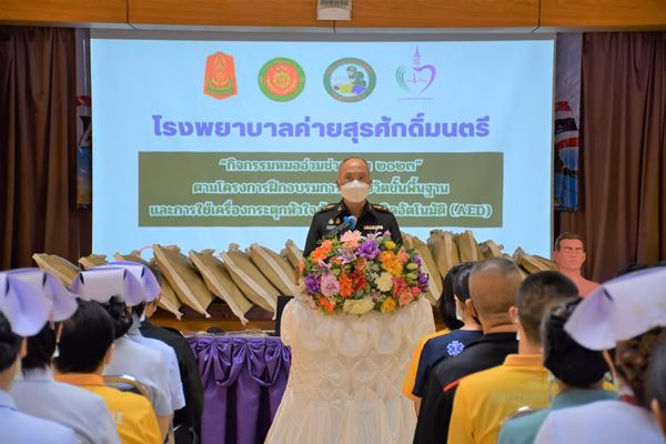 วันพุธที่ 24 พฤษภาคม 2566 เวลา 13.30 น. พ.อ.อรรณพ ธรรมลักษมี ผู้อำนวยการโรงพยาบาลค่ายสุรศักดิ์มนตรี จัดกิจกรรมโครงการ “หมออ่วมช่วยชีวิต 2023” เพื่อให้กำลังพล ครอบครัว และประชาชนในเขตพื้นที่ความรับผิดชอบ มีความรู้และสามารถช่วยเหลือผู้ป่วยเจ็บ โดยการปฐมพยาบาลเบื้องต้น การช่วยชีวิตเบื้องต้น การใช้เครื่องกระตุ้นไฟฟ้าหัวใจ (AED) การดูแลผู้ป่วยที่เป็นลมร้อน ลมแดด การช่วยเหลือคนตกน้ำ คนจมน้ำ ลดการสูญเสียของประชาชน ตามนโยบายของกองทัพบกและกรมแพทย์ทหารบก เพื่อถวายเป็นพระราชกุศล เนื่องในโอกาสเฉลิมพระเกียรติ พระบาทสมเด็จพระเจ้าอยู่หัว เฉลิมพระชนมพรรษา 71 พรรษา 28 กรกฎาคม 2566 พร้อมทั้งมอบเกียรติบัตรให้แก่ผู้เข้าร่วมอบรม ณ ห้องประชุม 1 โรงพยาบาลค่ายสุรศักดิ์มนตรี