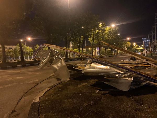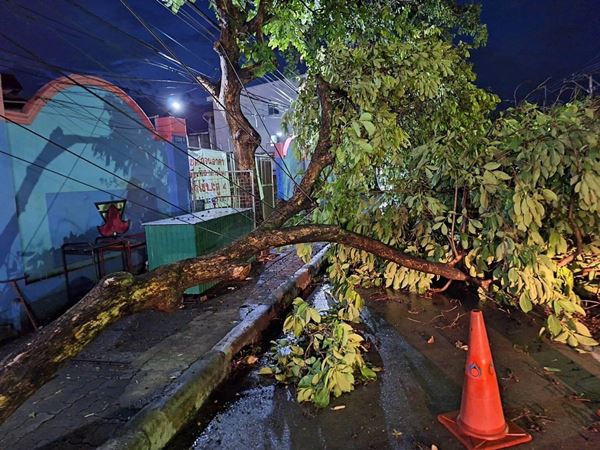 มีต้นไม้และป้ายโฆษณา ล้มกีดขวางการจราจรในพื้นที่ ต.สบตุ๋ย ต.พระบาท ต.เวียงเหนือ และต.ปงสนุก บริเวณ หน้าห้างสรรพสินค้าบิ๊กซีลำปาง ถนนหลังศูนย์ ปภ เขต 10 ลำปาง ถนนวัดปงสนุกใต้ หน้าศูนย์ Hino