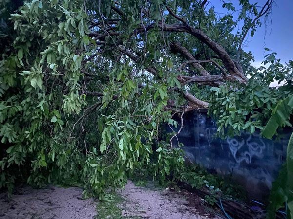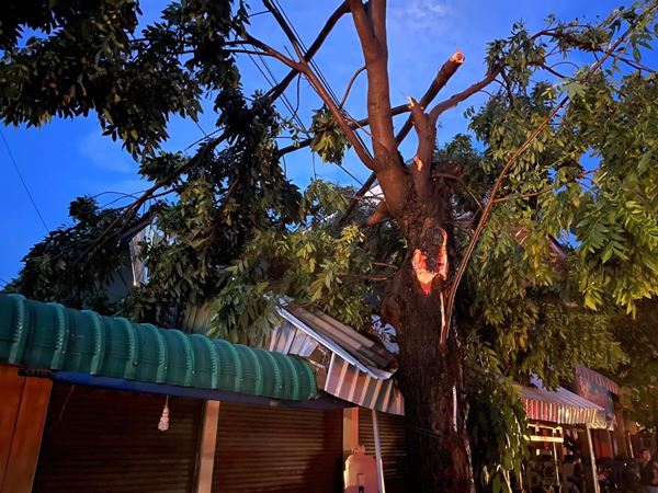 ฝนและลมถล่มลำปาง ต้นไม้โค่นทับหลังคาบ้าน กระเบื้องปลิวได้รับความเสียหายกันทั่วหน้า