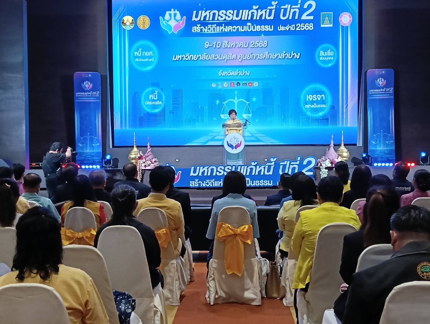 สำหรับการจัดงาน “มหกรรมแก้หนี้ สร้างวิถีแห่งความเป็นธรรม ปีที่ 2” ภายใต้โครงการเพิ่มประสิทธิภาพกระบวนการยุติธรรมทางเลือกด้วยการไกล่เกลี่ยข้อพิพาทแทนการฟ้องคดีแพ่งและคดีอาญา ระหว่างวันที่ 9 – 10 สิงหาคม 2568 ระหว่างเวลา 08.30 – 16.30 น. ณ ห้องประชุมใหญ่ ชั้น 7 อาคารประถมศึกษา มหาวิทยาลัยสวนดุสิต ศูนย์การศึกษาลำปาง