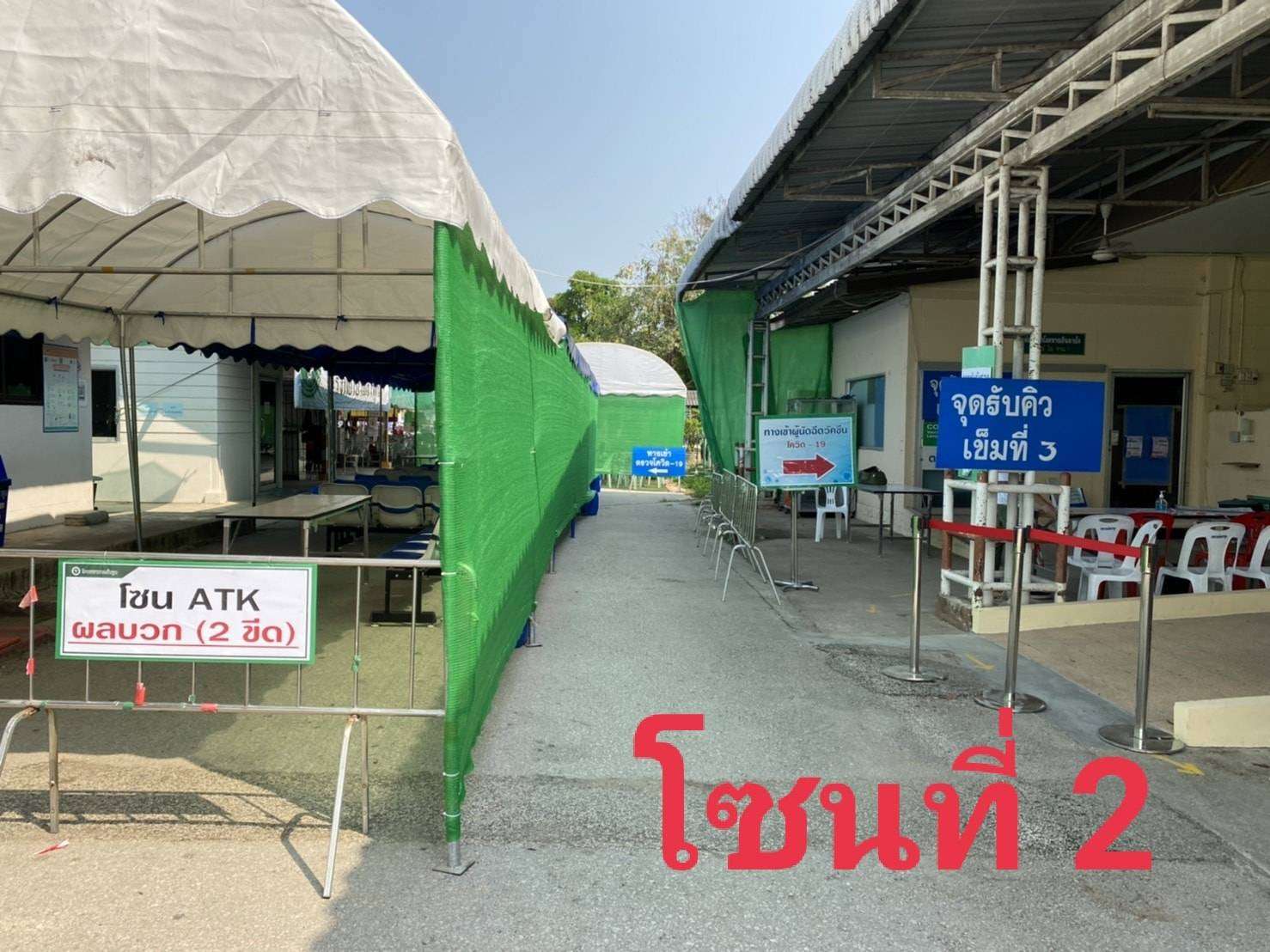 2. พื้นที่/เขต ATK ผลบวก ให้สำหรับผู้ที่มีผลตรวจ Antigen Test Kit(ATK) ผลเป็นบวกมาจากบ้าน และประสงค์มาเพื่อยืนยันหรือเข้ารับการรักษา หรือรับบริการ “เจอ แจก จบ” โดยประชาชนสามารถเข้ารับบริการได้บริเวณหน้าห้องฉุกเฉินเดิม เข้าประตูทางเข้าที่ 2 (หน้าเสาธง)