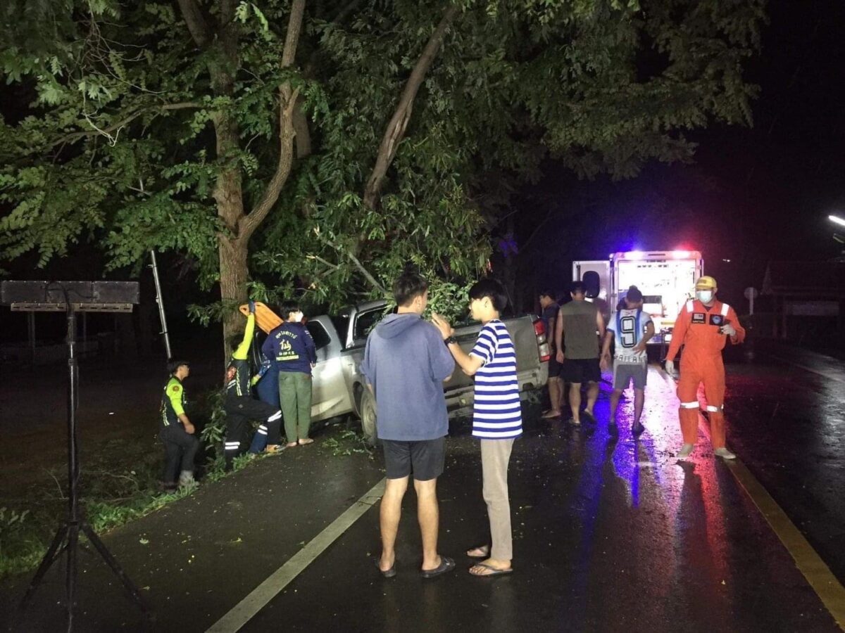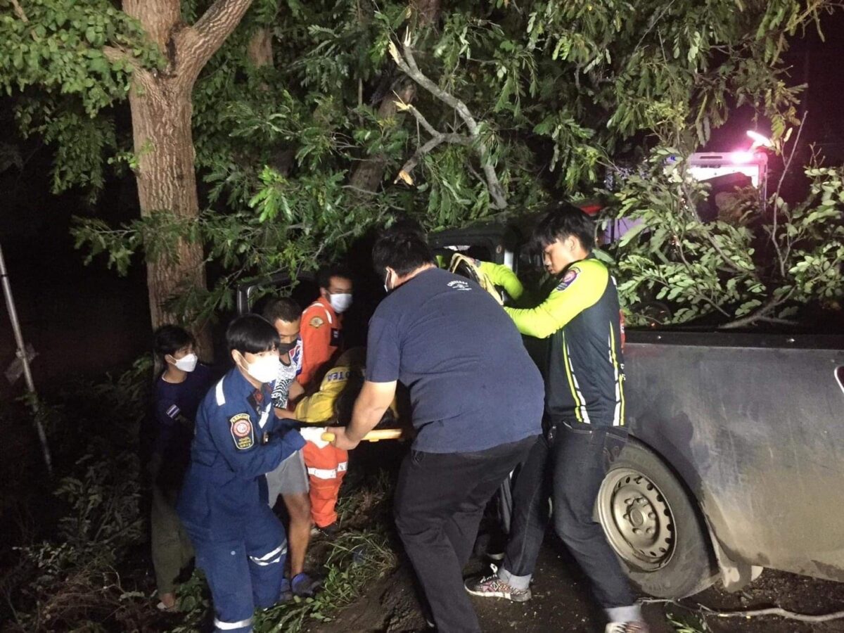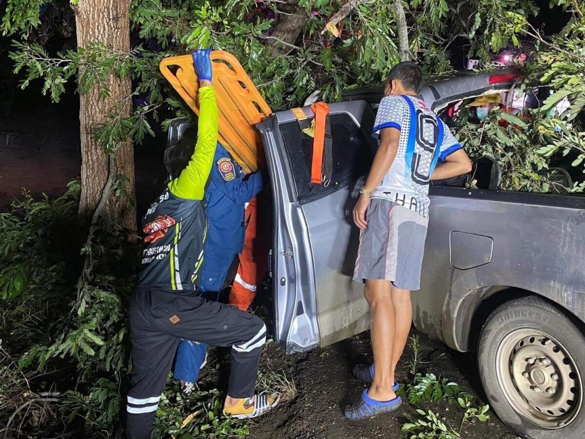 จากเหตุการณ์เมื่อเวลา 02.30 น. วันที่ 12 ส.ค. 2565 พนักงานสอบสวน สภ.บ้านโฮ่ง จ.ลำพูน รับแจ้งเกิดอุบัติเหตุรถยนต์กระบะ ชนต้นไม้ข้างถนน มีผู้ได้รับบาดเจ็บ เหตุเกิดบริเวณหน้าสนามกีฬาบ้านดงห้วยเย็น หมู่ 14 ต.บ้านโฮ่ง อ.บ้านโฮ่ง จึงรุดไปสอบสวน พร้อมด้วย กู้ชีพฯ อบต.เวียงกานต์, กู้ภัยฯ พุทไธสวรรย์ จุด อ.บ้านโฮ่ง ที่เกิดพบรถยนต์กระบะบรรทุกปลาสดชนกับต้นไม้ สภาพด้านซ้ายยุบ มีผู้บาดเจ็บ 3 ราย มีคนขับเป็นชาย ทราบชื่อนายไนท์ อายุประมาณ 23 ปี เด็กเล็ก 1 ราย ชื่อ ด.ช.กัปตัน อายุขวบเศษ ได้รับบาดเจ็บ เพียงเล็กน้อย
