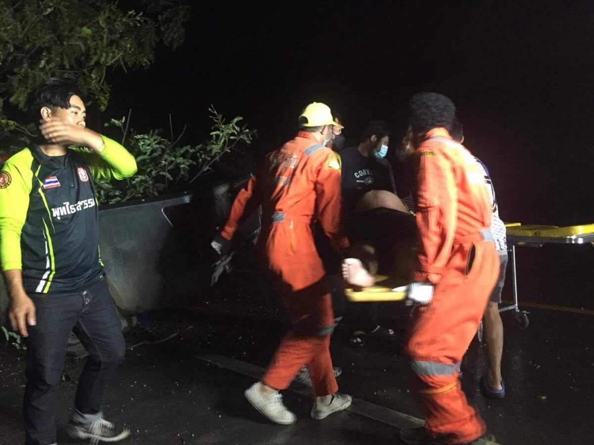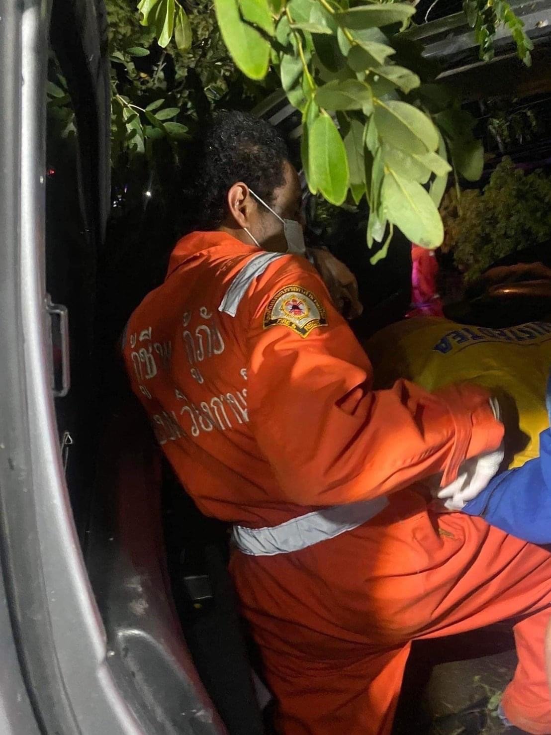 ส่วนอีกคนเป็นหญิงท้องแก่ใกล้คลอด ติดอยู่ที่เบาะด้านหน้าคู่คนขับ กู้ภัยฯ ต้องใช้เครื่องตัดถ่าง นำร่างออกมาได้รับบาดเจ็บส่ง รพ.บ้านโฮ่ง เนื่องจากครรถ์ถูกกระทบกระเทือนอย่างรุนแรง แต่ยังสามารถพูดคุยได้ ทาง รพ.บ้านโฮ่ง ได้ย้ายเข้ารักษาต่อที่ รพ.ลำพูน ทางแพทย์ตรวจครรถ์พบว่าเด็กในท้องเสียชีวิตแล้ว จึงทำการผ่าตัดนำเด็กออกมาเป็นเพศชาย แต่ต่อมาผู้เป็นแม่ทนไม่ได้สิ้นใจตายตามลูกในท้องไปอีกคน ทราบผู้เสียชีวิตชื่อ น.ส.พีชรี หรือ ”เป้” (สงวนนามสกุล) อายุ 21 ปี เป็นบ้านท่าโชค ต.ดอยหล่อ อ.ดอยหล่อ จ.เชียงใหม่