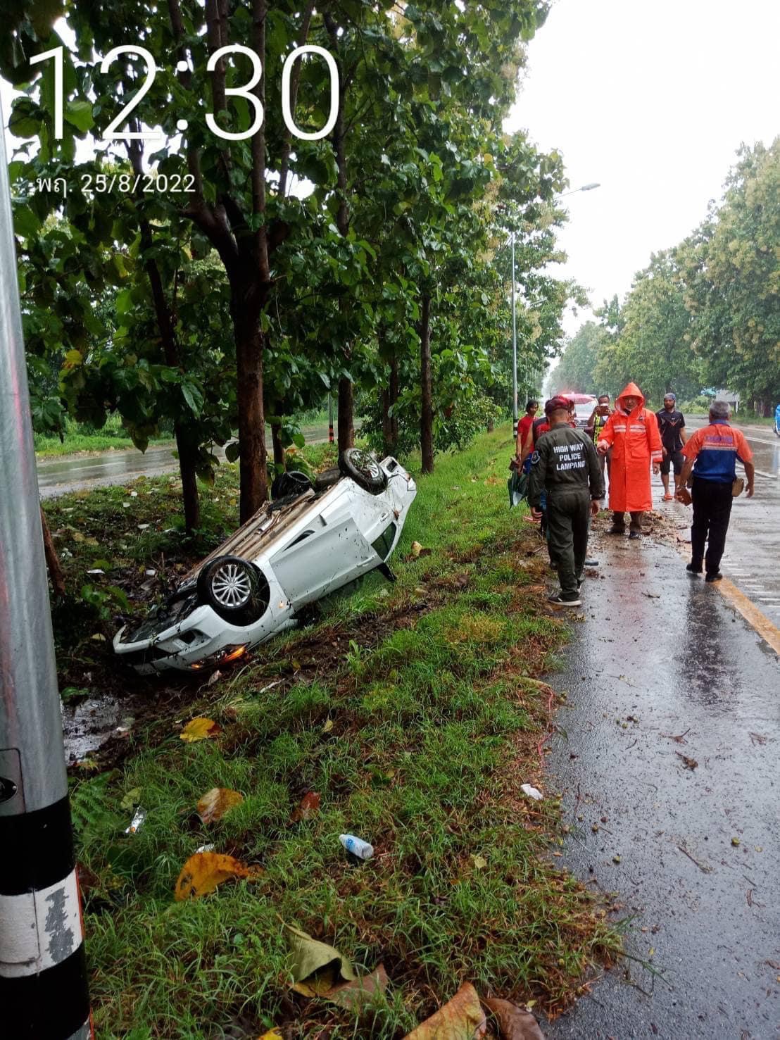 เมื่อเวลาประมาณ 12.30 น. วันที่ 25 สิงหาคม 2565 งานบริการทางการแพทย์ กองสาธารณสุขและสิ่งแวดล้อม เทศบาลตำบลศรีบัวบาน อ.เมืองลำพูน ร่วมกับ หน่วยงานที่เกี่ยวข้อง ออกเหตุช่วยเหลือรถเก๋งตกลงในร่องกลางถนน ทางหลวงหมายเลข 11 เชียงใหม่-ลำปาง บริเวณหมู่ 11 บ้านดอนแก้ว ตำบลศรีบัวบาน เจ้าหน้าที่เข้าตรวจสอบ พบชาย 1 ราย อายุประมาณ 59 ปี มีแผลถลอกตามร่างกายศีรษะบวมโน ได้ปฐมพยาบาลเบื้องต้น และนำส่ง รพ.ปริ้น ตามความประสงค์