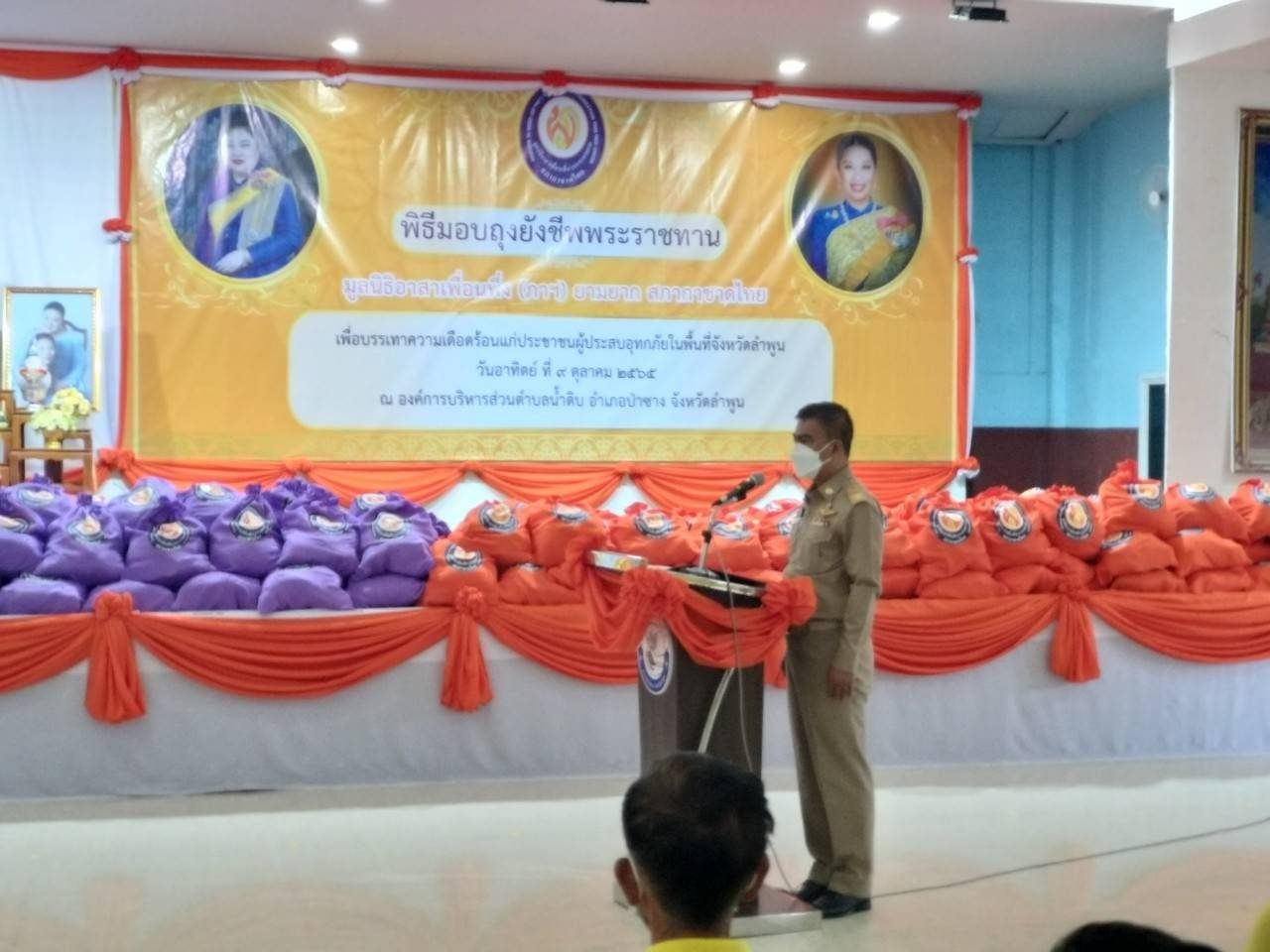 สำหรับวันนี้ (9 ต.ค. 65) ทรงพระกรุณา โปรดเกล้า โปรดกระหม่อม มอบสิ่งของพระราชทานแก่ราษฎร ผู้ประสบอุทกภัยในพื้นที่จังหวัดลำพูน จำนวน 1,155 ชุด เพื่อบรรเทาความเดือดร้อนให้กับราษฎรในพื้นที่จังหวัดลำพูน โดยได้มอบถุงยังชีพ ถวายแด่ พระสงฆ์ จำนวน 55 รูป และผู้แทนจาก 4 อำเภอ ได้แก่ อำเภอเมืองลำพูน อำเภอลี้ อำเภอป่าซาง และอำเภอเวียงหนองล่อง เข้ารับมอบ ถุงยังชีพพระราชทาน หน้าพระบรมฉายาลักษณ์ พระบาทสมเด็จพระเจ้าอยู่หัว และพระรูปพระวรวงศ์ธอ พระองค์เจ้าโสมสวลีกรมหมื่นสุทธนารีนาถ และพระรูปพระเจ้าลูกเธอ เจ้าฟ้าพัชรกิติยาภา นเรนทิราเทพยวดี กรมหลวงราชสาริณีสิริพัชร มหาวัชรราชธิดา