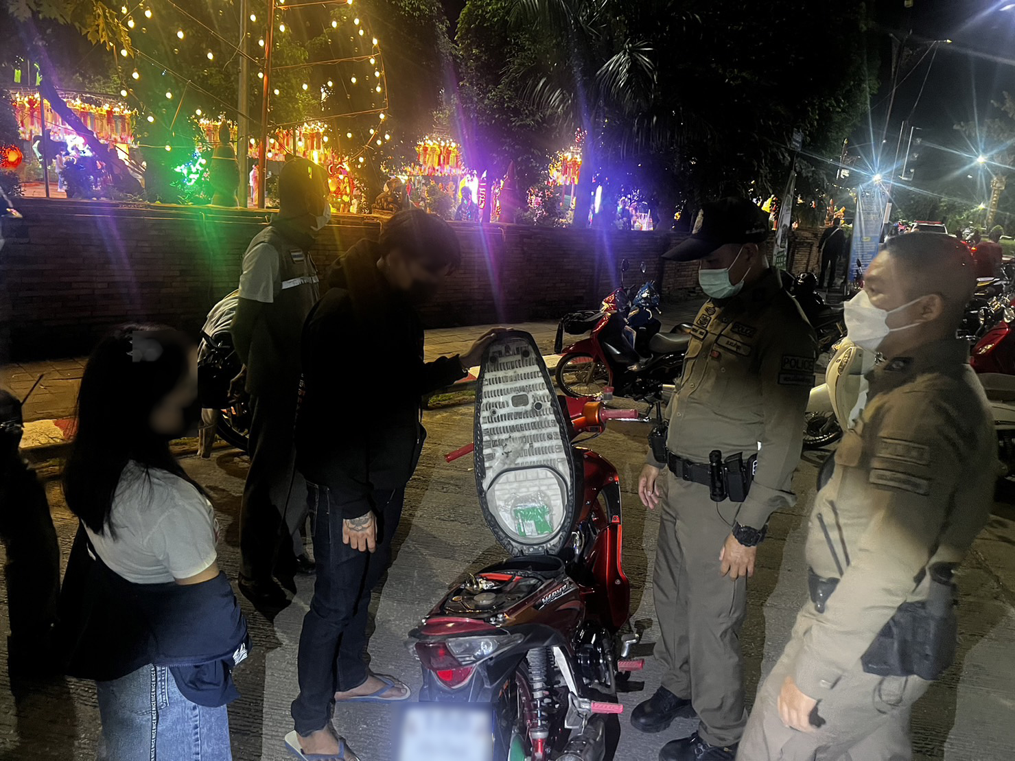 ทางด้าน พ.ต.อ.ฐิติพล อรุณสกุล ผกก.สภ.เมืองลำพูน ได้สั่งให้ชุดปราบปราม สภ.เมืองลำพูนออกตระเวนดูแลความสะดวกให้กับประชาชนทั่วไปในยามค่ำคืน เพื่อความปลอดภัยของประชาชนที่เดินทางในยามค่ำคืน ซึ่งผลการกวาดล้าง สามารถจับกุม นายดำ นามสมมุติ อายุ 22 ปี ชาว อ.ป่าซาง จ.ลำพูน พร้อมด้วยมีดยาวประมาณ 65 ซม. จำนวน 1 ด้าม นายแดง นามสมมุติ อายุ 38 ปี ชาว อ.แม่ทา จ.ลำพูน พร้อมด้วยของกลางมีดยาว 55 ซม.