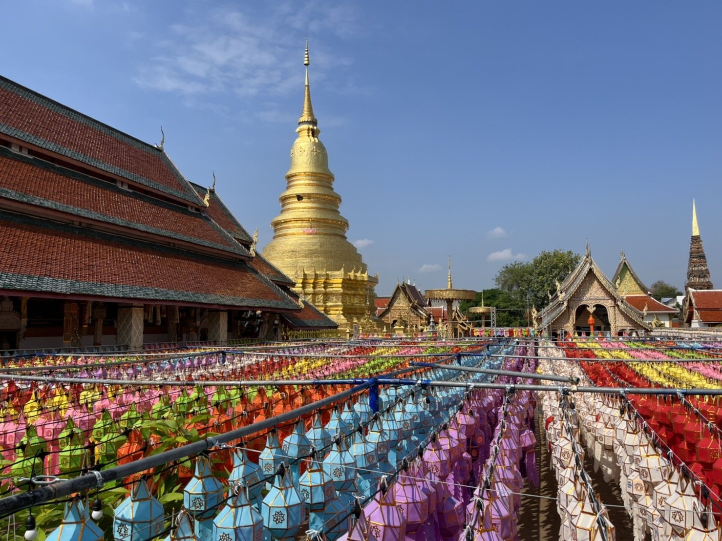 เมื่อวันที่ 25 ต.ค.2565 ผู้สื่อข่าวรายงานบรรยากาศนักท่องเที่ยว ได้เดินทางมาชมความงามในงานเทศกาลโคมแสนดวง จ.ลำพูน ประจำปี 2565 ซึ่งจัดอย่างยิ่งใหญ่ทุกปี เพื่อสร้างรายได้ให้คนในชุมชน ปี 2565 นี้ มีกำหนดจัดขึ้นวันที่ 25 กันยายน 2565 – 8 พฤศจิกายน 2565 ที่ ที่วัดพระธาตุหริภุญชัย วรมหาวิหาร อ.เมือง จ.ลำพูน วันนี้นักท่องเที่ยวยังเดินทางชมความงามของโคมแสนดวง ในบรรยากาศกลางวันก็ถ่ายภาพได้ส่วนงามไม่แพ้แสงกลางคืน นักท่องเที่ยวได้เข้าไปกราบพระขอพรพระประธาน สรงน้ำพระธาตุหริภุญชัย ได้พรมงคลแล้วยังได้บุญกุศลกันทั่วหน้า