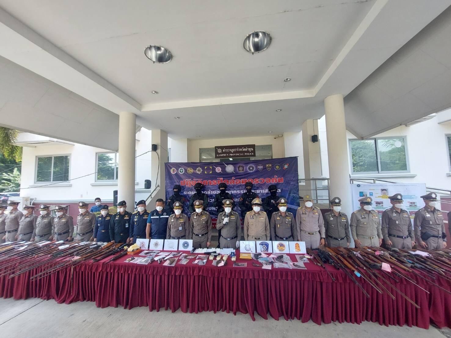ตำรวจลำพูน ระดมกวาดล้างยาเสพติด 359 คดี และจับกุม พ.ร.บ.อาวุธปืน จำนวน 370 คดี
