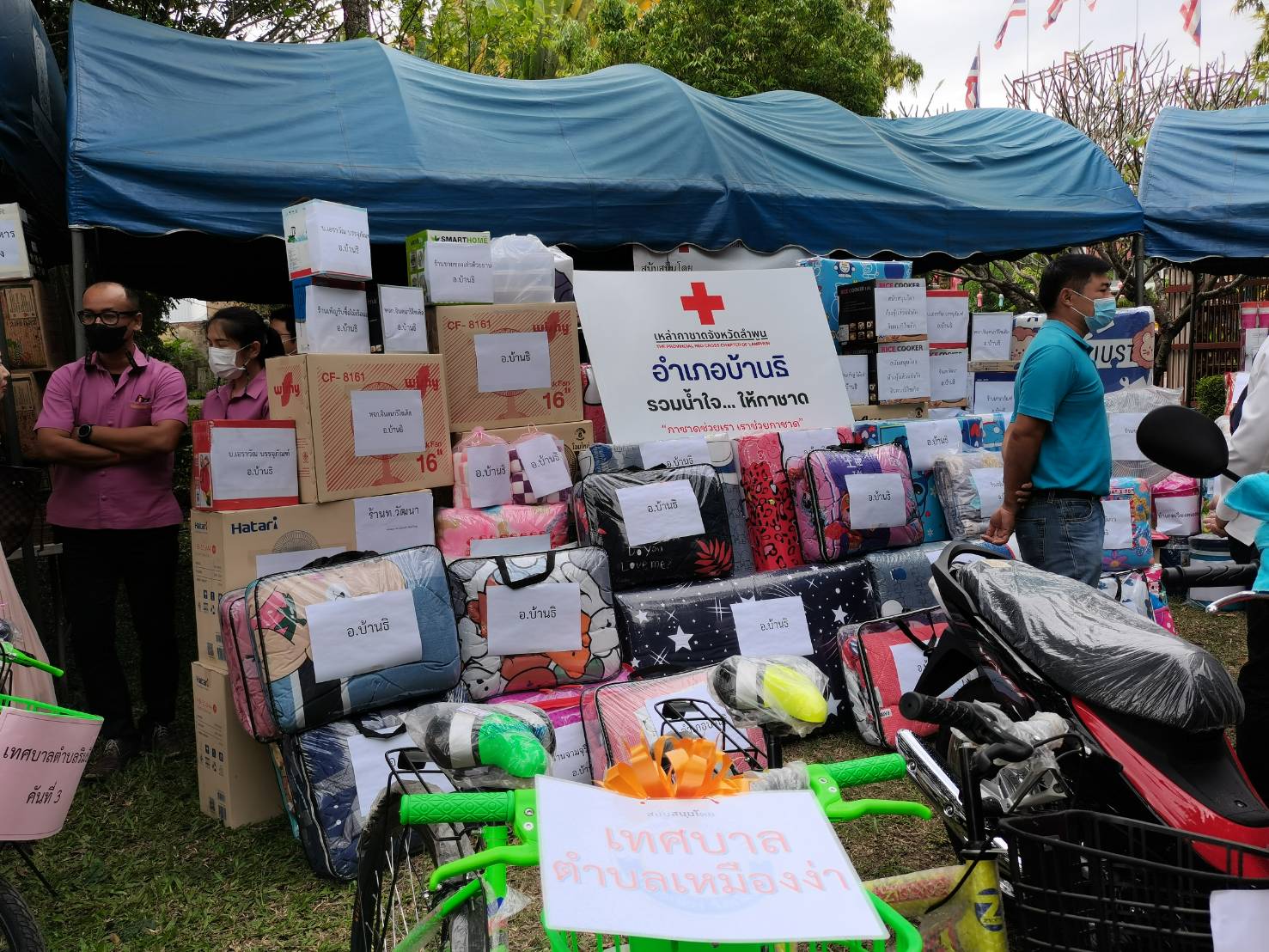 เมื่อวันที่ 24 พฤศจิกายน 2565 เวลา 10.00 น. ณ จวนผู้ว่าราชการจังหวัดลำพูน นายสันติธร ยิ้มละมัย ผู้ว่าราชการจังหวัดลำพูน พร้อมด้วย นางดวงกมล ยิ่มละมัย นายกเหล่ากาชาดจังหวัดลำพูน เป็นประธานรับมอบสิ่งของจากส่วนราชการของ นายอำเภอทั้ง 8 อำเภอ ของหน่วยงานภาครัฐ และภาคเอกชน ตลอดจนผู้มีจิตศรัทธา ที่ได้นำสิ่งของต่างๆ และเงินสนับสนุนมามอบให้อย่างไม่ขาดสาย