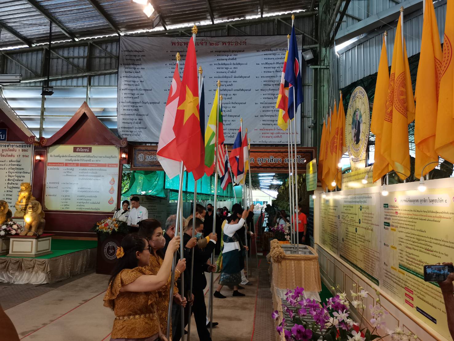 โดยนางสาวทิพย์สิริ จำนงนิตย์ ในฐานะประธานองค์กรชมรมฯ พร้อมด้วยสมาชิกได้เข้าร่วมในพิธี และก่อนที่จะมีพิธีทอดผ้าป่า ได้มีพิธีทำบุญตักบาตร พิธีเวียนเทียน พิธีถวายพุ่มดอกไม้สดสักการบูชาพระรัตนตรัย พิธีถวายโภชนาอาหารสักการบูชาพระรัตนตรัย พิธีประดับธงอาเซียนและประเทศสมาชิก การแสดงทางวัฒนธรรมพื้นบ้านต้อนรับคณะผ้าป่าสามัคคีอาเซียน และในช่วงบ่าย พิธีทอดผ้าป่าสามัคคีอาเซียน เพื่อสร้างบุญสร้างกุศล