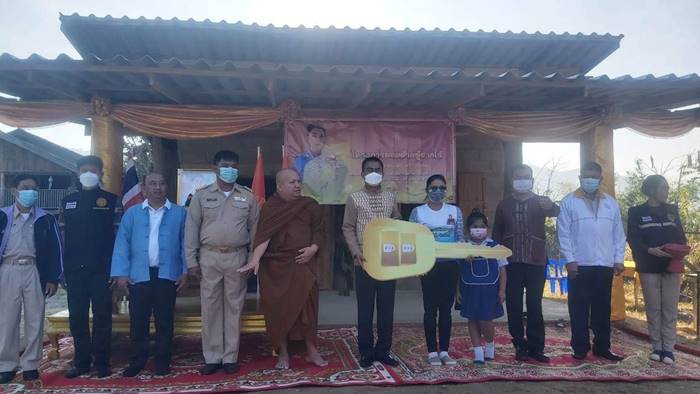โดยได้มอบบ้านจำนวน 2 หลัง หลังแรก นางมยุรา ปิงเมือง หลังที่ 2 นางสังวร ดิษฐ์คล้ายซึ่งพิการทางสายตา พร้อมมอบผ้าห่มแก่ราษฎรบ้านเด่นเหม้า จำนวน 40 ผืน