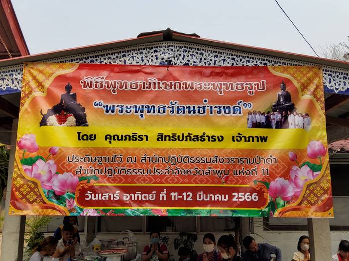 วันนี้(12 ม.ค. 66) เวลา 09:30 ถึง 11:00 นาฬิกา นายชาตรี กิติธนดิตถ์ รองผู้ว่าราชการจังหวัดลำพูน เป็นประธานในพิธีสมโภชพระพุทธรูป “พระพุทธรัตนธำรงค์” ณ สำนักปฏิบัติธรรมสังฆวราราม พระสีมา หมู่ที่ 13 บ้านป่าดำ ตำบลบ้านโฮ่ง อำเภอบ้านโฮ่ง จังหวัดลำพูน โดยมีนายประเชิญ สมองดี นายอำเภอบ้านโฮ่ง พร้อมด้วยคณะศรัทธาประชาชนเข้าร่วมฯ