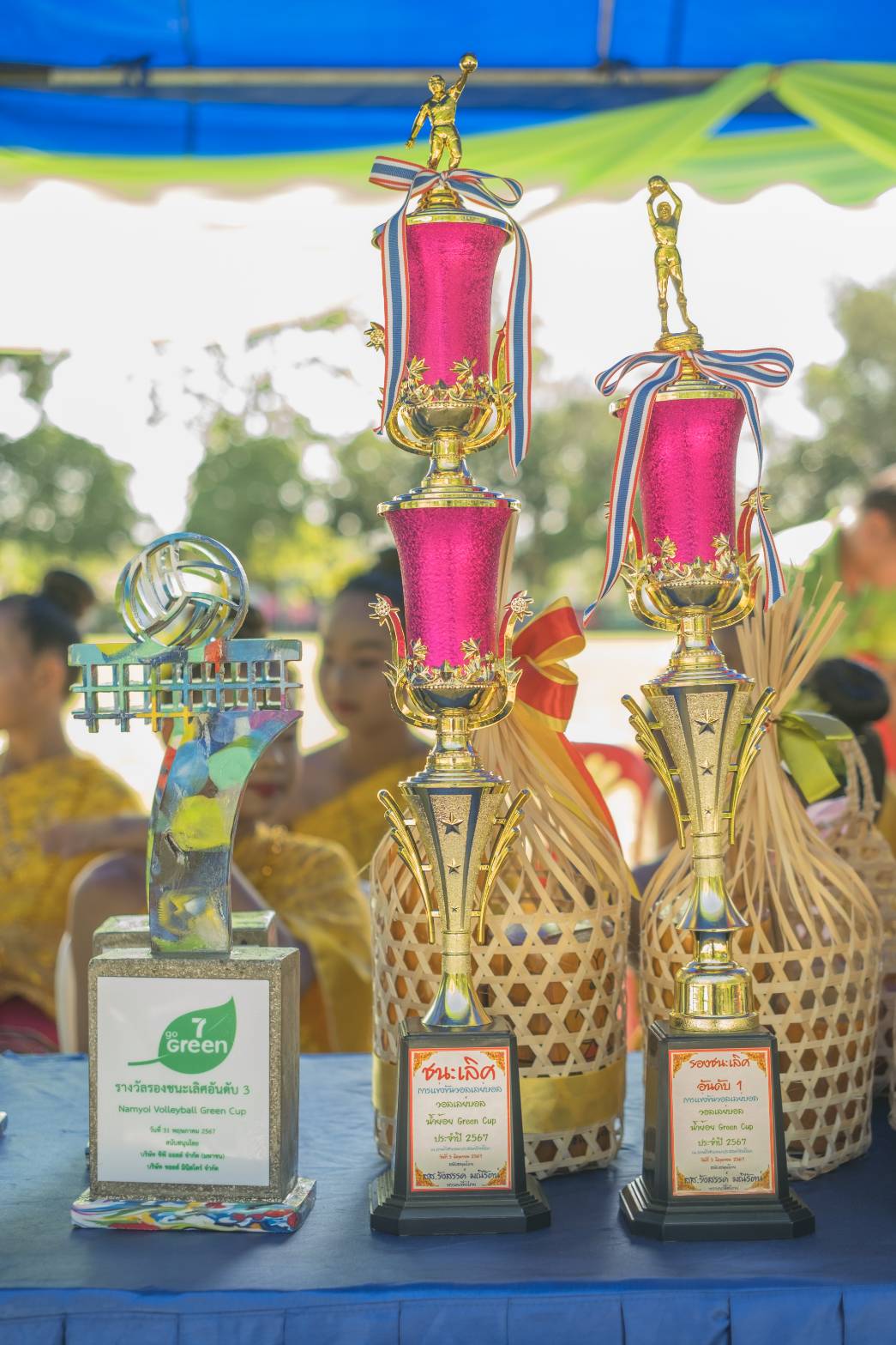 - ถ้วยรางวัลจากพลาสติกรีไซเคิล ทำจากฝาขวดพลาสติกจำนวน 750 ฝา และถุงวิบวับ 600 ถุง สามารถลดปริมาณขยะพลาสติกทิ้งลงหลุมฝังกลบไปได้รวม 15 กิโลกรัม