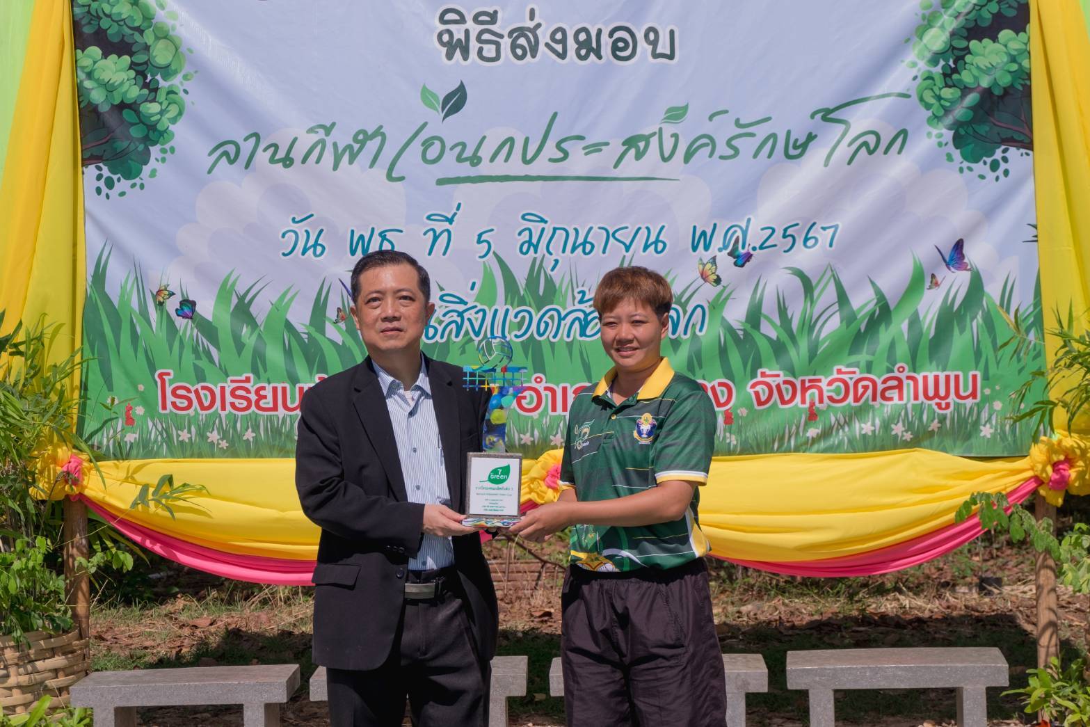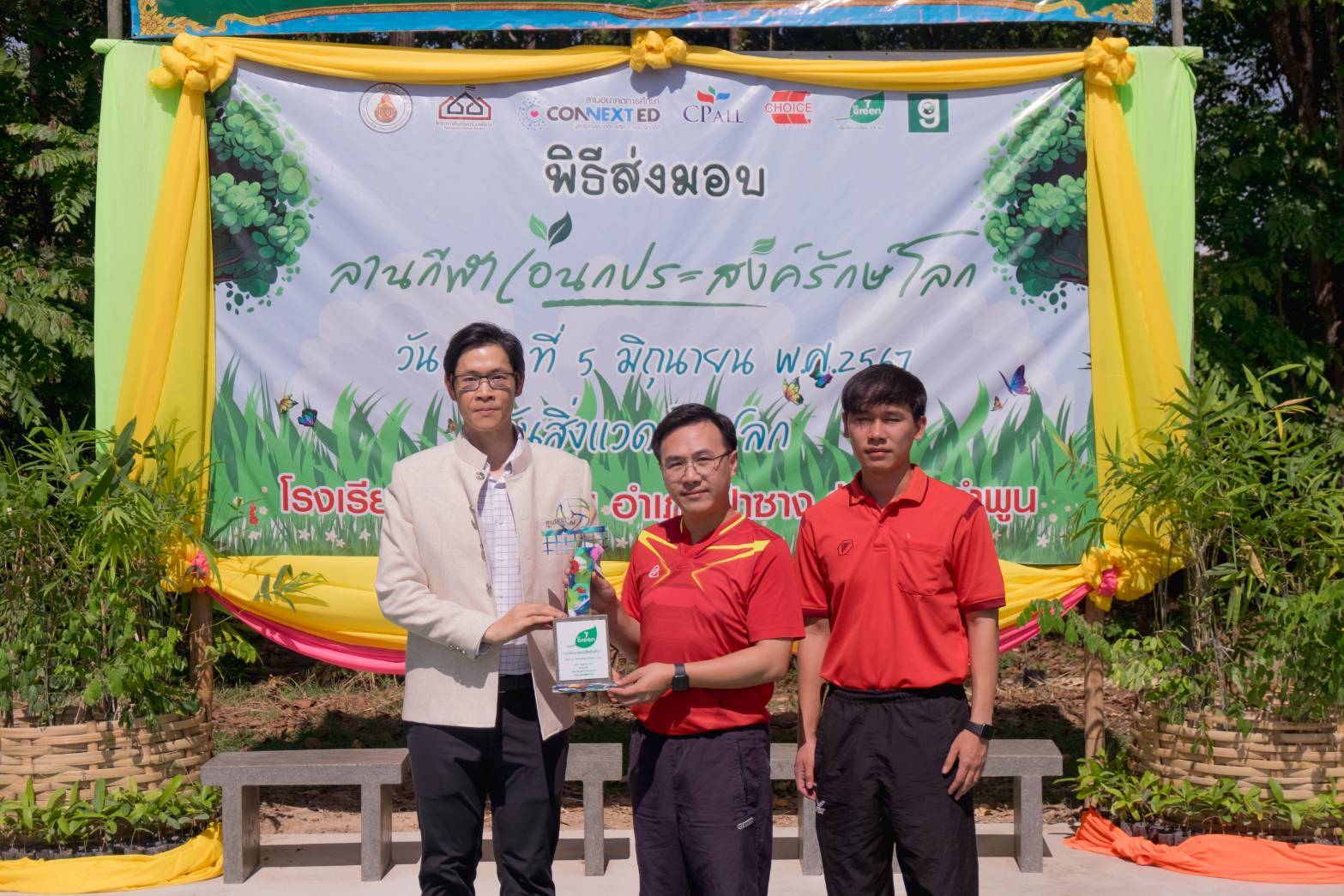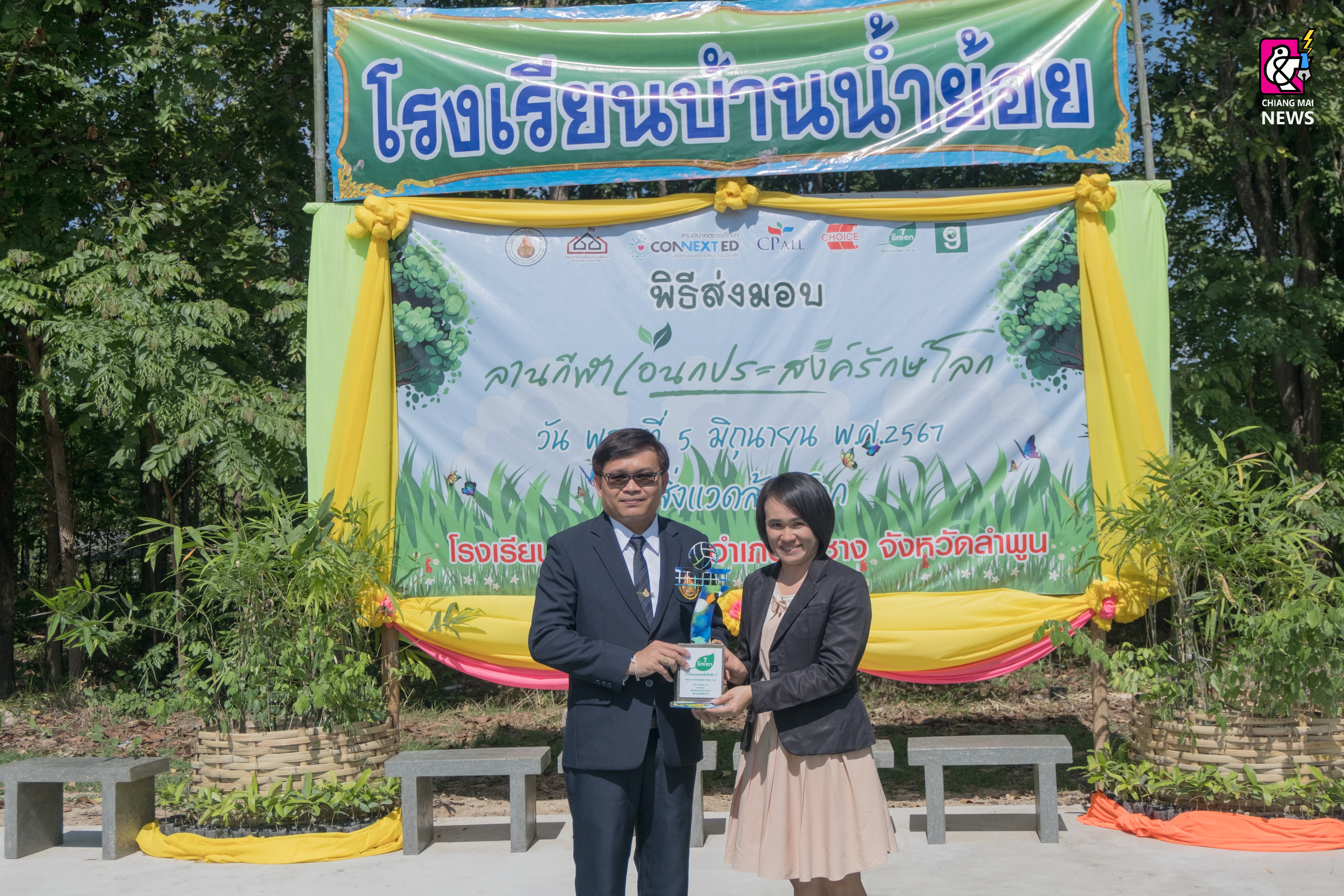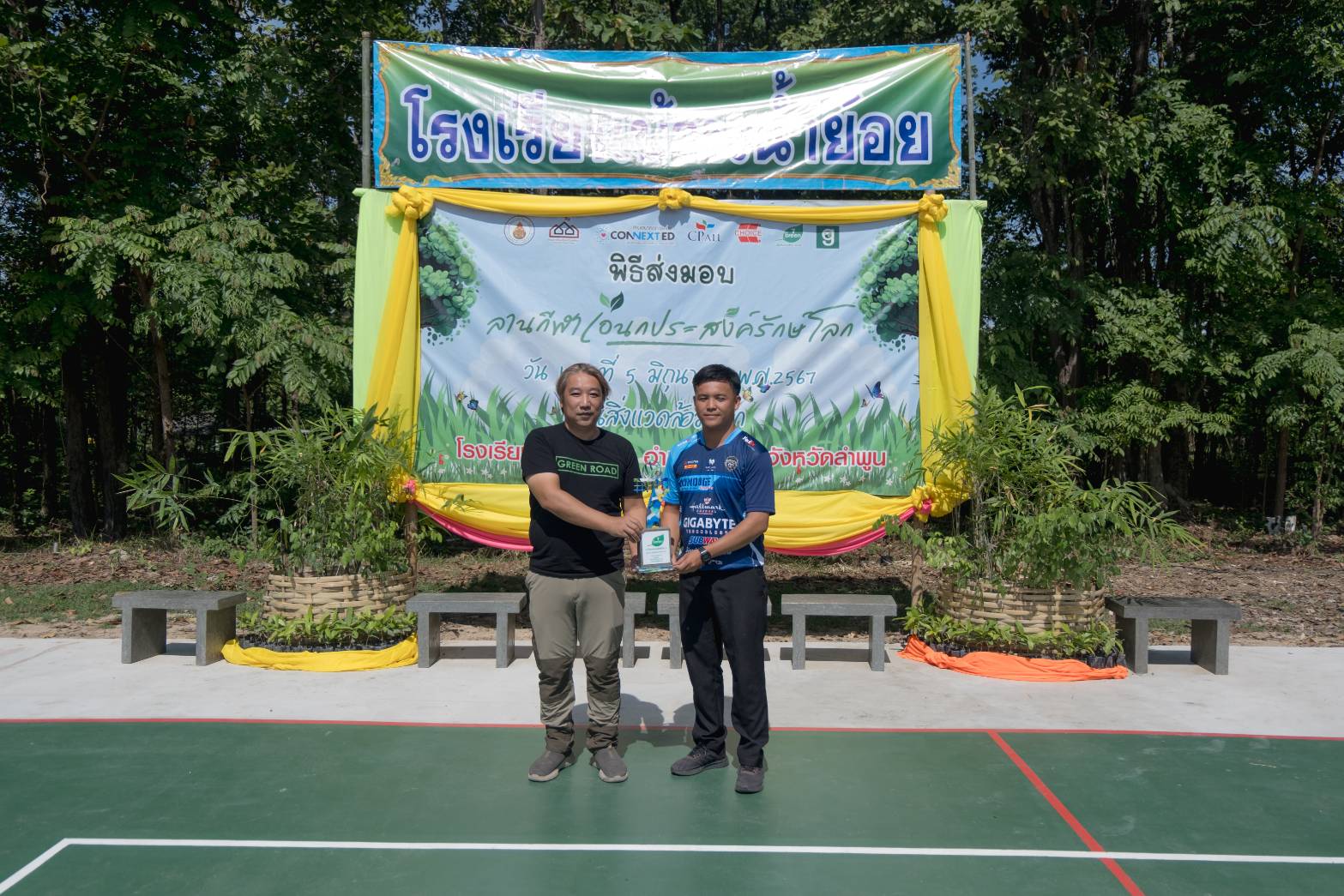 ภายในงาน นายประสิทธิ์ ฉกาจธรรม รองกรรมการผู้จัดการ สายงานพัฒนาความยั่งยืน บมจ.ซีพี ออลล์ เป็นประธานในพิธีเปิด พร้อมด้วย นายบวรเวทย์ ตันตรานนท์ กรรมการผู้จัดการ (ร่วม) สายงานปฏิบัติการ บริษัท ชอยส์ มินิ สโตร์ จำกัด, ผศ.ดร.เวชสวรรค์ หล้ากาศ อาจารย์ประจำภาควิชาเทคโนโลยีอุตสาหกรรม คณะวิทยาศาสตร์และเทคโนโลยี มหาวิทยาลัยราชภัฏเชียงใหม่ เจ้าของเพจ Green Road, นางสาวสกุณา นันธะชัยเดชากุล ผู้อำนวยการโรงเรียนบ้านน้ำย้อย จ.ลำพูน และ ดร.กฤติน พันธุ์เสนา รองผู้อำนวยการสำนักงานเขตพื้นที่การศึกษาประถมศึกษาลำพูน เขต 1 ร่วมพิธีเปิดและส่งมอบ “ลานกีฬาเอนกประสงค์รักษ์โลก” อีกทั้งภายในงานมีการจัดแข่งขันวอลเลย์บอลรอบชิงชนะเลิศและมอบถ้วยรางวัลที่ทำจากพลาสติกกำพร้าให้กับทีมชนะเลิศ ซึ่งบรรยากาศภายในงานเต็มไปด้วยรอยยิ้มและความประทับใจของทุกคน