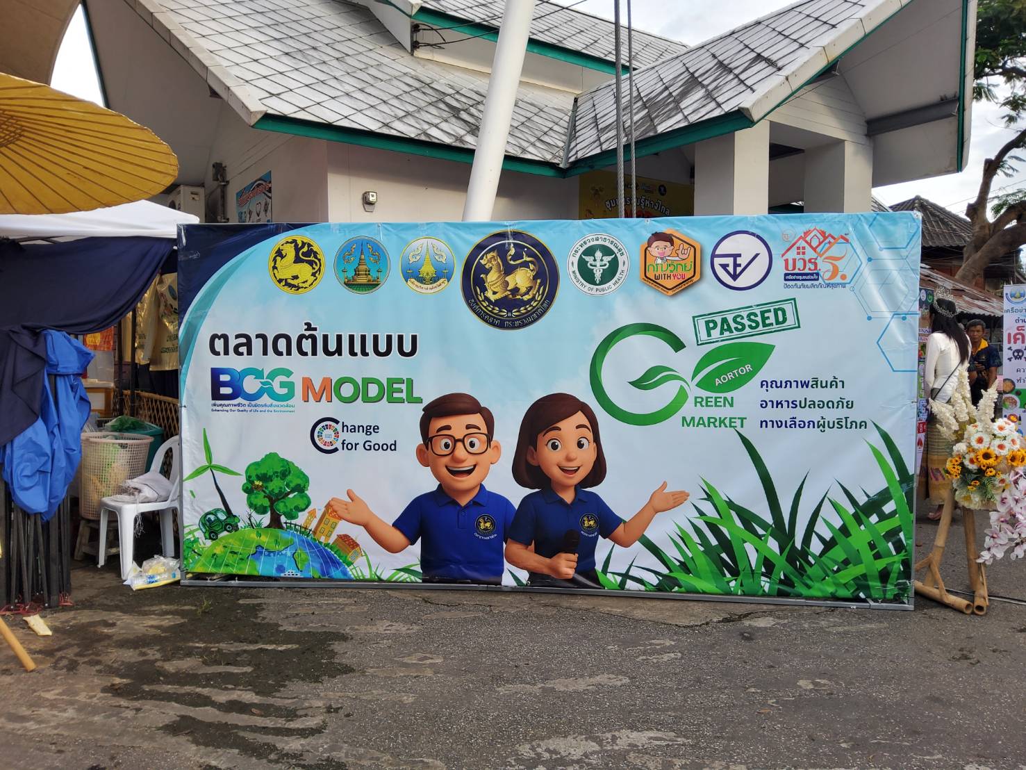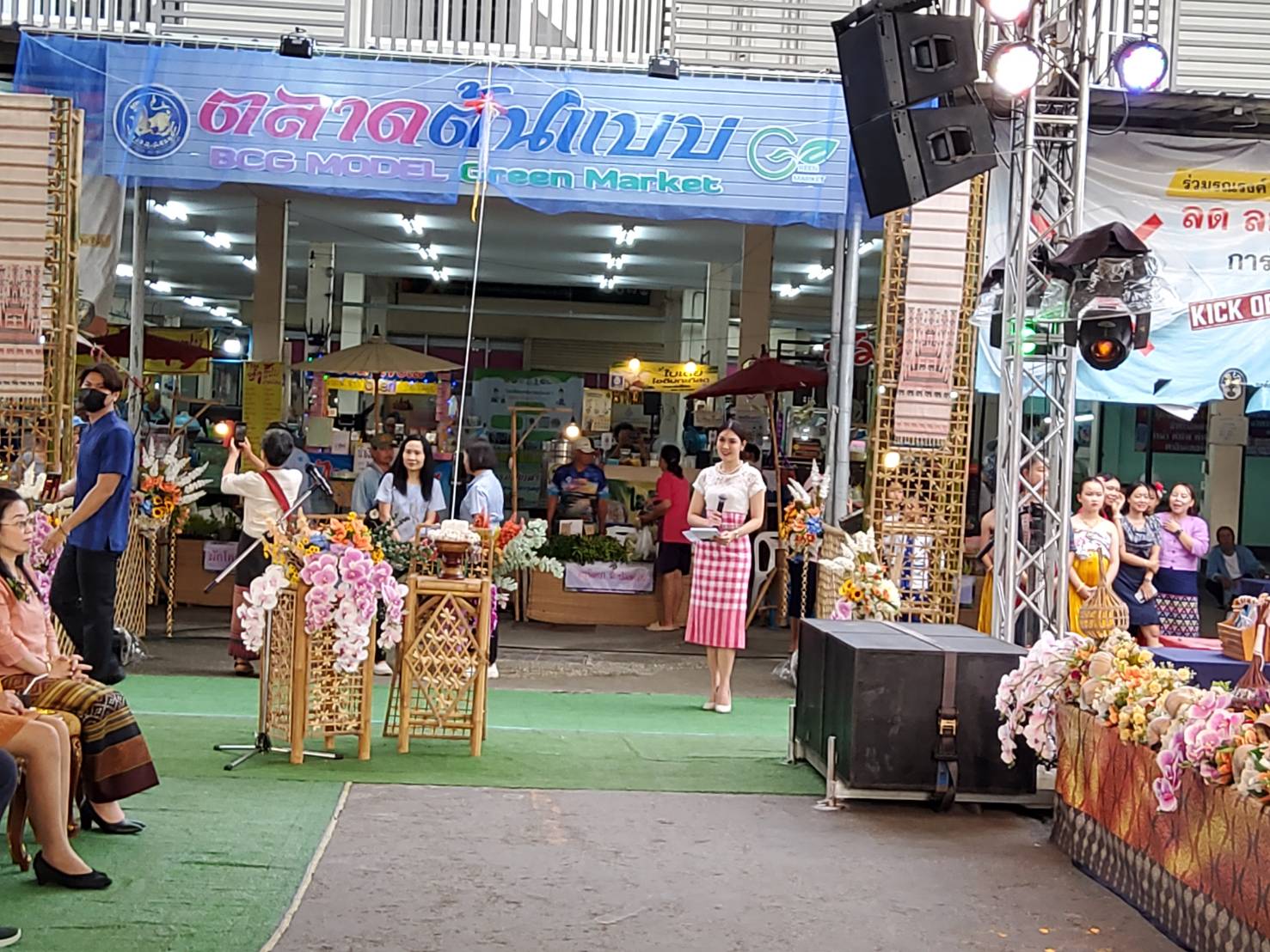 ผู้ทรงคุณวุฒิจาก สำนักงานเลขาธิการ สภาผู้แทนราษฎร เปิดงานโครงการ “ตลาดต้นแบบ เพิ่มคุณภาพชีวิตเศรษฐกิจชุมขน คนภาคเหนือ” พร้อมทั้งเปิดป้ายตลาดต้นแบบ BCG MODEL Green Market