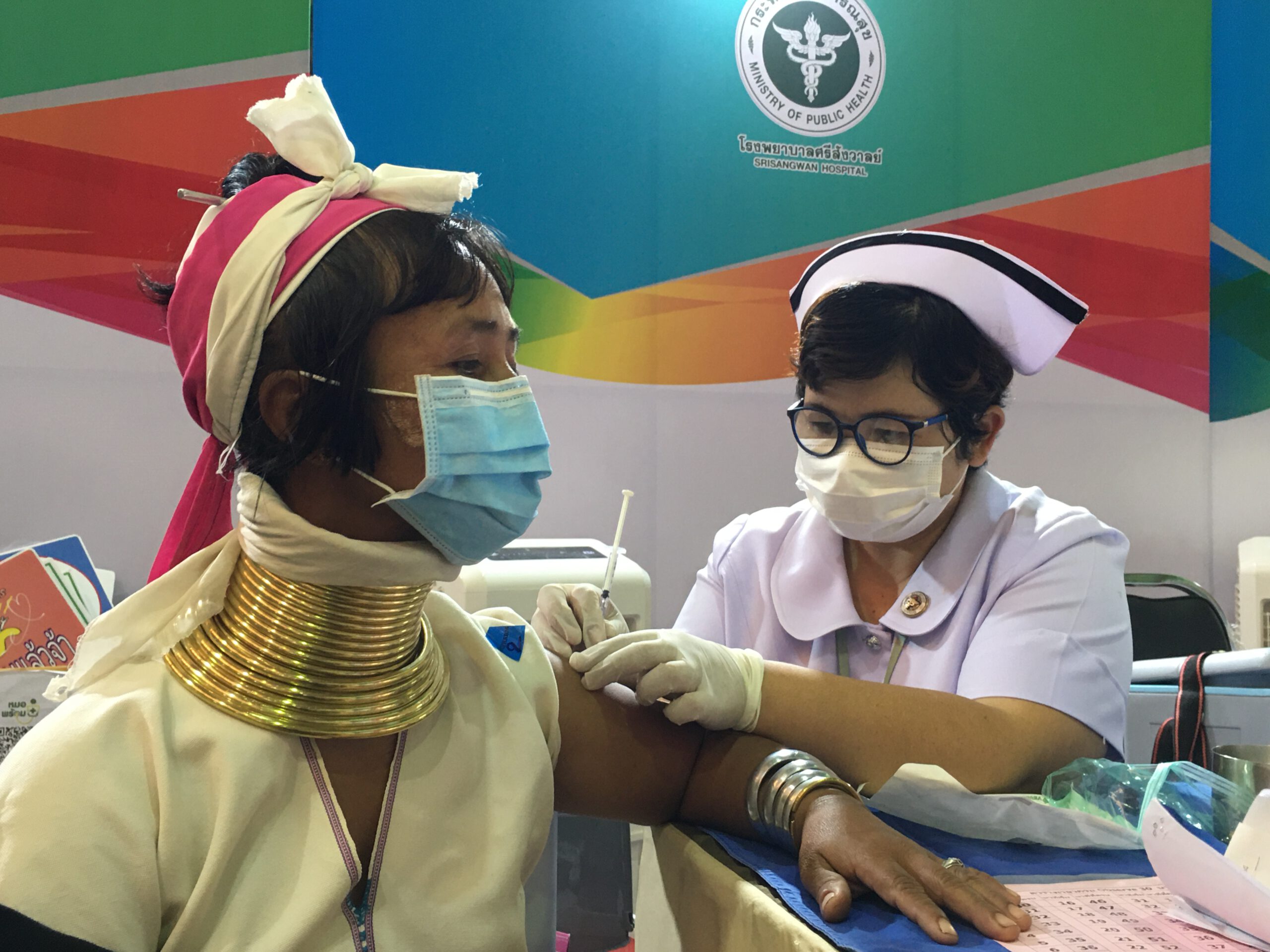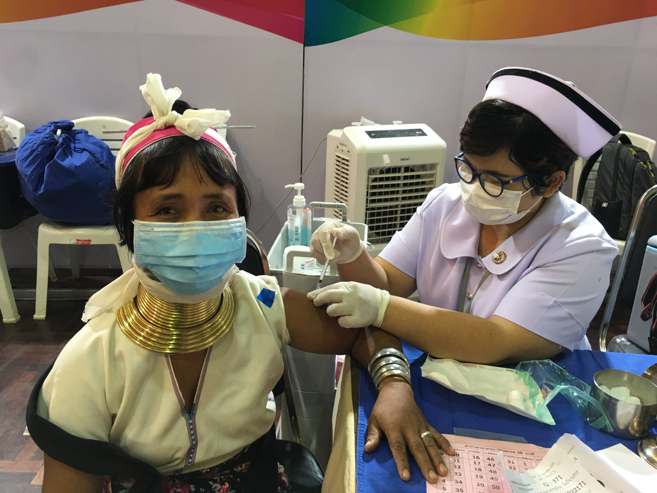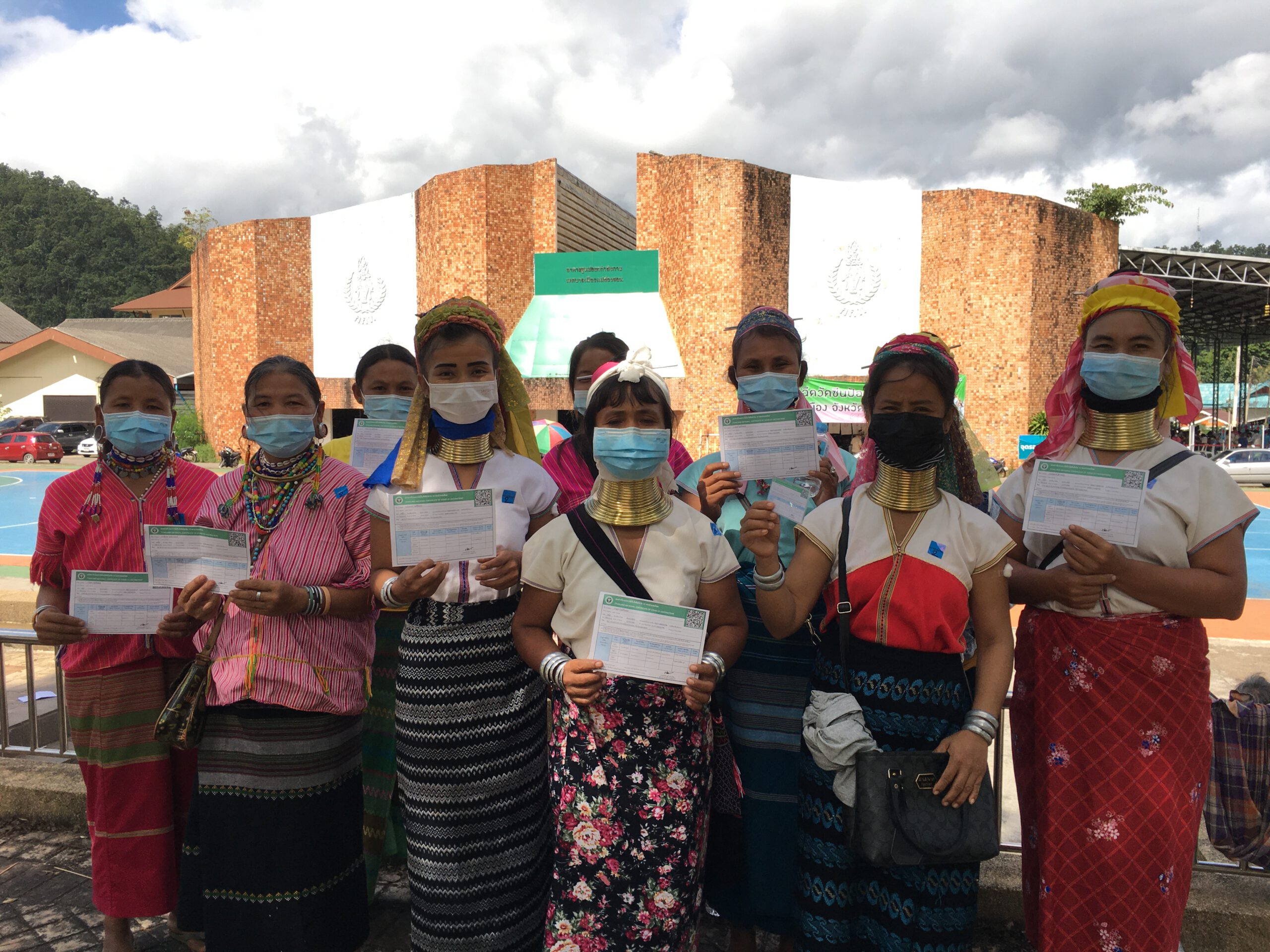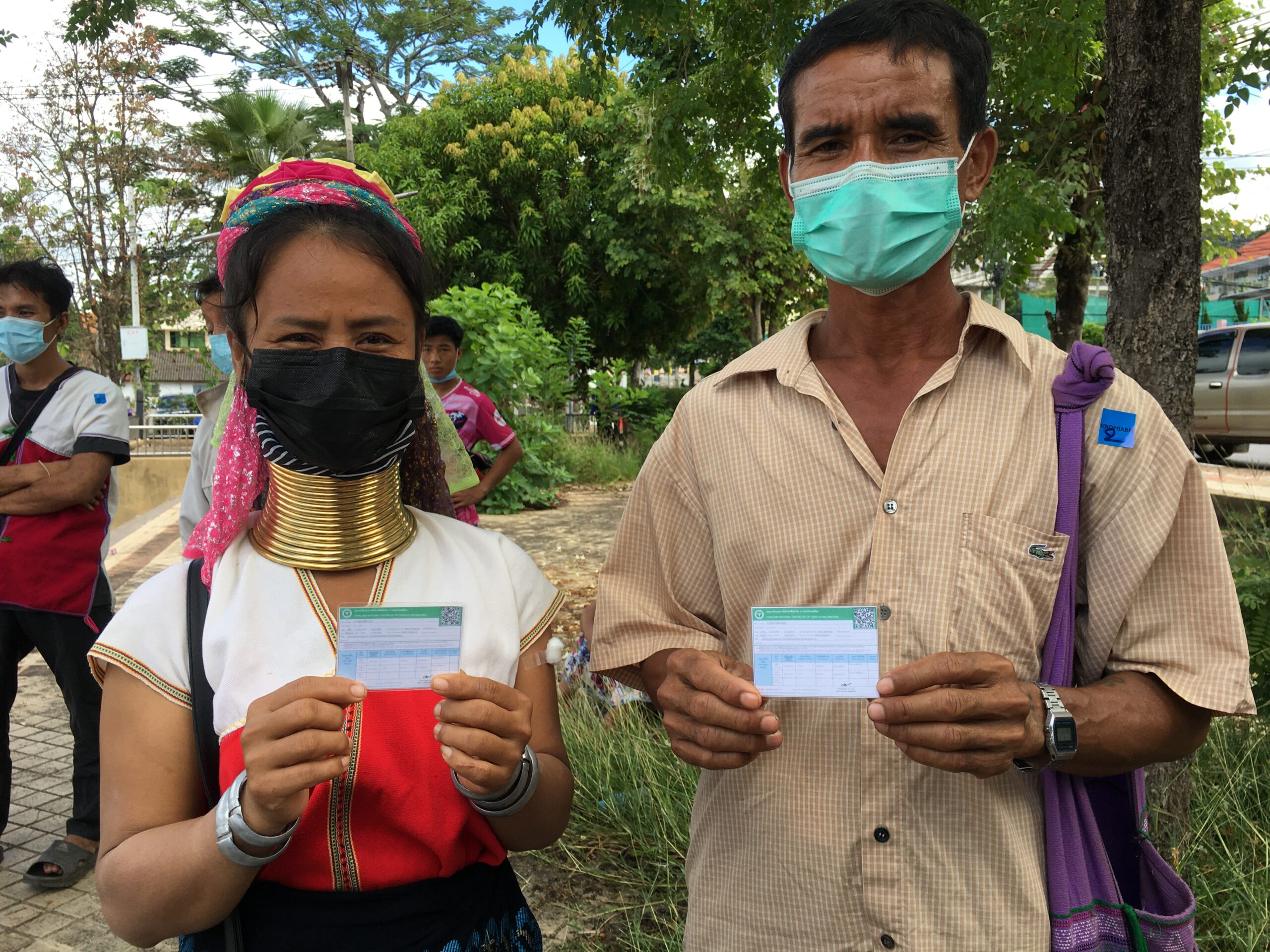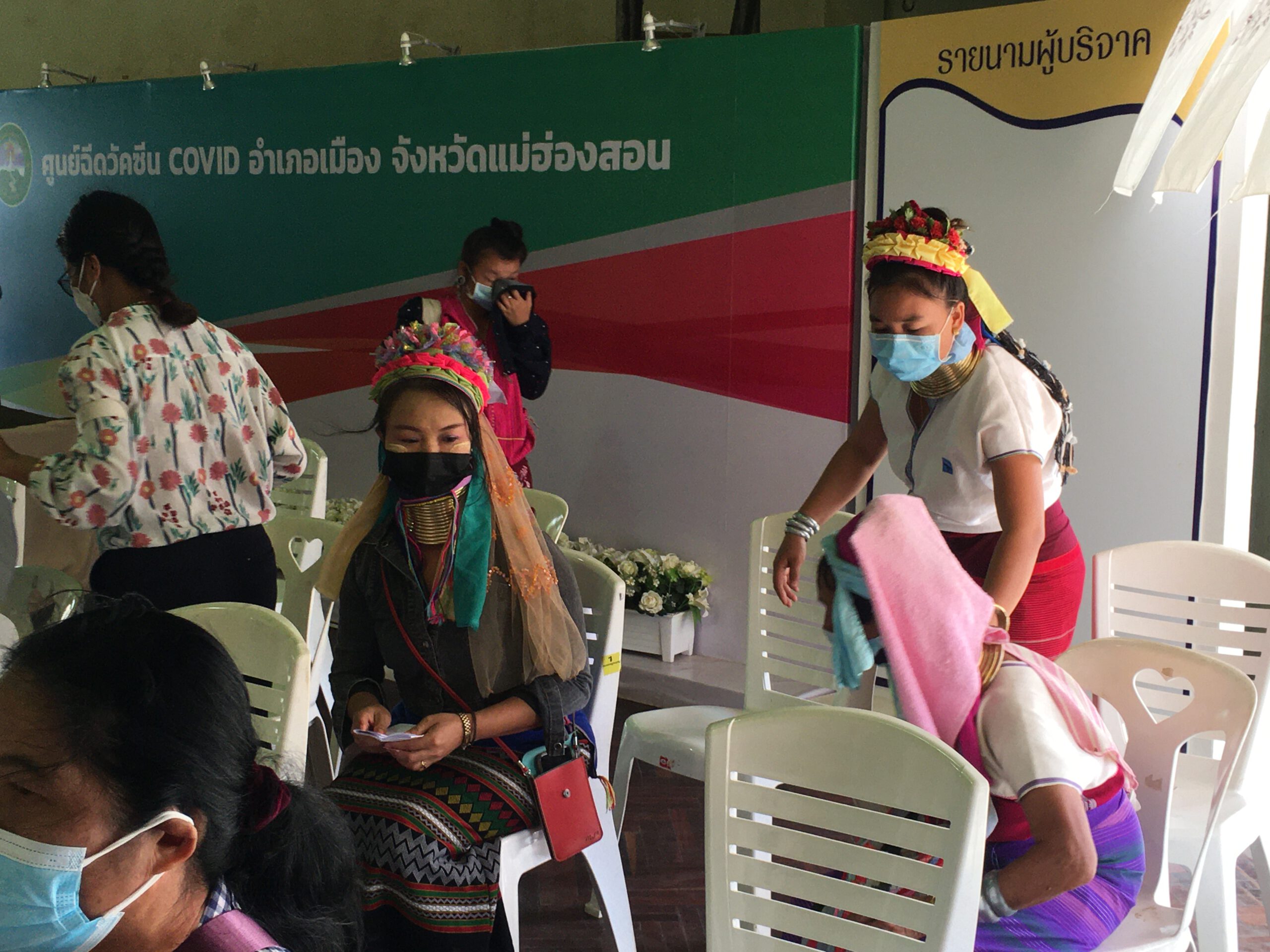 ซึ่งหลังจากที่ได้รับการฉีดวัคซีนจนครบ 2 เข็มแล้ว พวกเขาได้พากันมารวมตัวหน้าสถานที่ฉีดวัคซีนและพากันออกมาเชิญชวนให้ชนเผ่าอื่น ๆ พากันมาฉีดวัคซีนเหมือนพวกเขา โดยชูสโลแกนที่ว่า “ ฉีดแล้ว หายห่วง มาเที่ยวได้ “