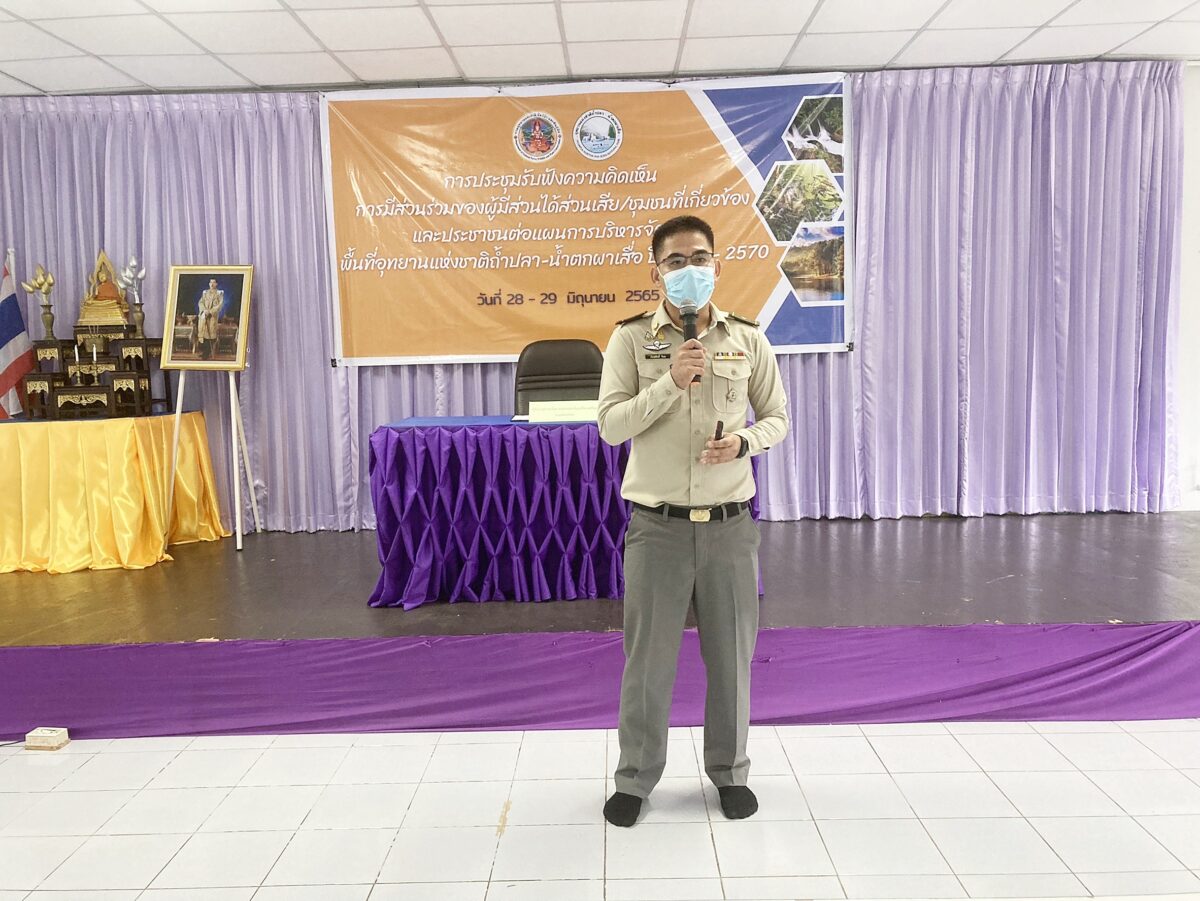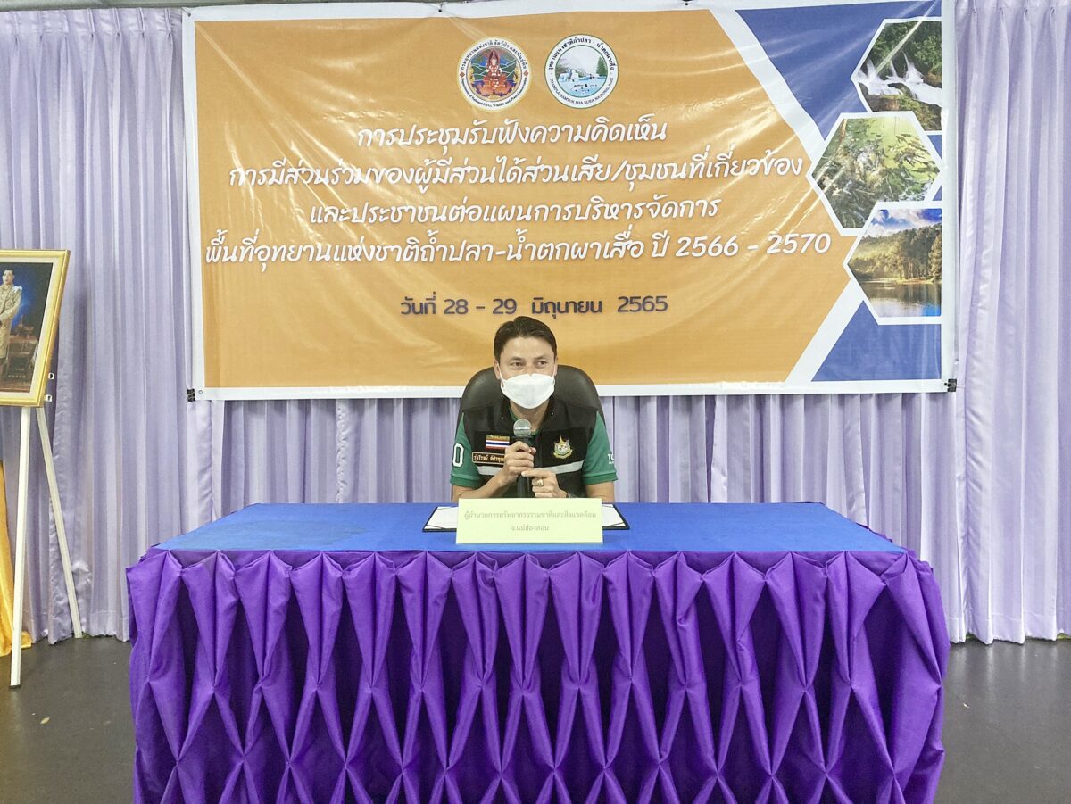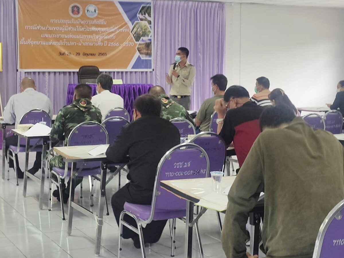 อุทยานแห่งชาติถ้ำปลา-น้ำตกผาเสื่อ ประชุมรับฟังความคิดเห็นการมีส่วนร่วมของผู้มีส่วนได้ส่วนเสีย ในชุมชนที่เกี่ยวข้องและประชาชน ต่อแผนการบริหารจัดการ พื้นที่อุทยานแห่งชาติถ้ำปลา-น้ำตกผาเสื่อ ปี 2566-2570