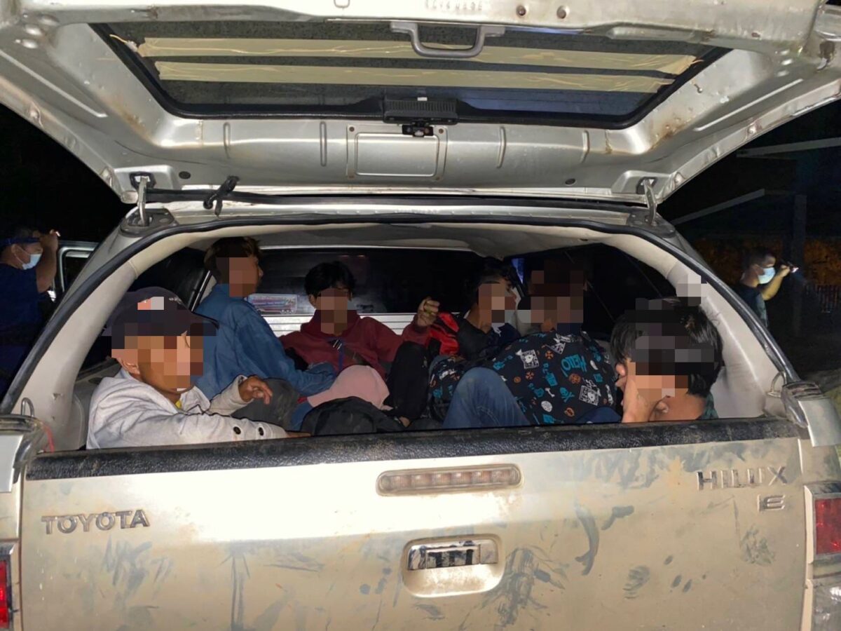 สำหรับบุคคลต่างด้าวลักลอบเข้าเมืองโดยไม่ได้รับอนุญาต จำนวน 11 ราย ได้แก่1.นายอออุ่ง ไม่มีชื่อสกุล อายุ 58 ปี สัญชาติเมียนมาร์ ผู้ถูกจับสามารถฟัง และเข้าใจคำในภาษาไทย โดยไม่ต้องอาศัยล่ามแปล , 2.นายกู่ ไม่มีชื่อสกุล อายุ 26 ปี สัญชาติเมียนมาร์ , 3.นายหลาว ไม่มีชื่อสกุล อายุ 18 ปีเศษ สัญชาติเมียนมาร์ , 4.นายก๋อน ไม่มีชื่อสกุล อายุ 18 ปีเศษ สัญชาติเมียนมาร์ , 5.นายจายแสง ไม่มีชื่อสกุล อายุ 20 ปี สัญชาติเมียนมาร์, 6.นายนาวิน ซฮยะ อายุ 18 ปีเศษ สัญชาติเมียนมาร์ , 7.นายปี ไม่มีชื่อสกุล อายุ 26 ปี สัญชาติเมียนมาร์ , 8.นายจ๋อม ไม่มีชื่อสกุล อายุ 18 ปีเศษ สัญชาติเมียนมาร์ , 9.นายโหง่ย ไม่มีชื่อสกุล อายุ 35 ปี สัญชาติเมียนมาร์ , 10.นางสาวเปาหอม ไม่มีชื่อสกุล อายุ 18 ปีเศษ สัญชาติเมียนมาร์ และ 11.นางสาวแสงเล็ก ไม่มีชื่อสกุล อายุ 18 ปีเศษ สัญชาติเมียน