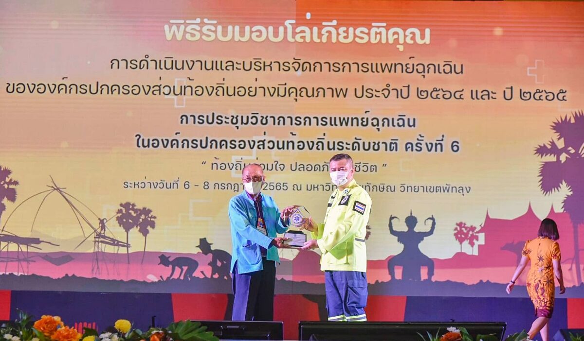 เมื่อวันที่ 12 กรกฎาคม 2565 ผู้สื่อข่าวรายงานจาก จ.แม่ฮ่องสอน ว่า อบต.ปางหมู นำโดย นายอุกฤษฎ์ แสงงาม นายก อบต.ปางหมู พร้อมด้วย นายเอกพงษ์ มั่นคง รองนายก อบต. และนายณรงค์ กิติเลิศ เลขานุการนายก อบต.นำเจ้าหน้าที่ เดินทางไปเข้าร่วมพิธีรับมอบโล่เกียรติคุณ การดำเนินงานและบริหารจัดการแพทย์ฉุกเฉินของ อปท.อย่างมีคุณภาพ ประจำปี 2565 ในการประชุมวิชาการแพทย์ฉุกเฉินใน อปท.ระดับชาติ ครั้งที่ 6 โดย ร.อ.นพ.อัจฉริยะ แพงมา เลขาธิการสถาบันการแพทย์ฉุกเฉินแห่งชาติ พร้อมคณะกรรมการ การแพทย์ฉุกเฉินแห่งชาติ และคณะผู้บริหารของ สพฉ.เข้าร่วมพิธีเปิดการประชุม มีนายนิพนธ์ บุญญามณี รมช.มหาดไทย เป็นประธานในพิธี โดยสถาบันการแพทย์ฉุกเฉินแห่งชาติ ร่วมกับ อบจ.พัทลุง และสมาคมอบจ.แห่งประเทศไทย ร่วมมือกันจัดงานดังกล่าวขึ้น เป็นปีที่ 6 ภายใต้หัวข้อ ” ท้องถิ่นร่วมใจ ปลอดภัยทุกชีวิต ” ระหว่างวันที่ 6-8 กรกฏาคม 2565 ณ หอประชุมเฉลิมพระเกียรติ มหาวิทยาลัยทักษิณ วิทยาเขตพัทลุง