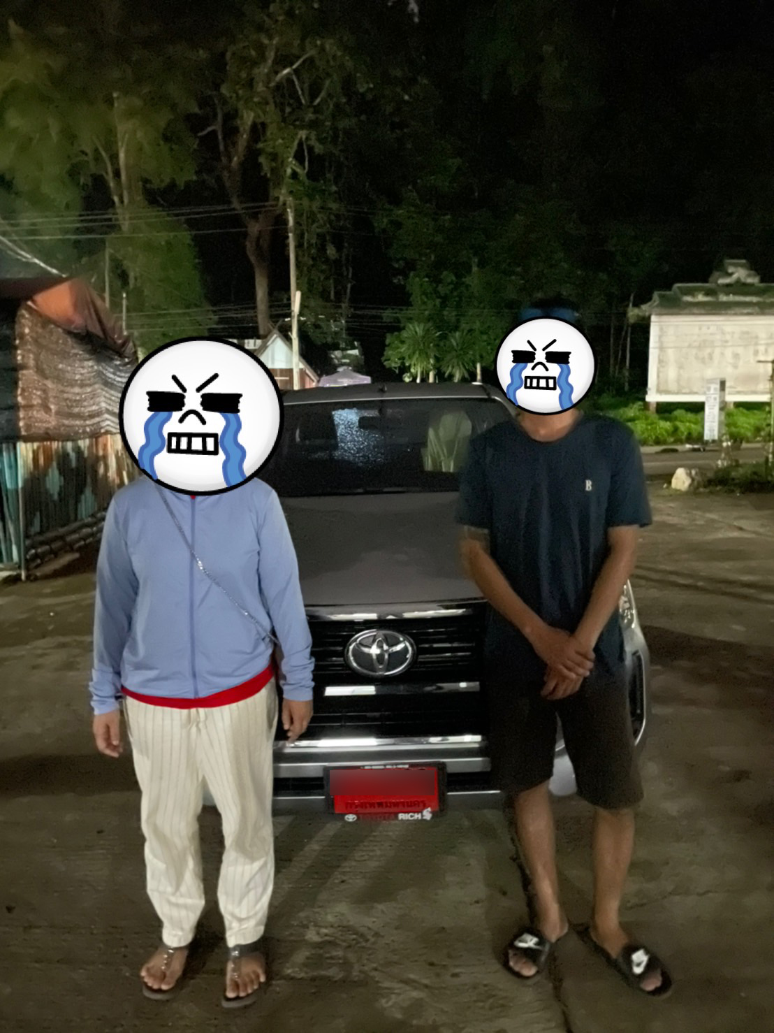 เมื่อถึงเวลา ประมาณ 00.10 น.ได้มีรถยนต์กระบะ ยี่ห้อโตโยต้า รุ่นรีโว่ 2 ประตู สีบรอนซ์ หมายเลขทะเบียน ฬ กรุงเทพมหานคร 5693 ซึ่งมีนายจายหม่อง ไม่มีชื่อสกุล (Sai mong) อายุ 32 ปี สัญชาติเมียนมา เชื้อชาติเมียนมา ถือหนังสือวีซ่าเลขที่ CC73xxxxx (เป็นผู้ขับขี่รถยนต์) และมีนางมินมินโซ ไม่มีชื่อสกุล (Min min soe) อายุ 33 ปี สัญชาติเมียนมา เชื้อชาติเมียนมา CC7xxxxxx (นั่งอยู่ข้างคนขับ) บริเวณที่นั่งหลังคนขับพบ นายจายเหลา ไม่มีชื่อสกุล อายุ 18 ปี สัญชาติเมียนมา เชื้อชาติไทใหญ่ นางแสงเลข ไม่มีชื่อสกุล อายุ 18 ปี สัญชาติเมียนมา เชื่อชาติไทใหญ่