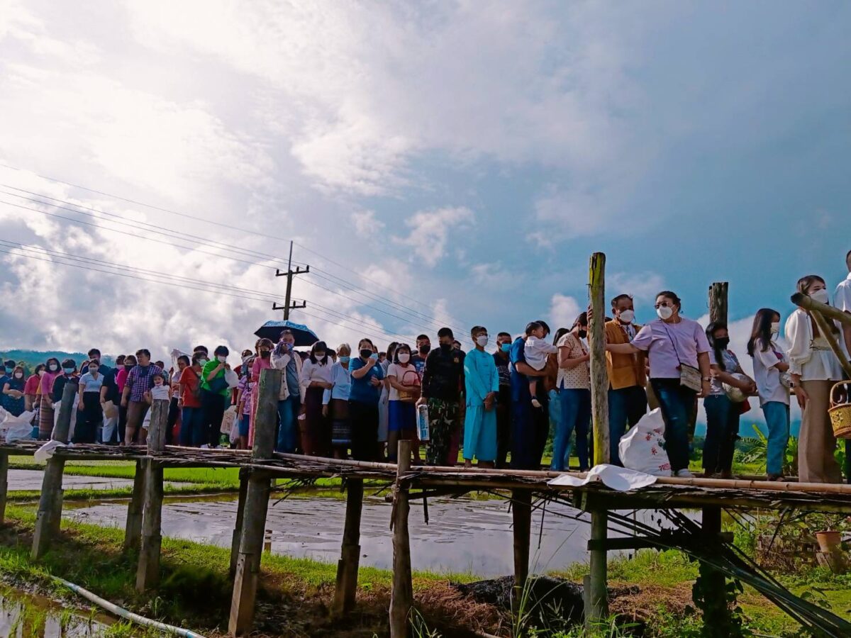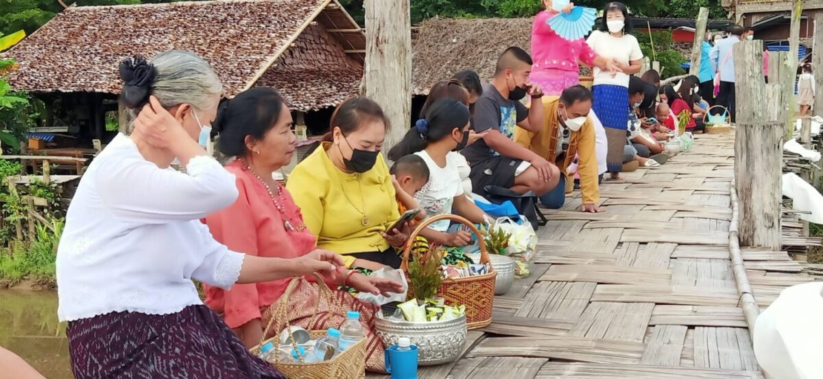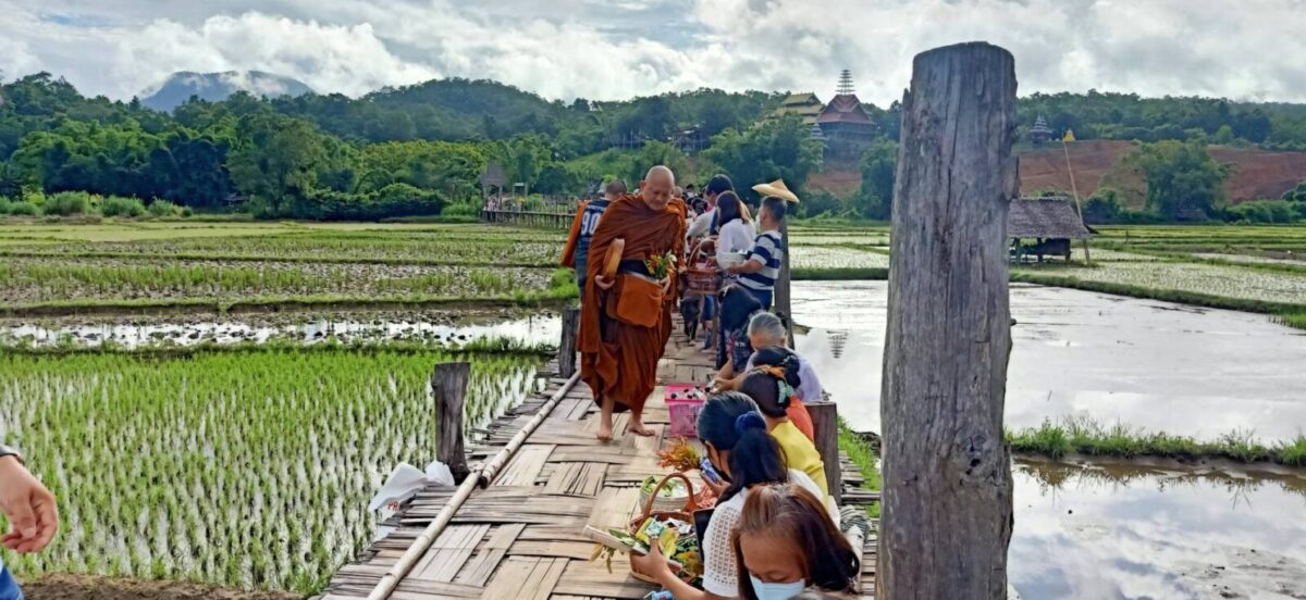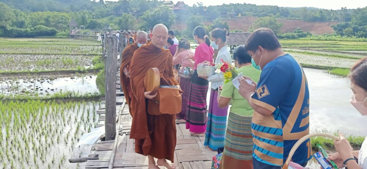 เมื่อวันที่ 14 กรกฎาคม 2565 เวลา 07.30 น. พระปลัดจิตพัฒน์ อัคคปัญโญ เจ้าอาวาสวัดภูสมะวณาราม บ้านกุงไม้สัก ต.ปางหมู อ.เมืองแม่ฮ่องสอน จัดให้มีพิธีทำบุญตักบาตรข้าวสารอาหารแห้ง เนื่องในวันเข้าพรรษา โดยจัดขึ้นบนสะพานซูตองเป้ หรือสะพานบุญอธิฐานแห่งความสำเร็จ ซึ่งเป็นแหล่งท่องเที่ยวยอดนิยมของ จ.แม่ฮ่องสอน โดยมีพุทธศาสนิกชนชาว ต.ปางหมู และหมู่บ้านในเขต อ.เมือง รวมถึงนักท่องเที่ยวจำนวนมาก แต่งกายทั้งชุดพื้นเมือง นำสิ่งของซึ่งส่วนใหญ่เป็นจำพวกอาหารสำเร็จรูป ร่วมทำบุญใส่บาตรพระภิกษุสงฆ์-สามเณรจำนวน 35 รูป ที่รับบินฑบาตร บนสะพานไม้ไผ่ตลอดแนวความยาวที่ทอดข้ามทุ่งนา จากวัดภูสมะวณารามไปยัง บ้านกุงไม้สัก ความยาวประมาณ 500 เมตร ท่ามกลางอากาศที่เย็นสบาย ปราศจากสายฝน ทั้งที่ก่อนหน้านี้ฝนตกติดต่อกันมากว่าสัปดาห์ จนทำให้เกิดน้ำท่วมขังทุ่งนาบริเวณสะพานซูตองเป้