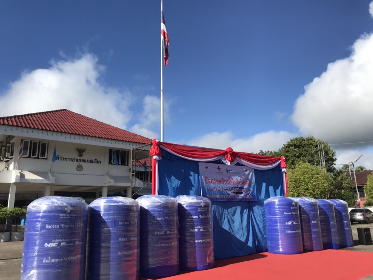 สำหรับวันนี้ ได้มอบให้โรงเรียน ในอำเภอแม่สะเรียง จำนวน 7 โรงเรียน และอีก 2 โรงเรียน ในอำเภอสบเมย โดยมี ผู้อำนวยการและตัวแทนจากโรงเรียนเดินทางเข้ามารับ ทั้งนี้ เหล่ากาชาดจังหวัดแม่ฮ่องสอน ได้รับจัดสรรถังน้ำอุปโภค-บริโภค จำนวน 16 ถัง ติดตั้งในพื้นที่ 7 อำเภอ พร้อมการทำฐานคอนกรีตเสริมเหล็กวางถังน้ำ เพื่อนำไปติดตั้งยังชุมชนหรือโรงเรียน ที่ขาดแคลนน้ำเพื่อการอุปโภค-บริโภค ให้ได้ใช้ประโยชน์ ส่งผลต่อการพัฒนาคุณภาพชีวิตของประชาชนต่อไป