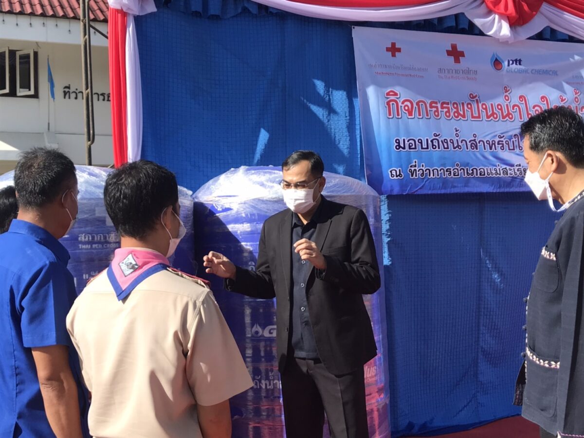 วันนี้ (3 ส.ค.65) นายเชษฐา โมสิกรัตน์ ผู้ว่าราชการจังหวัดแม่ฮ่องสอน พร้อมด้วย นางจิราภรณ์ โมสิกรัตน์ นายกเหล่ากาชาดจังหวัดแม่ฮ่องสอน มอบถังน้ำอุปโภค-บริโภค กิจกรรม “ปันน้ำใจ ให้น้ำดื่ม” แก่โรงเรียนที่ได้รับความเดือดร้อนขาดแคลนน้ำดื่ม ในพึ้นที่อำเภอแม่สะเรียง และอำเภอสบเมย เพื่อบรรเทาปัญหาการขาดแคลนน้ำ เพื่อการอุปโภค-บริโภค โดยมี นายสังคม คัดเชียงแสน นายอำเภอแม่สะเรียง นางวิลาวัลย์ คัดเชียงแสน นายกกิ่งกาชาด ร่วมมอบ ณ ที่ว่าการอำเภอแม่สะเรียง