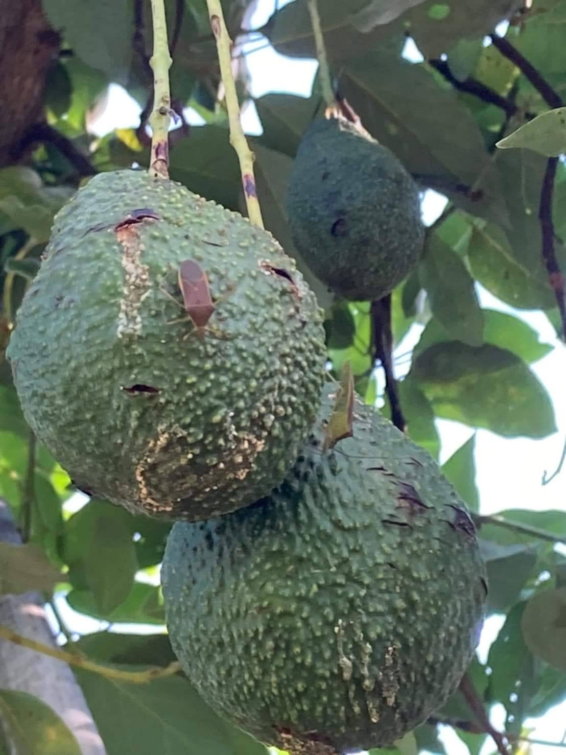 เมื่อวันที่ 7 สิงหาคม 2565 นางสาวณัฎฐ์พณิชา สุภานันท์ นักวิชาการส่งเสริมการเกษตรชำนาญการ รักษาราชการแทนเกษตรอำเภอขุนยวม จ.แม่ฮ่องสอน พร้อมด้วยเจ้าหน้าที่ ลงพื้นที่ตรวจสอบแปลงใหญ่อะโวคาโดบ้านต่อแพ ที่ประสบปัญหาผลของอโวคาโดเป็นแผล ซึ่งจากการเฝ้าสังเกตุแปลง พบว่าแผลที่เกิดขึ้นนั้นมักจะเกิดกับอะโวคาโดพันธุ์ที่มีลักษณะเปลือกบางได้แก่ พันธุ์ American Reed, Peterson และพันธุ์พื้นเมือง โดยผลจะถูกเข้าทำลายด้วย มวนลำไย หรือ แมงแคง (Iongan stink bug) ระยะการเข้าทำลายในช่วงผลเริ่มแก่