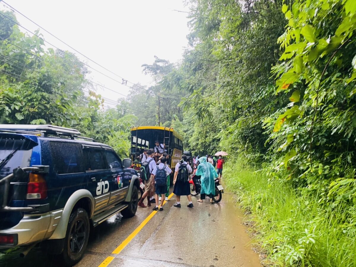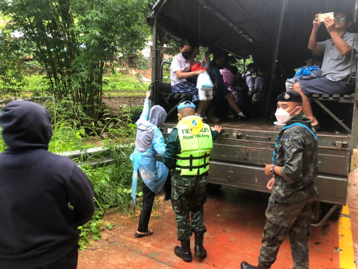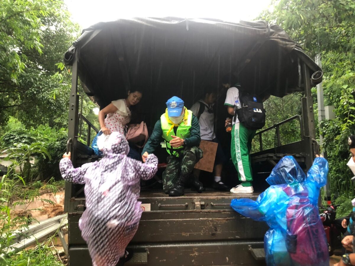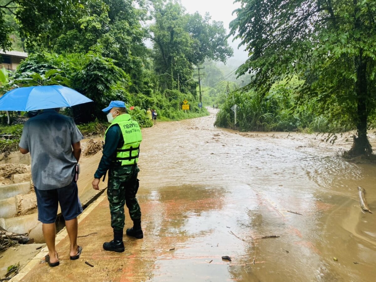 พายุใต้ฝุ่นมูหลานยังมาไม่ถึงเมืองสามหมอกแต่มีฝนตกหนักต่อเนื่องมาหลายวัน สุดท้ายน้ำท่วมทางเข้าหมู่บ้านห้วยเสือเฒ่า หมู่บ้านท่องเที่ยวกะเหรี่ยงคอยาวชื่อดัง เด็กนักเรียนกว่า 30 ชีวิตข้ามน้ำกลับบ้านไม่ได้ หน่วยทหารต้องจัดรถบรรทุกทหารขนกลับบ้านอย่างทุลักทุเล