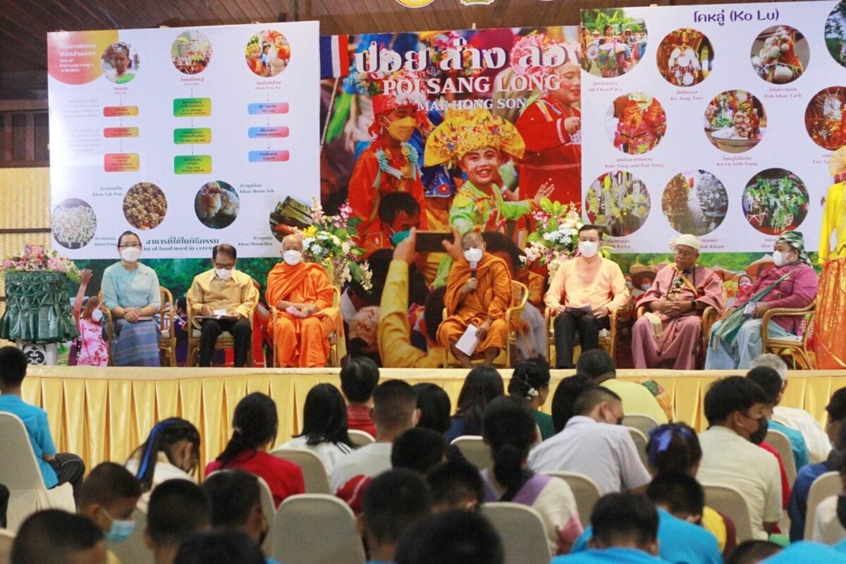 เมื่อวันที่ 18 สิงหาคม 2565 ณ ห้องประชุมสวมหมอกคำรีสอร์ต ตำบลปางหมู อำเภอเมืองแม่ฮ่องสอน จังหวัดแม่ฮ่องสอน สำนักงานวัฒนธรรมจังหวัดแม่ฮ่องสอน จัดกิจกรรมการเสวนาถ่ายทอดองค์ความรู้ และการแถลงข่าวเปิดตัวหนังสือองค์ความรู้งานเทศกาลประเพณี ปอยส่างลอง ภายใต้โครงการงานเทศกาลประเพณีปอยส่างลอง ประจำปีงบประมาณ พ.ศ. 2565 โดยมีนายสืบพงษ์ นิ่มพูลสวัสดิ์ รองผู้ว่าราชการจังหวัดแม่ฮ่องสอน เป็นประธานในพิธีเปิด นางสาวทัศนีย์ ดอนเนตร์ วัฒนธรรมจังหวัดแม่ฮ่องสอน กล่าวรายงาน หัวหน้าส่วนราชการ หน่วยงาน นักเรียน นักศึกษา ประชาชนผู้สนใจ เข้าร่วมกิจกรรมดังกล่าว โดยมีวิทยากรผู้ทรงคุณวุฒิ ร่วมการเสวนาประกอบด้วย