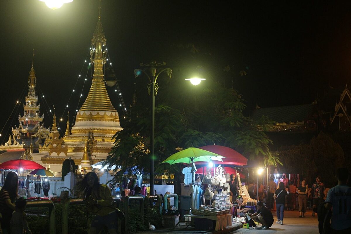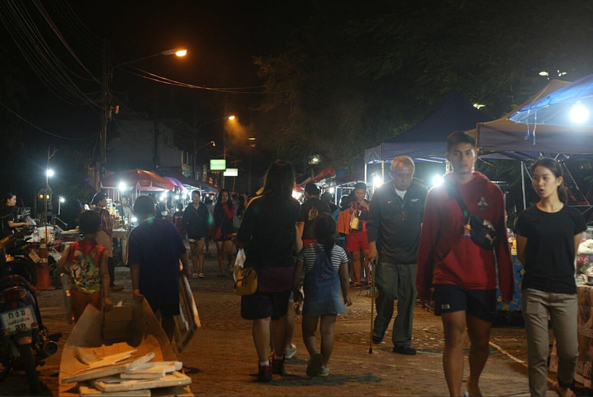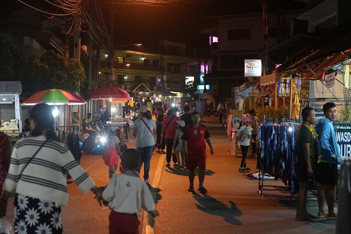 จุดเด่นของถนนคนเดินนี้ คือจะมีพี่น้องชาติพันธุ์ มาขายสินค้าพื้นบ้านของจังหวัดแม่ฮ่องสอนไม่ว่าจะเป็น อาหารและของที่ระลึกต่างๆ มีทั้งอาหารพื้นเมือง(อาหารไทยใหญ่) อาหารเหนือ อาหารไทย และของกินอื่นๆ ซึ่งราคาของอาหารที่นี่ ราคาไม่แพงมาก สามารถนั่งทานอาหาร พร้อมกับชมวิวของวัดจองกลาง-จองคำ ที่ประดับประดาด้วยไฟสวยงาม สะท้อนกับผิวน้ำในยามค่ำคืน บรรยากาศดีมาก
