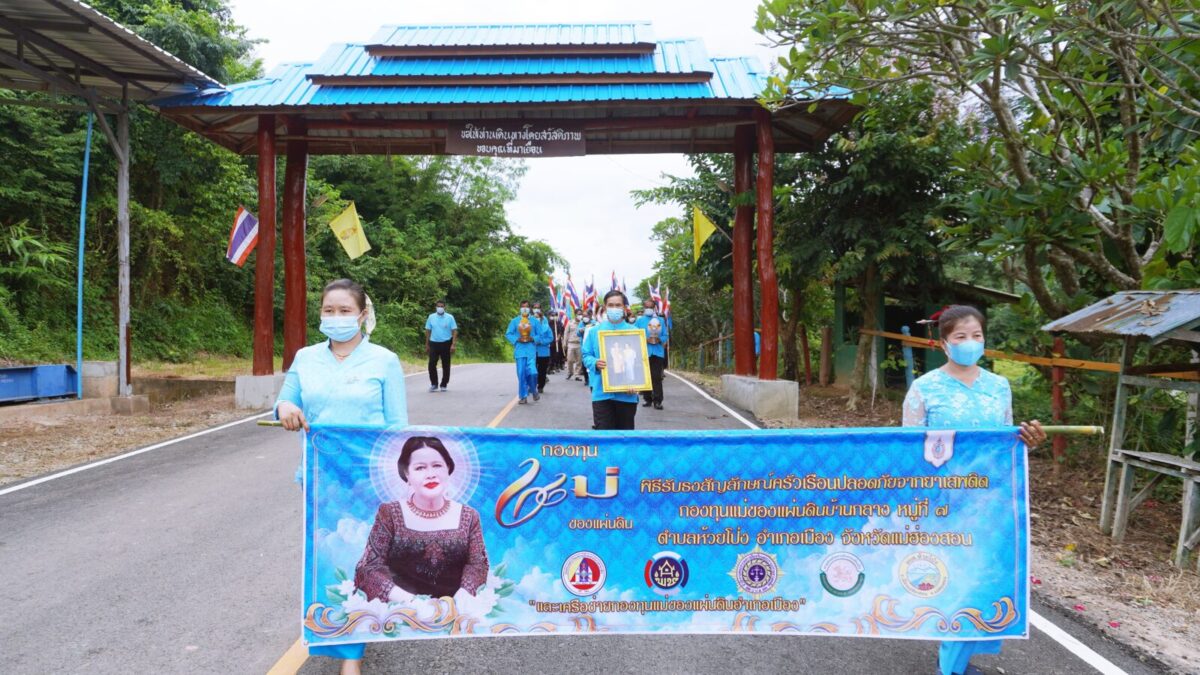 แก่หมู่บ้านต้นกล้ากองทุนแม่ของแผ่นดิน บ้านกลาง หมู่ที่ 7 ตำบลห้วยโป่ง อำเภอเมือง จังหวัดแม่ฮ่องสอน โดยมีนางแสงเทียน ภาพเพริดพริ้ง กำนันตำบลห้วยโป่ง นายอาวุธ ขยันดี นายกองค์การบริหารส่วนตำบลห้วยโป่ง นำหัวหน้าส่วนราชการในพื้นที่ ผู้บริหารองค์กรปกครองส่วนท้องถิ่น กำนัน ผู้ใหญ่บ้าน และประชาชนเข้าร่วมพิธี