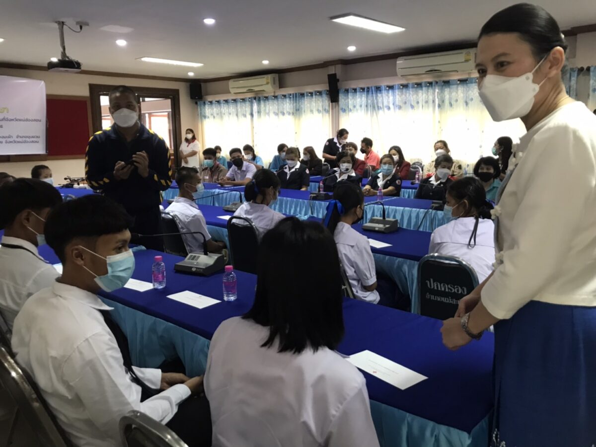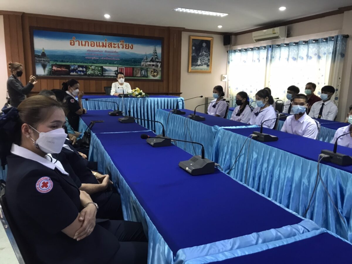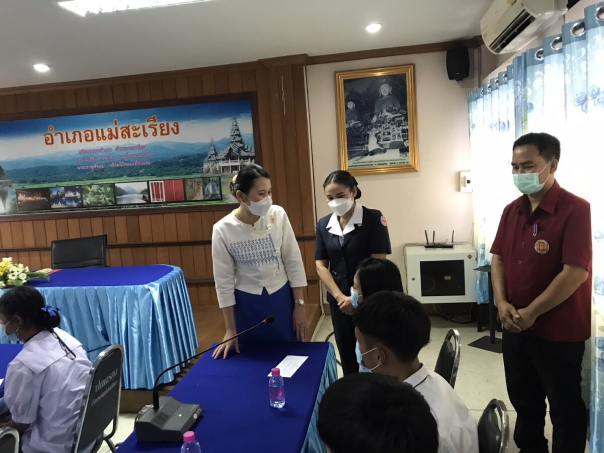 บ่ายวันที่ 31 สิงหาคม 2565 นางจิราภรณ์ โมสิกรัตน์ นายกเหล่ากาชาด จ.แม่ฮ่องสอน /ประธานแม่บ้านมหาดไทย จ.แม่ฮ่องสอน ได้เดินทางเป็นประธานการตรวจเยี่ยมเยาวชน ผู้รับทุนมูลนิธิร่วมจิตต์น้อมเกล้าฯ เพื่อเยาวชน ในพระบรมราชินูปถัมภ์ ปีการศึกษา 2565 โดยมี นางวิลาวัณย์ คัดเชียงแสน นายกกิ่งกาชาด อ.แม่สะเรียง พร้อมด้วยคณะกรรมการ และสมาชิกกิ่งกาชาดฯ คณะครู นักเรียน เข้าร่วมพิธีมอบทุนการศึกษาให้กับนักเรียน ณ ห้องประชุม อ.แม่สะเรียง จ.แม่ฮ่องสอน