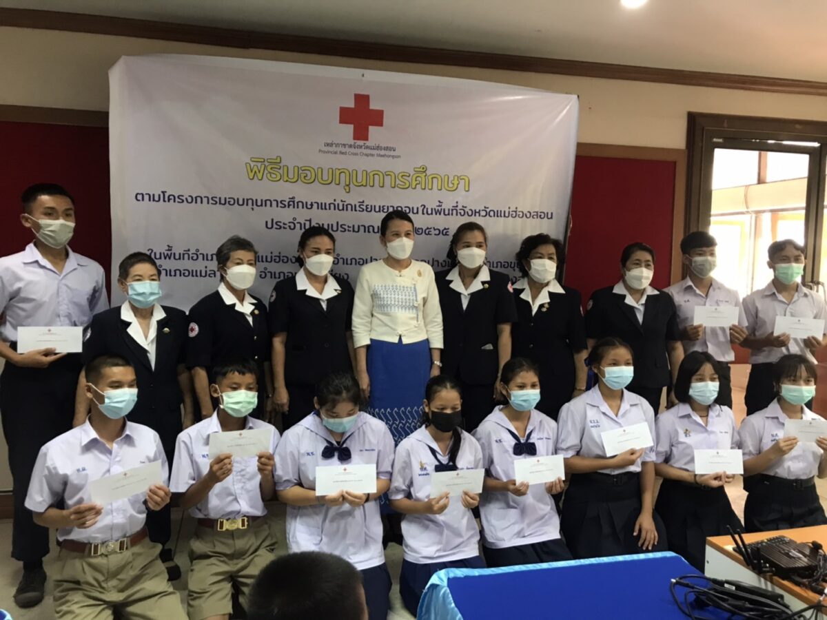 ซึ่งทุนทั้งหมดมีจำนวน 19 ทุน ประกอบด้วย ระดับประถมศึกษา จำนวน 4 ทุน ระดับมัธยมศึกษา จำนวน 11 ทุน ระดับอุดมศึกษา จำนวน 4 ทุน และมอบทุนการศึกษาสมทบให้กับเยาวชน ผู้รับทุนมูลนิธิร่วมจิตต์น้อมเกล้า ฯ เพื่อเยาวชน ในพระบรมราชินูปถัมภ์ จำนวน 2 ทุน ได้แก่ นายพิสิษฐ์ คีรีเขตสงบ ชั้น ม.6 โรงเรียนแม่สะเรียง “บริพัตรศึกษา” และ ด.ช.ภูมิรพี กูลนานวน ชั้น ม.2 โรงเรียนบ้านห้วยทราย นอกจากนี้ เหล่ากาชาด จ.แม่ฮ่องสอน ยังได้มอบชุดลูกเสือ ชุดเนตรนารี ให้แก่นักเรียนที่ขัดสน จากโรงเรียนเฉลิมรัชวิทยา อ.สบเมย จำนวน 3 ราย ได้แก่ ด.ช.วีรากร ถิ่นฤทัยวัลย์ ลูกเสือสามัญรุ่นใหญ่ ชั้น ม.1, ด.ช.วรชิต มิตรสาธิต ลูกเสือสามัญรุ่นใหญ่ ชั้น ม.1 และ ด.ญ.สุภัสรา นวลแก้ว เนตรนารีสามัญรุ่นใหญ่ ชั้น ม.1* สำหรับการมอบทุนการศึกษาเพื่อเยาวชนครั้งนี้ มีวัตถุประสงค์ เพื่อช่วยเด็กและเยาวชนประพฤติดี ยากไร้และขาดทุนทรัพย์จากโรงเรียนต่างๆ ในพื้นที่แต่ละอำเภอของ จ.แม่ฮ่องสอน พร้อมพบปะพูดคุยให้กำลังใจแก่นักเรียน และขอให้ตั้งใจศึกษาเล่าเรียน เพื่อจะได้เติบโตเป็นผู้ใหญ่ที่ดี เป็นกำลังสำคัญในการพัฒนาประเทศชาติต่อไป