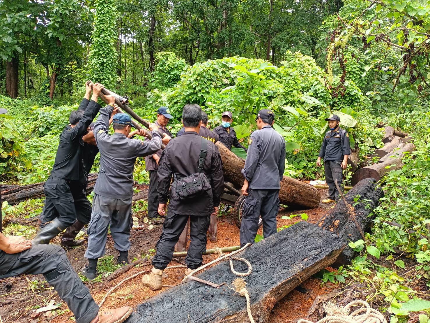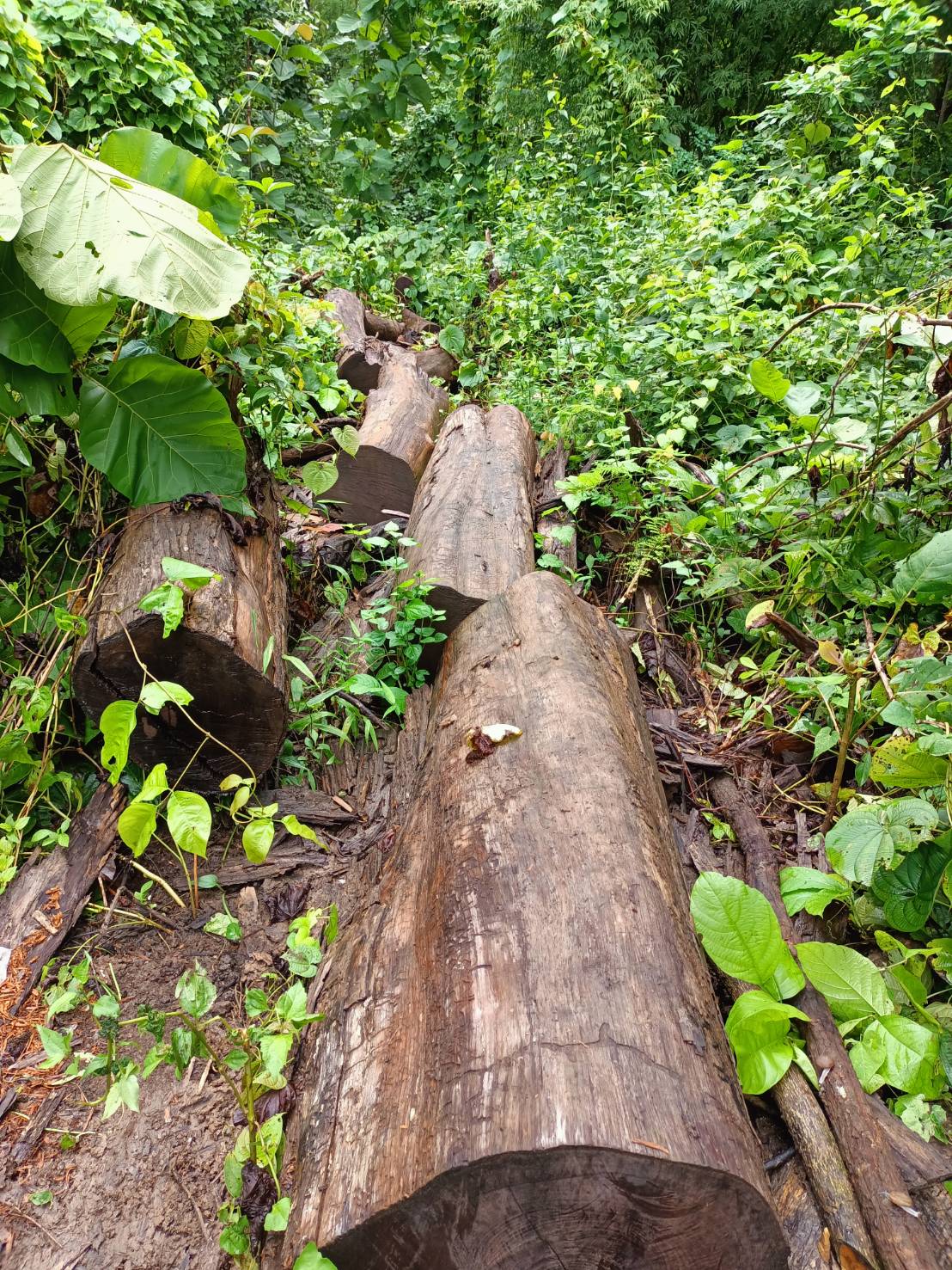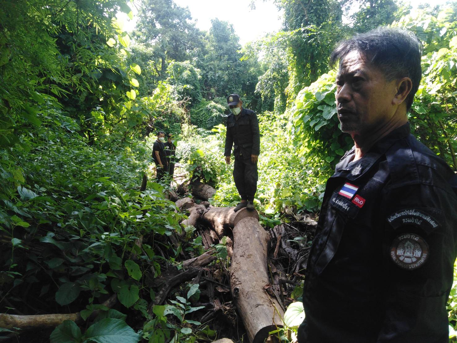 จนท.ป่าไม้ลาดตระเวน ตรวจพบไม้สักทอง ถูกลักลอบโค่นตัดท่อน จำนวน 12 ท่อน บริเวณป่าสงวนแห่งชาติป่าแม่ยวมฝั่งข้าย