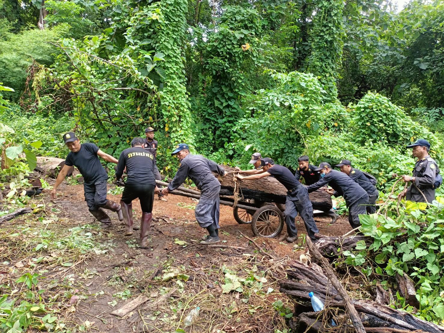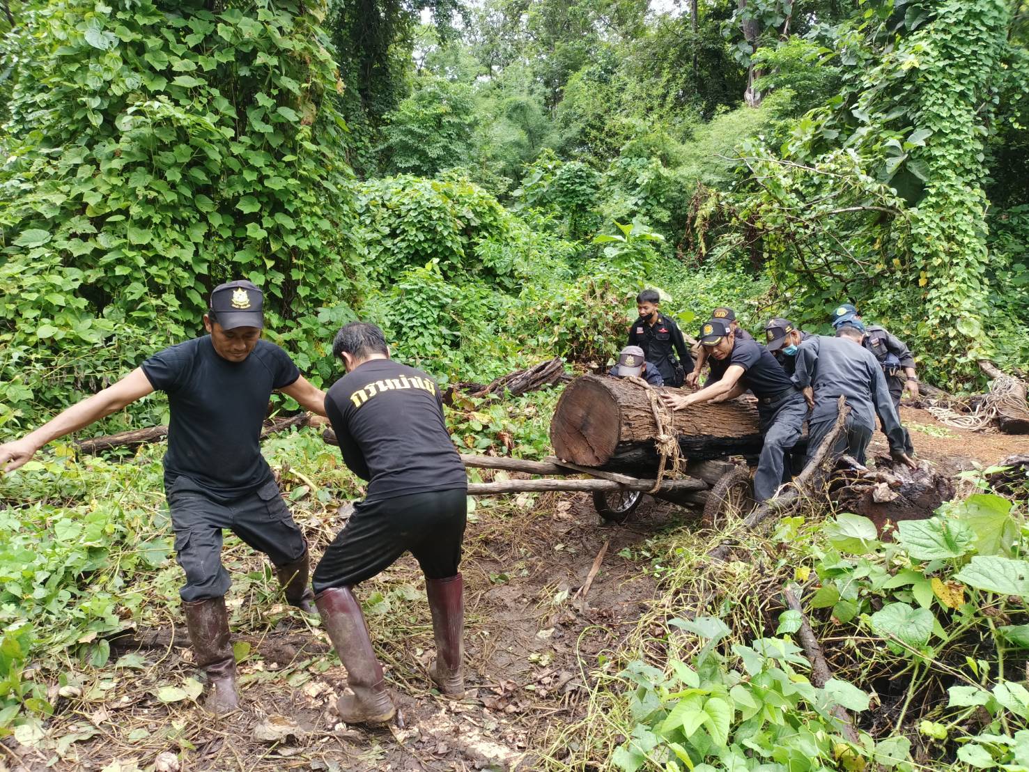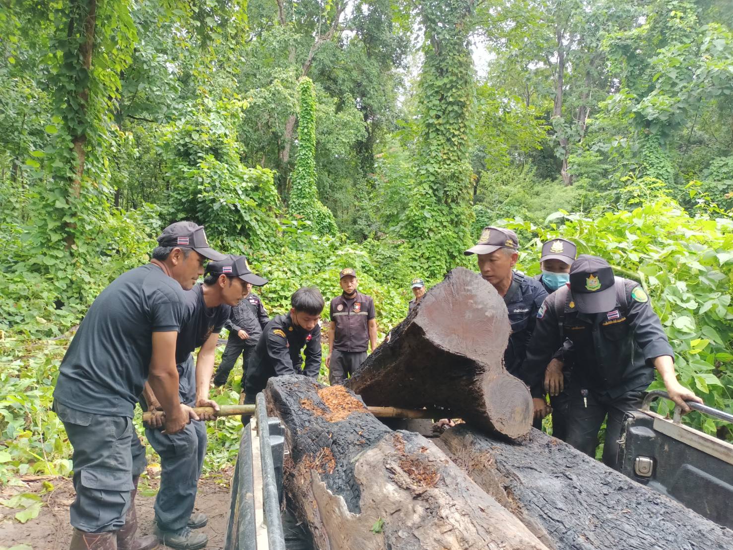 จนท.ป่าไม้ลาดตระเวน ตรวจพบไม้สักทอง ถูกลักลอบโค่นตัดท่อน จำนวน 12 ท่อน บริเวณป่าสงวนแห่งชาติป่าแม่ยวมฝั่งข้าย