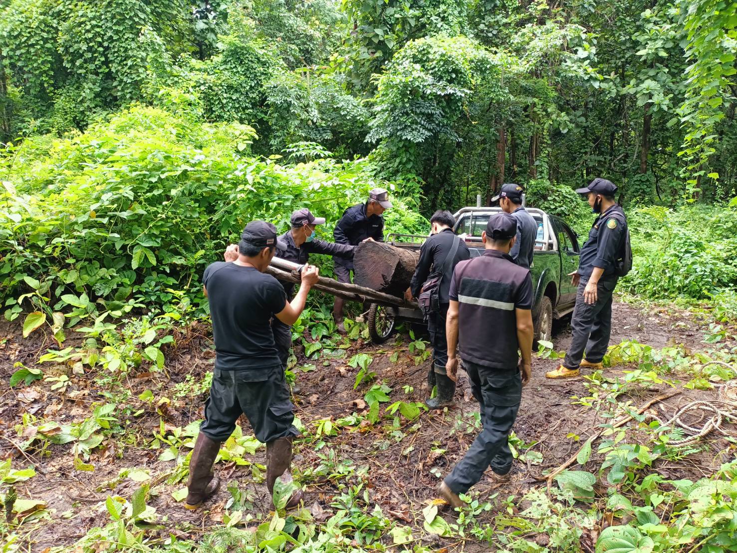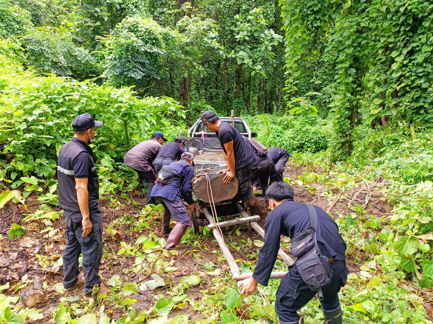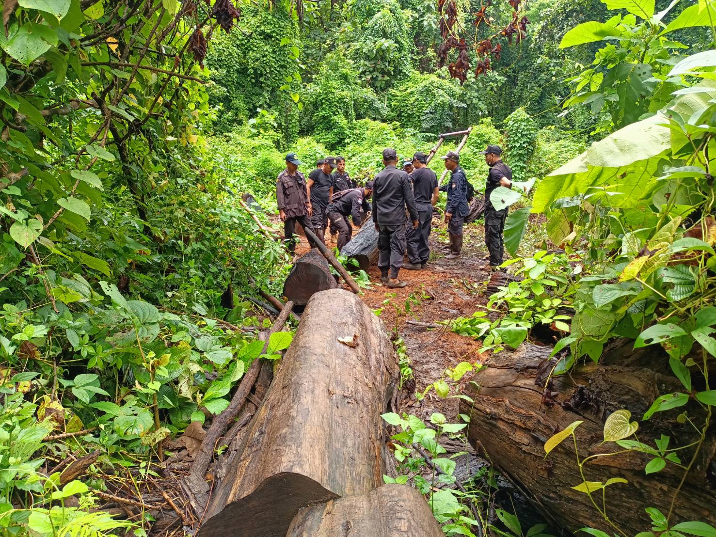 ที่เกิดเหตุตรวจพบการลักลอบตัดโค่นไม้สัก จำนวน 1 ต้น บริเวณป่าสงวนแห่งชาติป่าแม่ยวมฝั่งซ้าย ป่าข้างทางขึ้นวัดถ้ำพระโบราณ บ้านท่าข้าม หมู่ที่ 6 ต.บ้านกาศ อ.แม่สะเรียง จ.แม่ฮ่องสอน พิกัด 47Q388289 UTM2015012 ตรวจยึดไม้สักท่อนได้ จำนวน 12 ท่อน ปริมาตร 4.75 ลบ.ม ทั้งนี้ ทางหน่วยฯได้ดำเนินการขนย้ายไม้สักท่อนของกลางอย่างทุลักทุเล เพื่อนำมาเก็บรักษาไว้ตามระเบียบ ณ หน่วยป้องกันและพัฒนาป่าไม้แม่สะเรียง หน่วยป้องกันและรักษาป่าที่ มส.5 (อ.แม่สะเรียง) และทางหน่วยฯ อยู่ระหว่างรวบรวมพยานหลักฐานที่เกี่ยวข้องเพื่อนำส่งพนักงานสอบสวน สภ.แม่สะเรียง ดำเนินการตามกฎหมายต่อไป