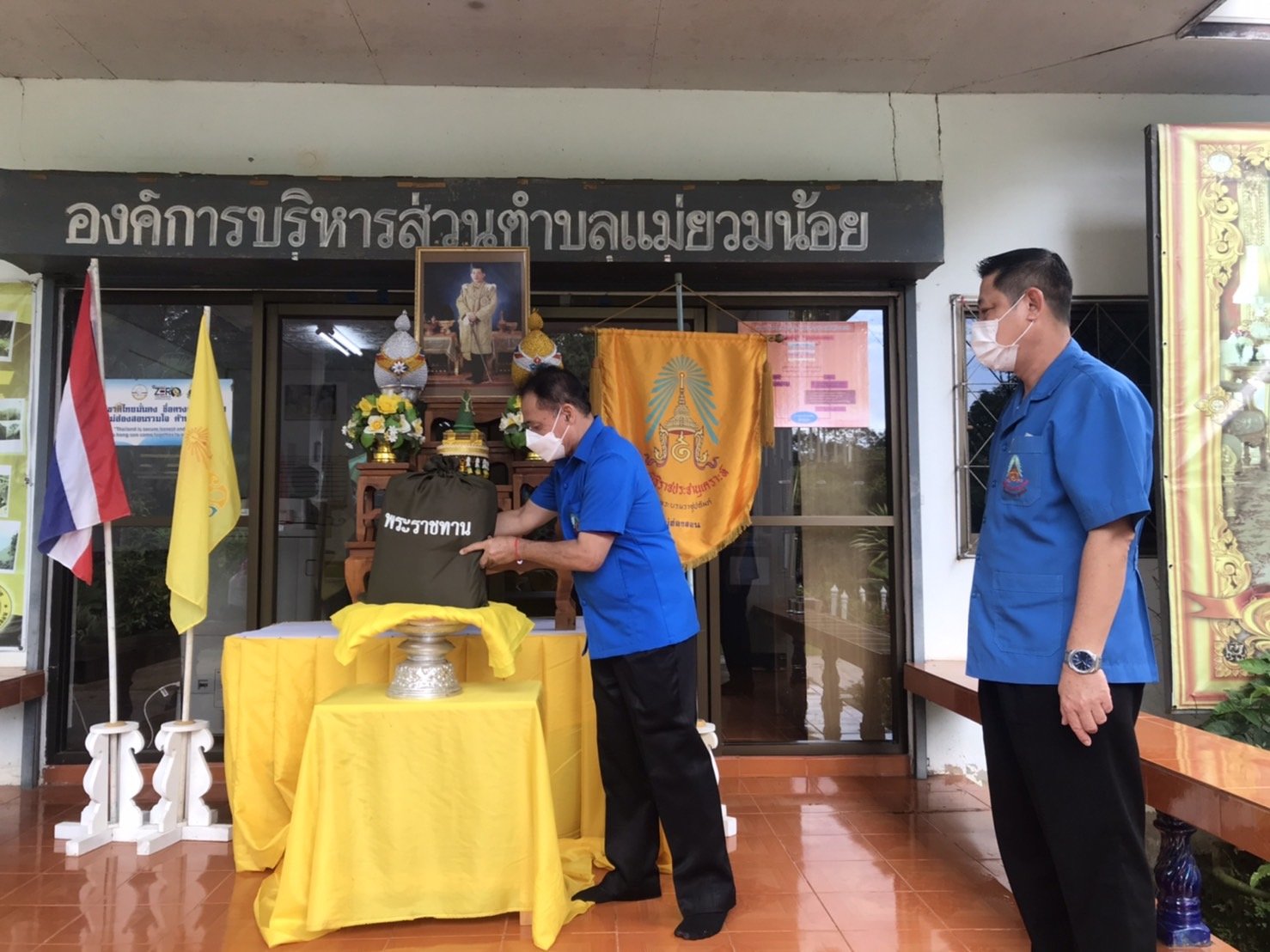 โดยมี นายวารินทร์ เจริญทรัพย์ ผู้ช่วยหัวหน้าสำนักงานป้องกันและบรรเทาสาธารณภัยจังหวัดแม่ฮ่องสอน นายอรรณพ ประหยัดทรัพย์ นักพัฒนาสังคม ผู้แทนพัฒนาสังคมและความมั่นคงของมนุษย์จังหวัดแม่ฮ่องสอน นายประสงค์ เก็ดสราพร ปลัดอำเภอฝ่ายความมั่นคง กำนันตำบลแม่ยวมน้อย และเจ้าหน้าที่องค์การบริหารส่วนตำบลแม่ยวมน้อย ร่วมพิธีมอบสิ่งของพระราชทานดังกล่าว