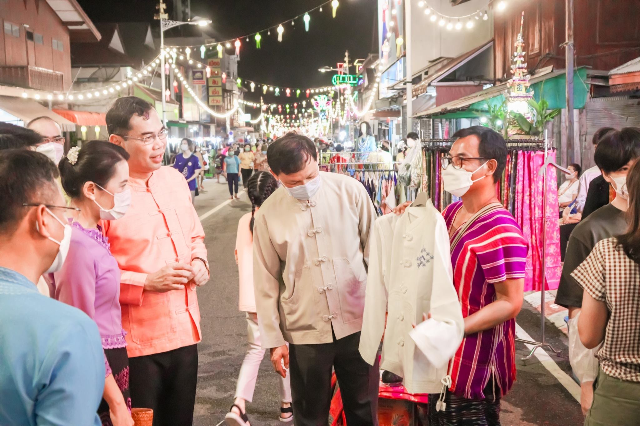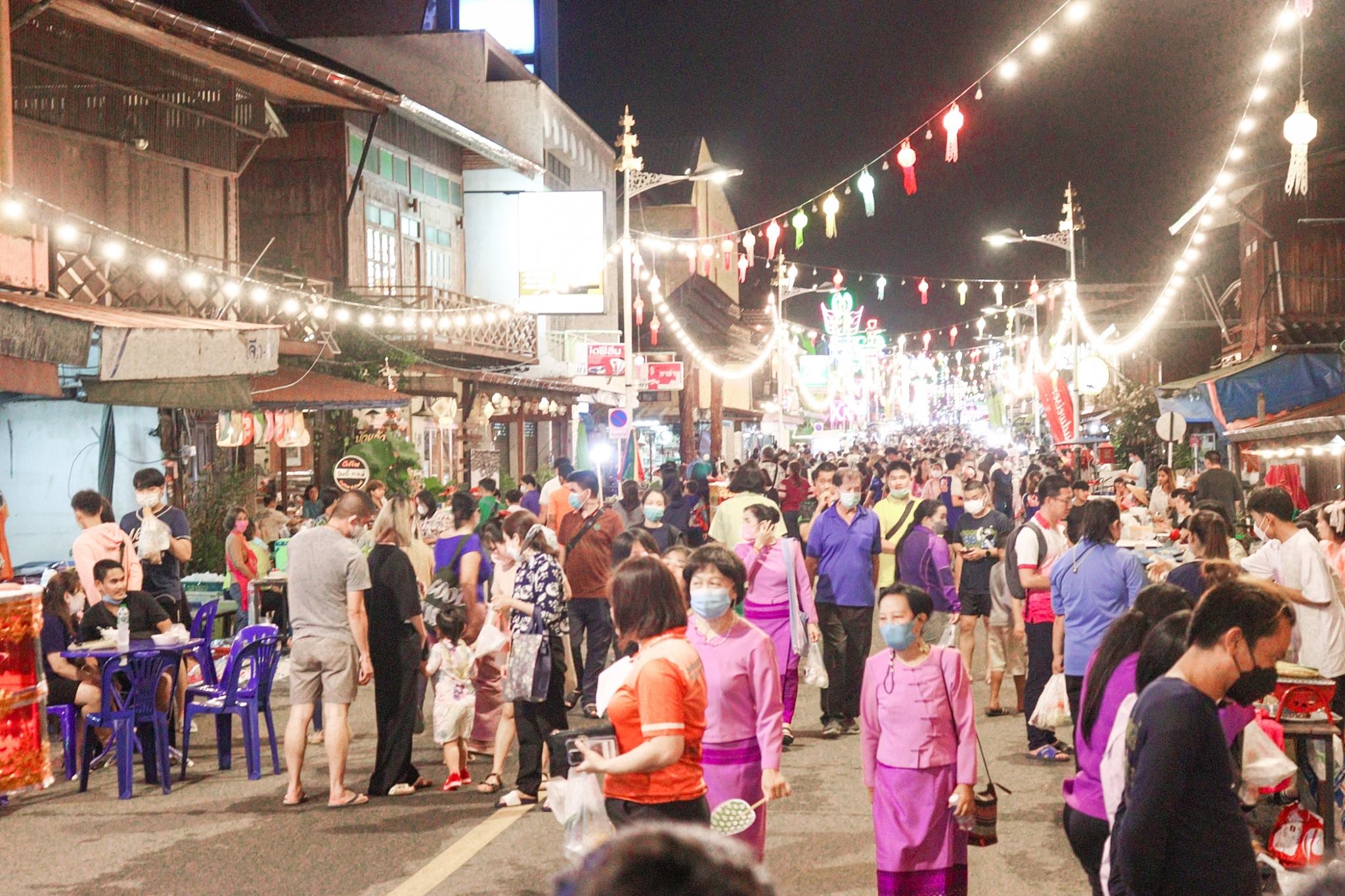 จากนั้น นายปกรณ์ จีนาคำ นายกเทศมนตรีเมืองแม่ฮ่องสอน ได้นำผู้ว่าราชการจังหวัดแม่ฮ่องสอน เดินเยี่ยมชมกาดพีด หรือตลาดแสงเทียนย้อนยุค มีพ่อค้าแม่ค้า มาจำหน่ายอาหารท้องถิ่น และของฝากของที่ระลึก มีการแสดงพื้นบ้านให้ได้รับชม สร้างความคึกคักให้กับถนนสิงหนาทบำรุง หลังจากห่างหายจากการจัดงานปอยเหลิน 11 ไปเกือบ 3 ปี เนื่องจากสถานการณ์การแพร่ระบาดของโรคโควิด-19