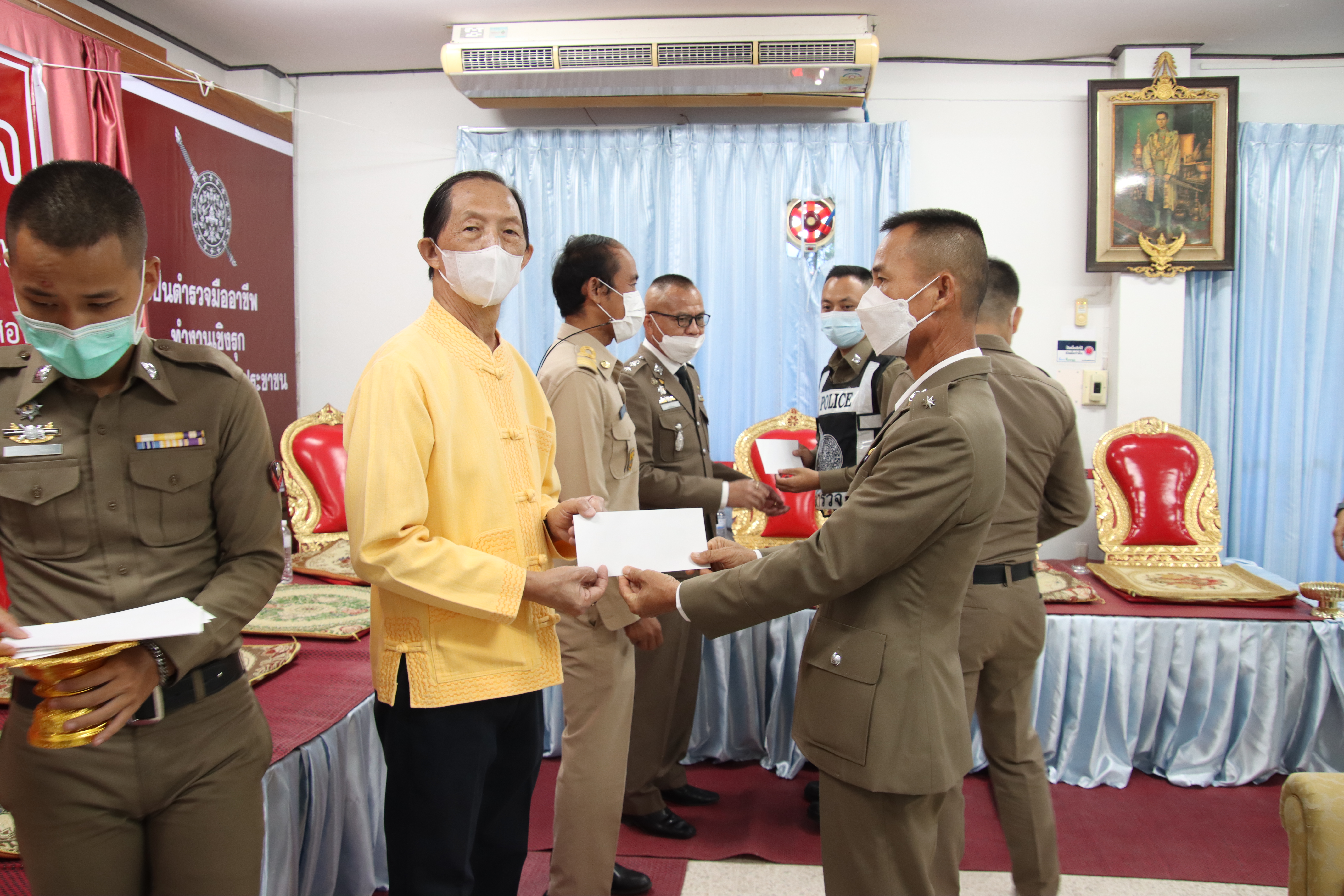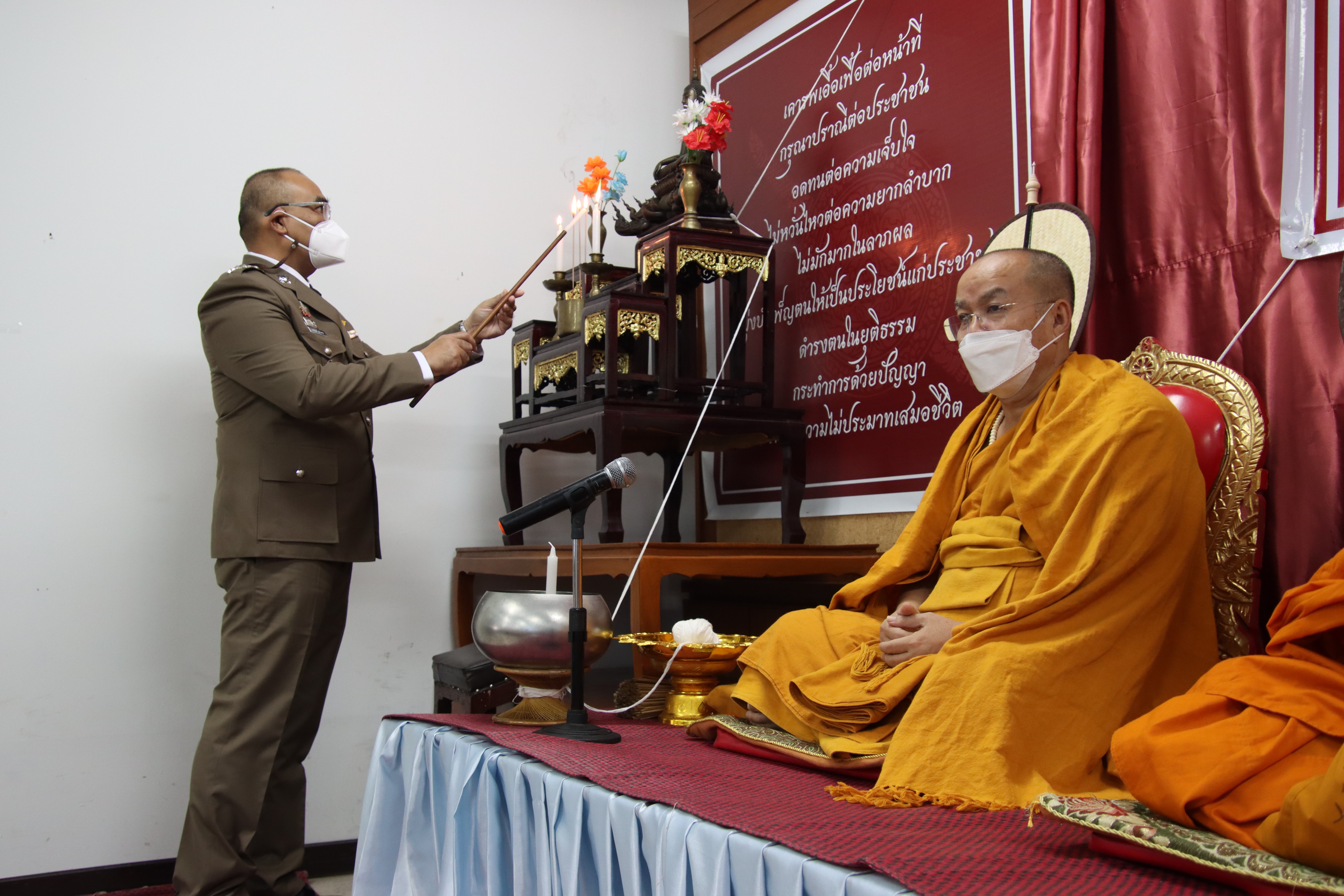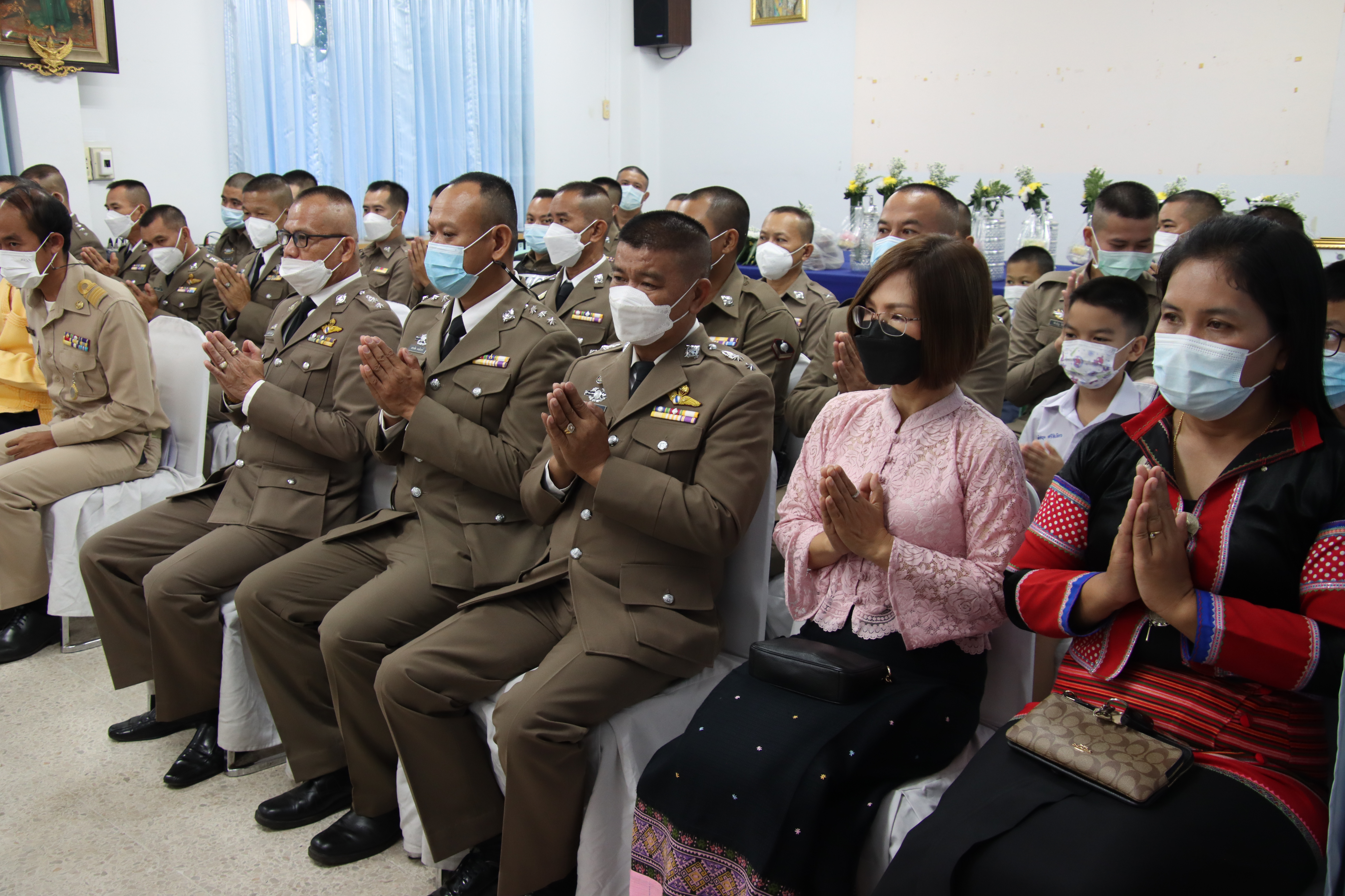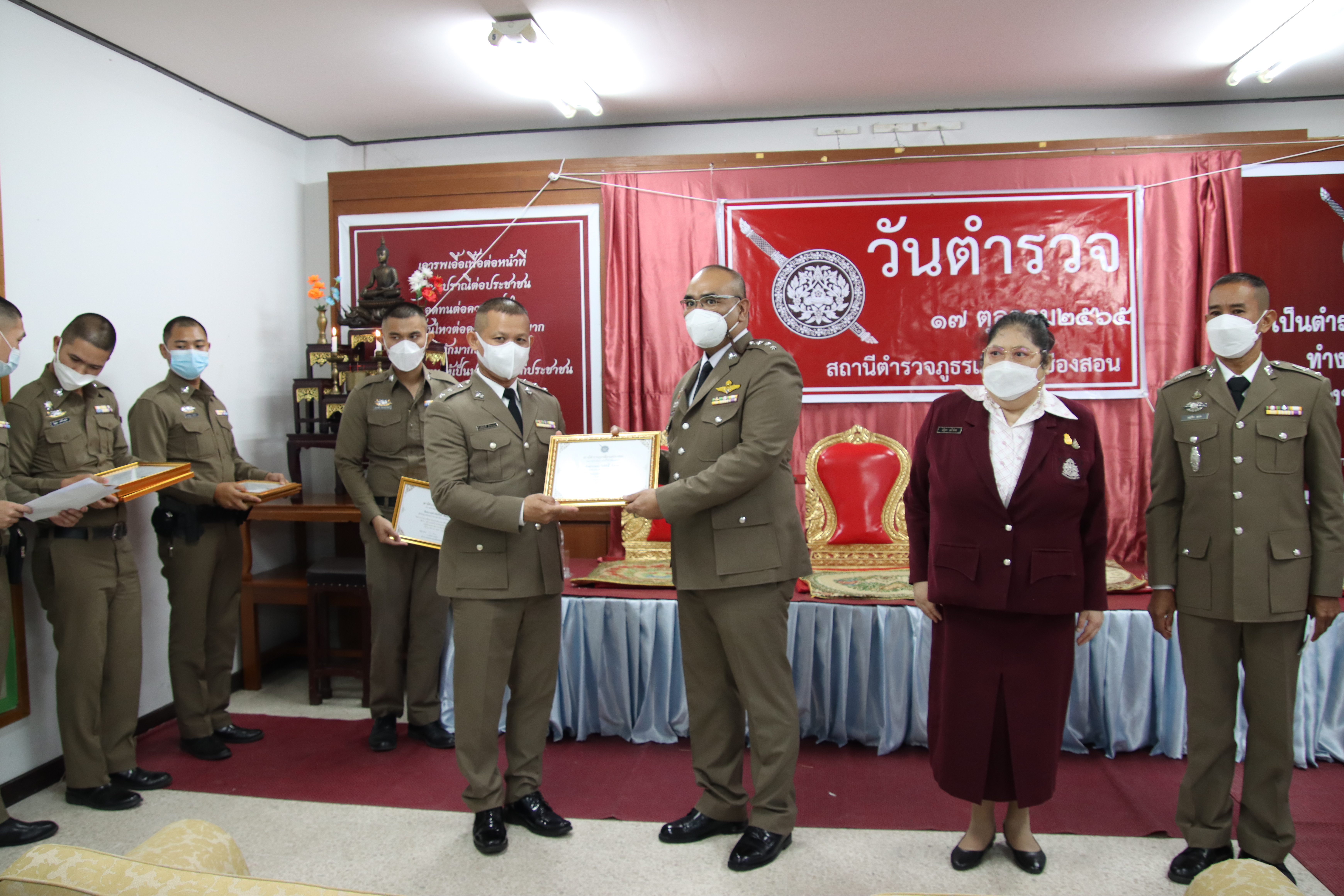 ภายหลังทำพิธีทางศาสนา พ.ต.อ.ภาสวินท์ แก้วต่าย ผกก.สภ.เมืองแม่ฮ่องสอน ได้มอบใบประกาศเกียรติคุณให้กับข้าราชการตำรวจที่มีผลงานดีเด่นและเป็นแบบอย่างที่ดีแก่ข้าราชการตำรวจในสายงานสืบสวน สอบสวน งานด้านธุรการ งานป้องกันและปราบปราม ให้นายตำรวจชั้นสัญญาบัตรและชั้นประทวน จำนวน 10 นาย และมอบทุนการศึกษาสหกรณ์ออมทรัพย์ตำรวจภูธรจังหวัดแม่ฮ่องสอน ให้บุตรข้าราชการตำรวจในสังกัด ระดับชั้นอนุบาล ถึง ระดับปริญญาตรี จำนวน 27 ทุน เพื่อเป็นขวัญกำลังใจในการปฏิบัติงานของเจ้าหน้าที่ตำรวจและส่งเสริมสนับสนุนการศึกษาให้บุตรข้าราชการให้มีทุนและกำลังใจในการศึกษาเล่าเรียน