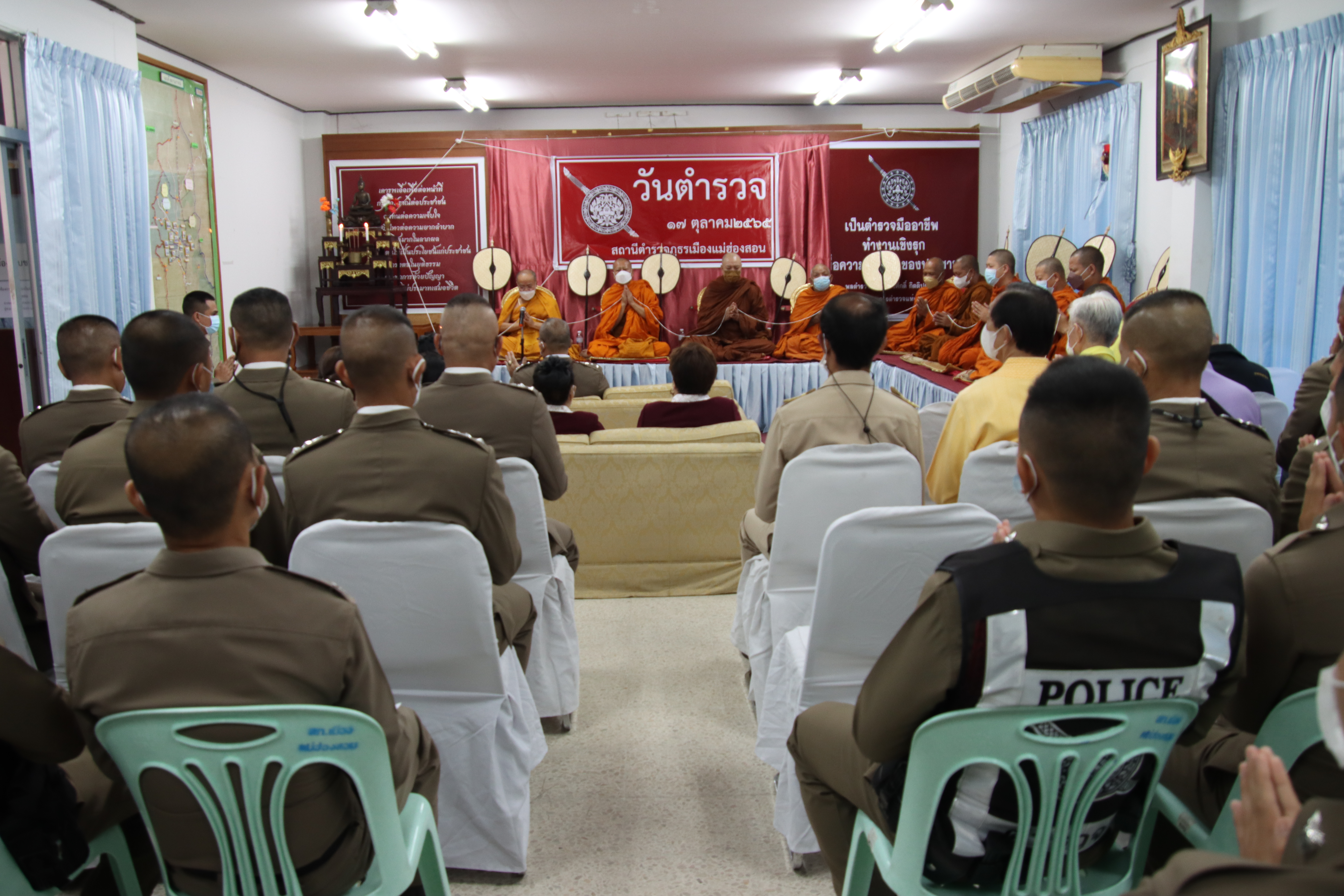 เมื่อวันที่ 17 ตุลาคม 2565 ที่กองกำกับการสถานีตำรวจภูธรเมืองแม่ฮ่องสอน พ.ต.อ.ภาสวินท์ แก้วต่าย ผู้กำกับการสถานีตำรวจภูธรเมืองแม่ฮ่องสอน ได้จัดงานวันตำรวจแห่งชาติ ขึ้น โดยนำเจ้าหน้าที่ตำรวจในสังกัด สักการะสิ่งศักดิ์สิทธิ์ ทำบุญเพื่อความเป็นสิริมงคลให้แก่ข้าราชการตำรวจในปกครองพร้อมด้วยครอบครัว โดยมีข้าราชการตำรวจในสังกัด และ ข้าราชการฝ่ายพลเรือน ภาคเอกชน เดินทางมาร่วมงานเป็นจำนวนมาก
