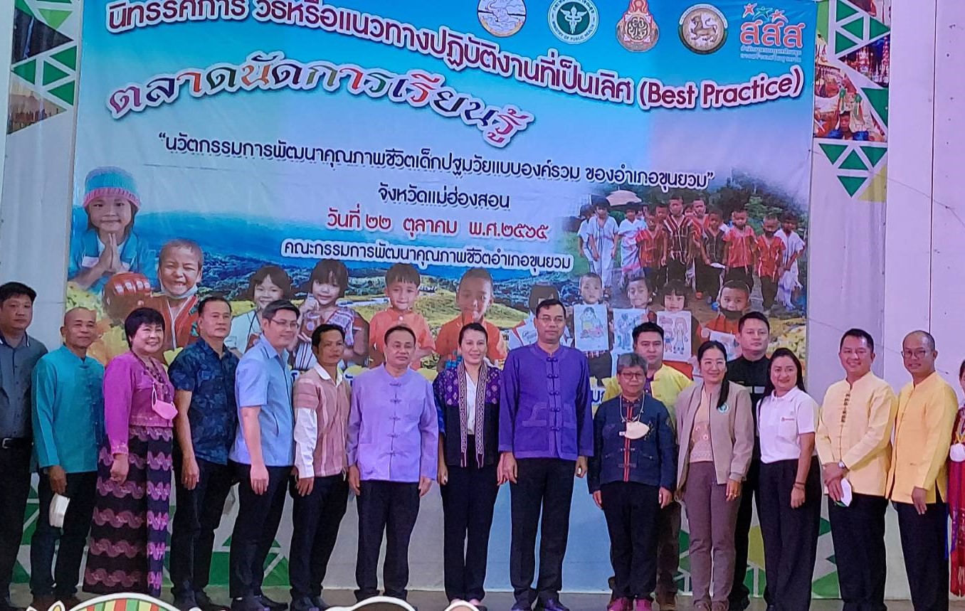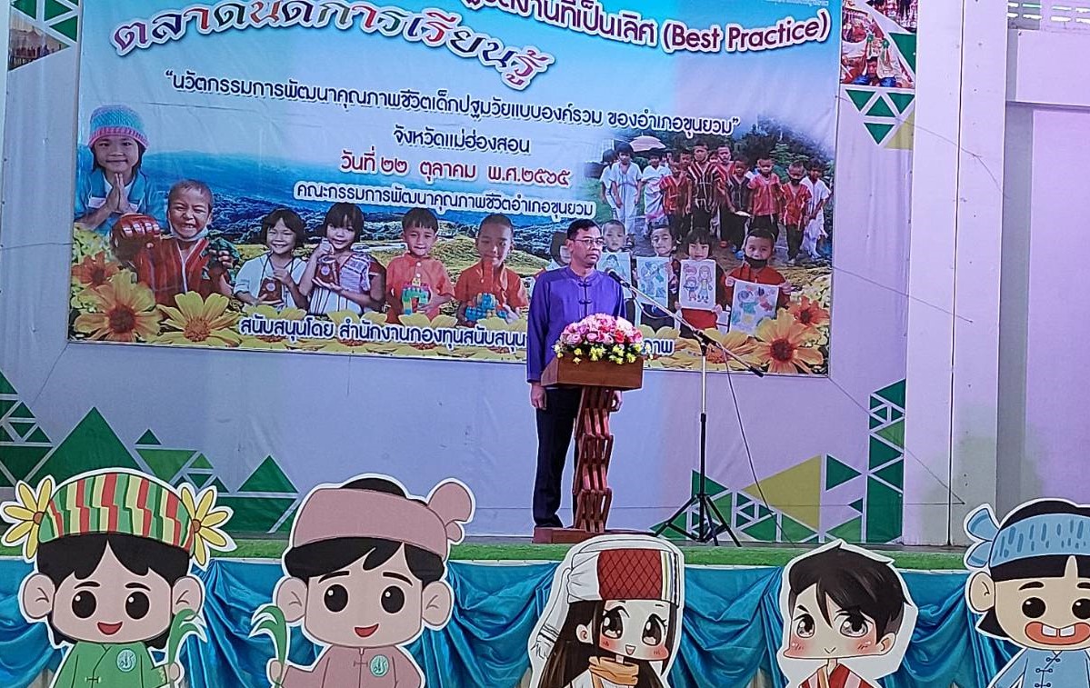 คณะกรรมการพัฒนาคุณภาพชีวิต อ.ขุนยวม จัดกิจกรรมตลาดนัดการเรียนรู้ นวัตกรรมการพัฒนาคุณภาพชีวิต เด็กปฐมวัยแบบองค์รวม เพื่อพัฒนาระบบการดูแลเด็กปฐมวัย ทั้งในครอบครัว และศูนย์พัฒนาเด็กเล็กในโรงเรียน