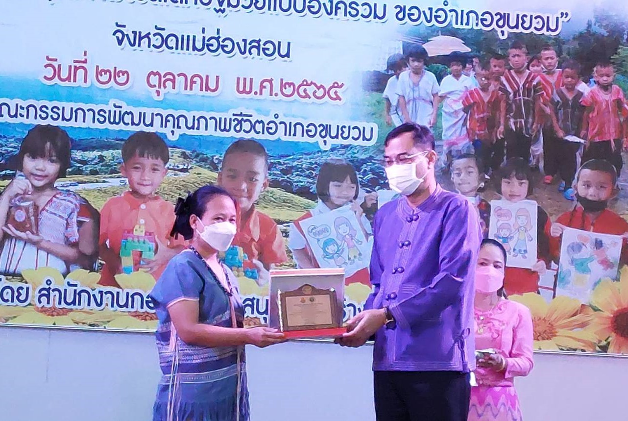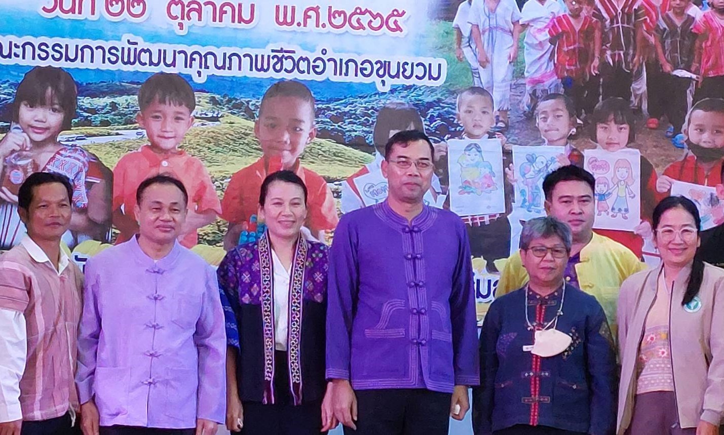โดย คณะกรรมการพัฒนาคุณภาพชีวิตอำเภอขุนยวม ได้ร่วมกันจัดกิจกรรมตลาดนัดการเรียนรู้ “นวัตกรรมการพัฒนาคุณภาพชีวิต เด็กปฐมวัยแบบองค์รวม เพื่อพัฒนาระบบการดูแลเด็กปฐมวัย ทั้งในครอบครัว ศูนย์พัฒนาเด็กเล็ก ในโรงเรียน และในชุมชน ให้เอื้อต่อการส่งเสริมพัฒนาการทั้งด้านร่างกาย จิตใจ สังคม และสติปัญญา อันจะส่งผลต่อการเป็นทรัพยากรมนุษย์ที่มีคุณภาพในอนาคต เป็นการขับเคลื่อนงานที่เป็นรูปธรรม ตามเป้าหมายการสร้างทรัพยากรมนุษย์ที่มีคุณภาพ แก่อำเภอขุนยวมในอนาคต โดยมีโรงเรียนประถมศึกษา ศูนย์พัฒนาเด็กเล็ก โรงพยาบาลขุนยวม สำนักงานสาธารณสุขอำเภอขุนยวม โรงพยาบาลส่งเสริมสุขภาพตำบลทุกแห่ง ผู้ปกครอง และ อสม.ทุกหมู่บ้าน เข้ามาร่วมกันดำเนินงานพัฒนาคุณภาพชีวิตของเด็กปฐมวัยอำเภอขุนยวมในครั้งนี้