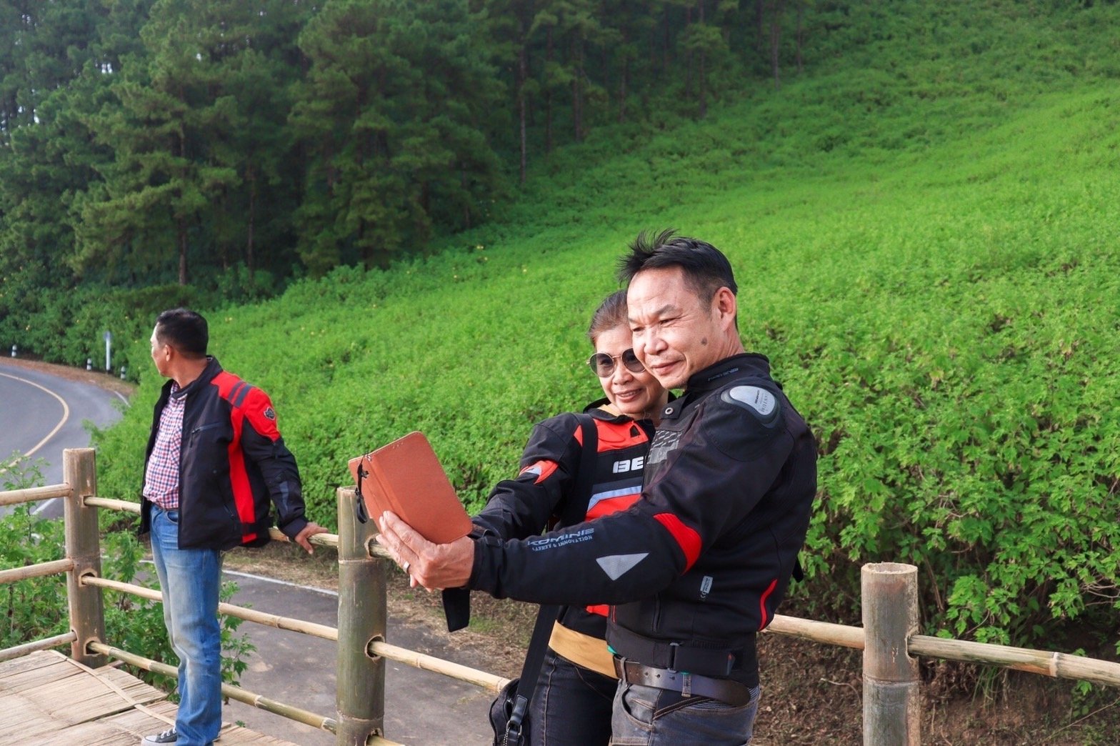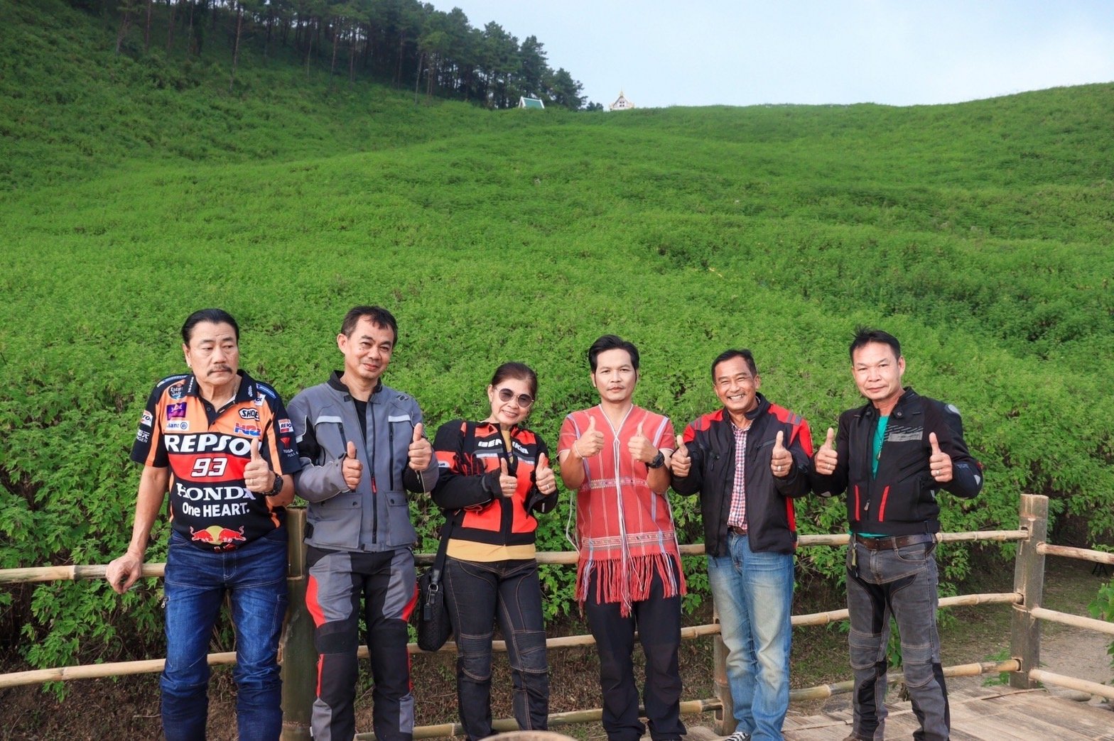 นายก อบต.แม่อูคอ อ.ขุนยวม จ.แม่ฮ่องสอน ให้การต้อนรับ นักท่องเที่ยวจากจังหวัดประจวบคีรีขันธ์ ชุดแรกของปีนี้ ที่เดินทางโดยรถบิ๊คไบค์ สู่ดอยแม่อูคอ ในขณะที่ดอกบัวตองเริ่มบานสวยแล้ว 10%