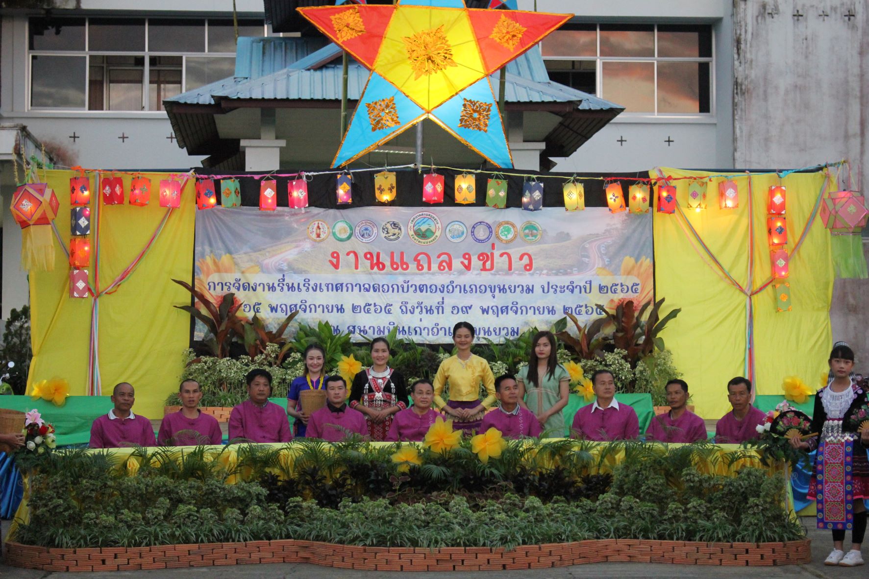 เมื่อช่วงค่ำวันที่ 4 พฤศจิกายน 2565 ณ ลานหน้าสำนักงาน ทต.ขุนยวม นายณรงค์พัชญ์ นาคทรัพย์ นอภ.ขุนยวม เป็นประธานการแถลงข่าว การจัดงานรื่นเริงเทศกาลดอกบัวตองบาน อ.ขุนยวม ประจำปี 2565 พร้อมด้วย นายธนากร จันทร์โอภาส ท้องถิ่น อ.ขุนยวม ,นายจำลอง จิโนเป็ง นายก ทต.ขุนยวม ,นายบุญยืน แสงอ่อน รองนายก อบต.ขุนยวม ,นายอโณทัย สมหวัง ผู้อำนวยการกองช่าง รักษาราชการแทนปลัด อบต.แม่ยวมน้อย ปฏิบัติหน้าที่นายก อบต.แม่ยวมน้อย ,นายชาคร กันตีมูล นายก อบต.เมืองปอน ,นายธะนะสิทธิ์ เนื้อนวลจันทร์ นายก อบต.แม่เงา ,นายบุญมี ใจสนอง รองนายก อบต.แม่กิ๊ และ นายธารา ชมสมองเลิศ นายก อบต.แม่อูคอ ร่วมกันแถลงข่าวเตรียมพร้อมการจัดงาน