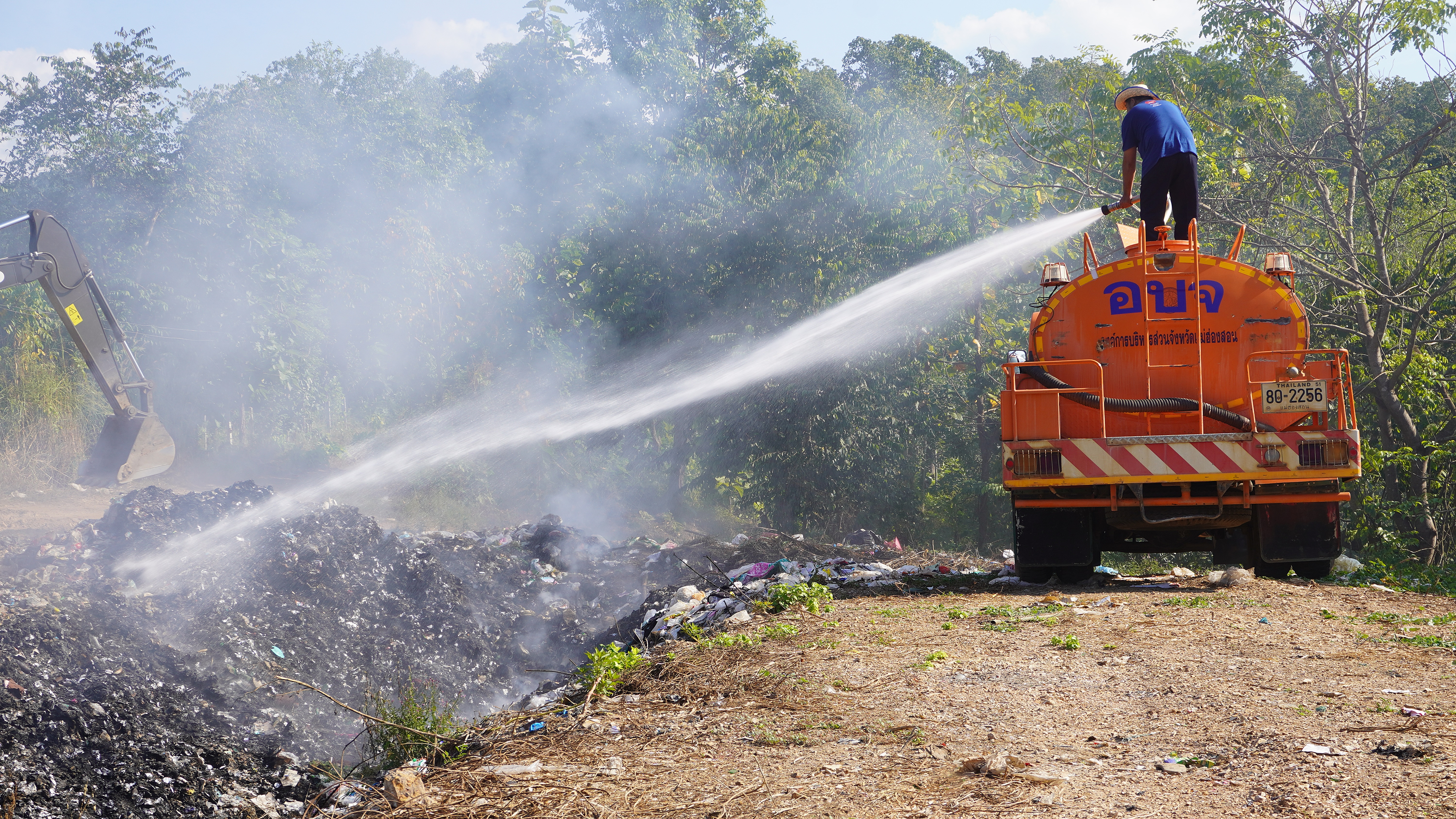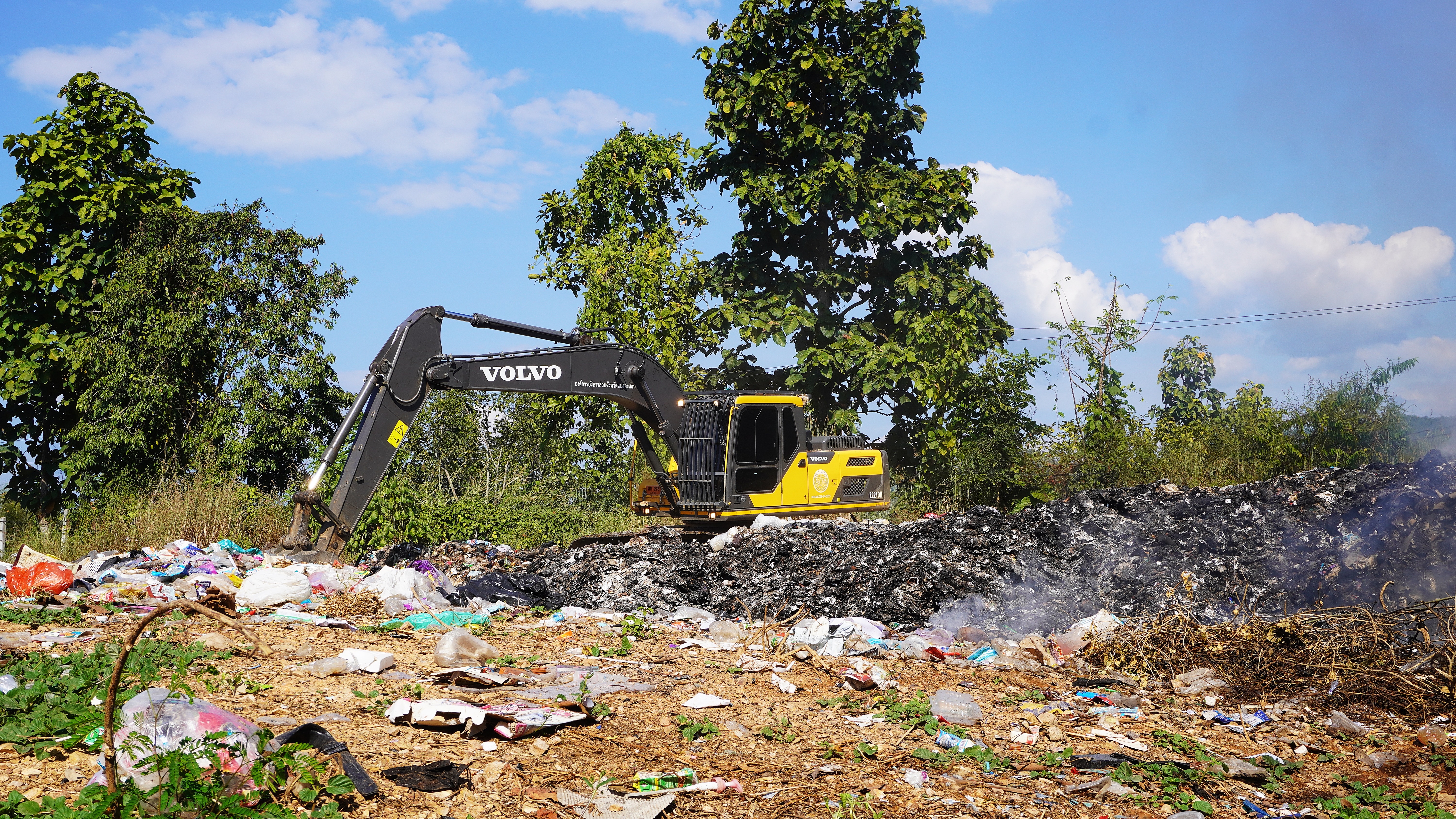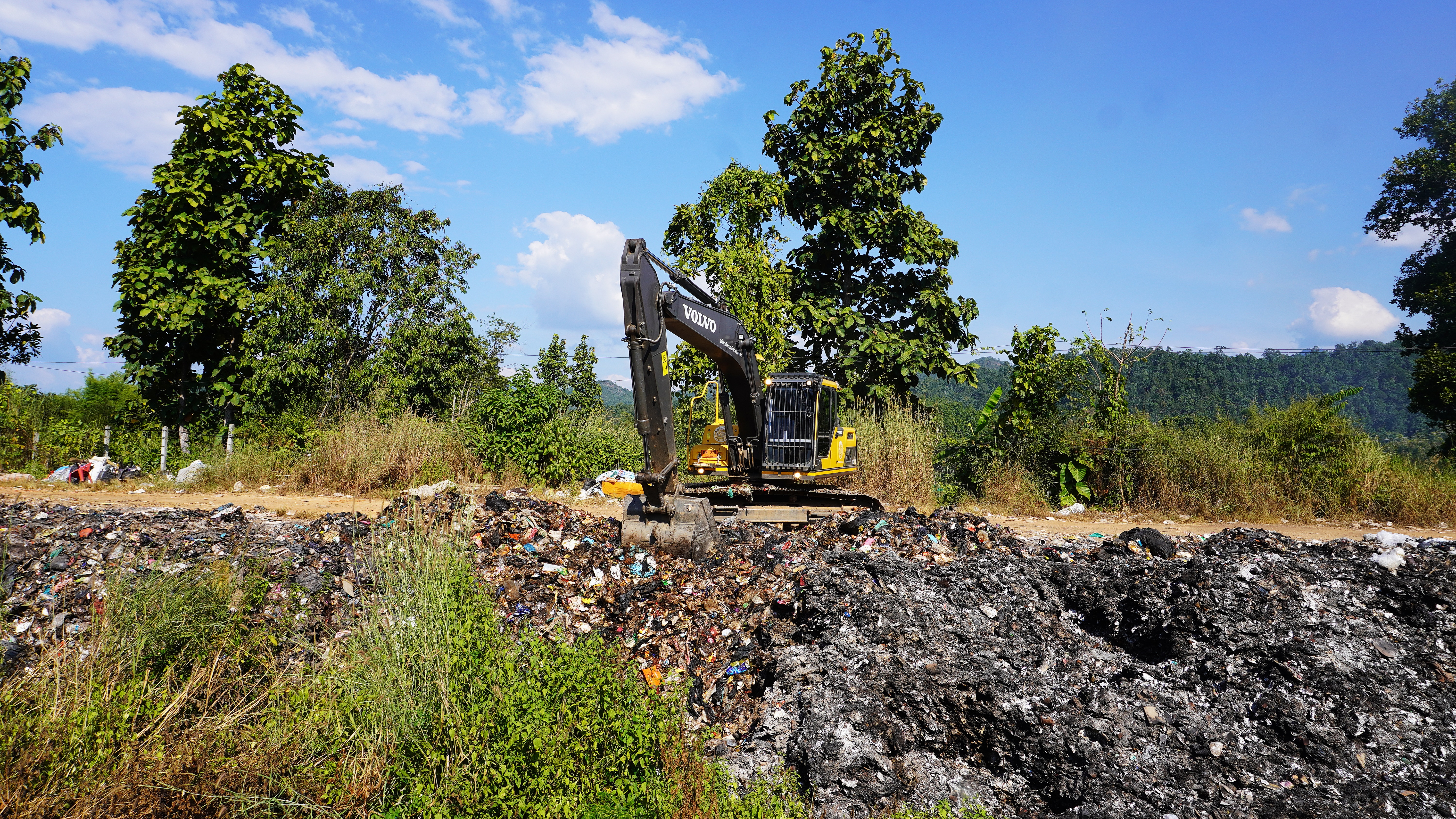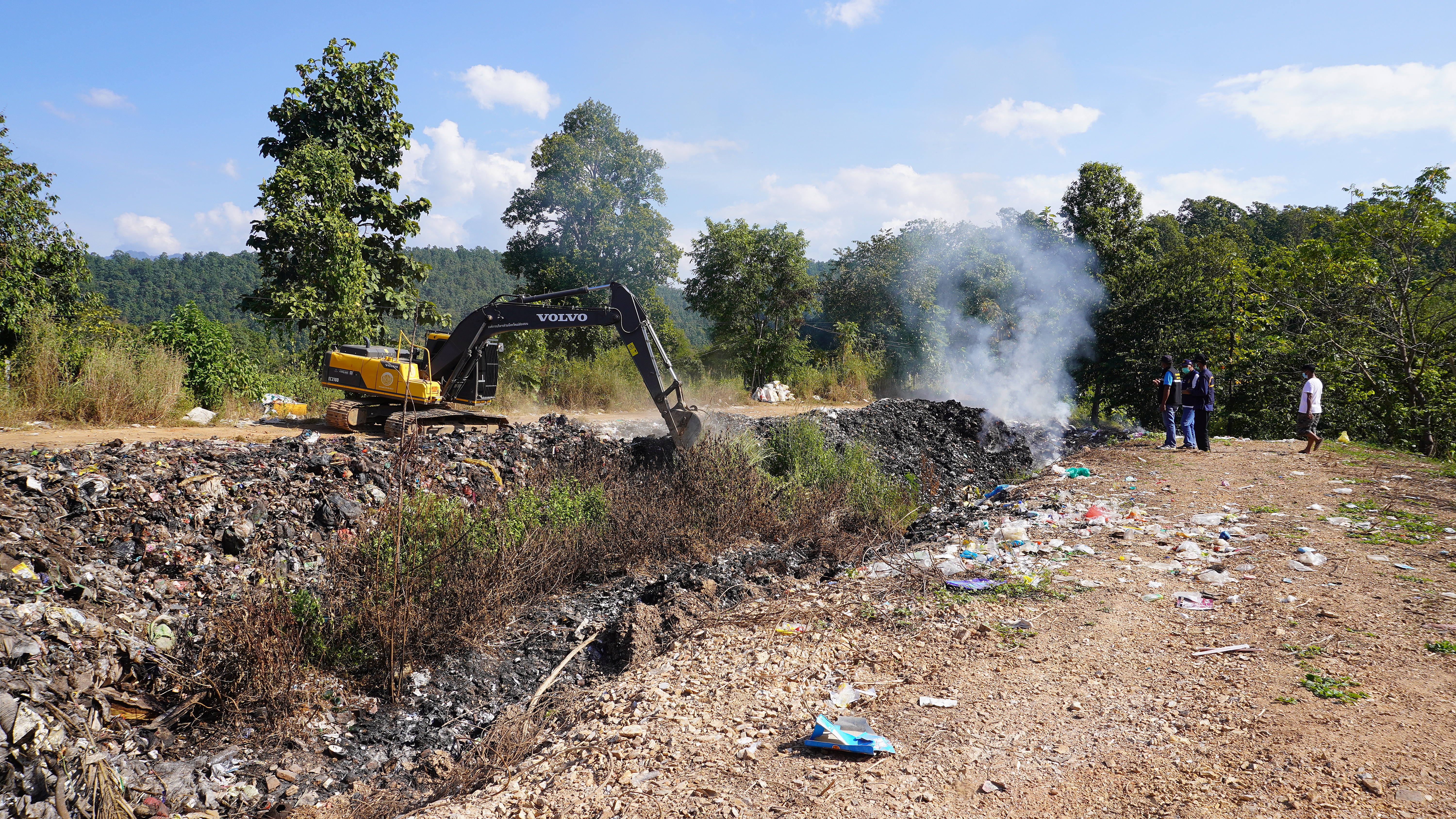 อบจ.แม่ฮ่องสอน ส่งเครื่องรถแบ็คโฮกลบฝังขยะ พร้อมรถน้ำฉีดพ่น หลังเกิดไฟไหม้บ่อขยะที่บ้านทุ่งกองมู สร้างมลพิษทางอากาศ ชาวบ้านเดือดร้อนเป็นเวลาเกือบเดือน