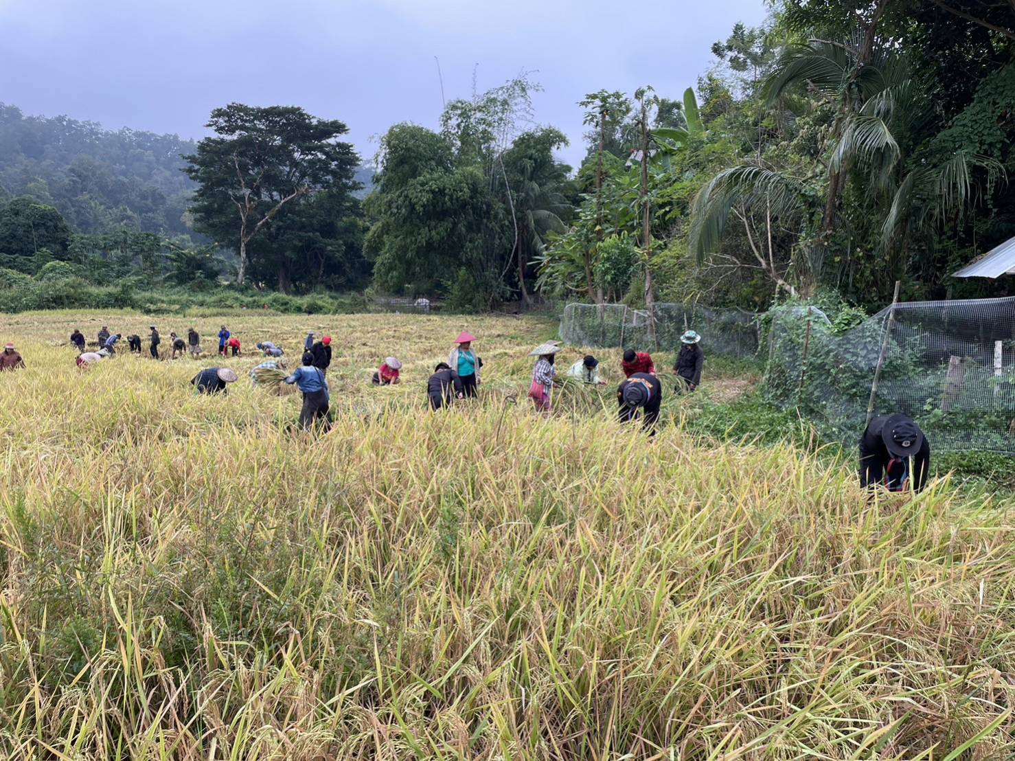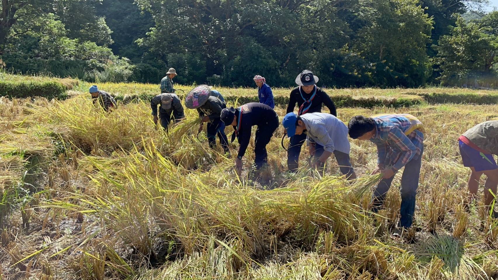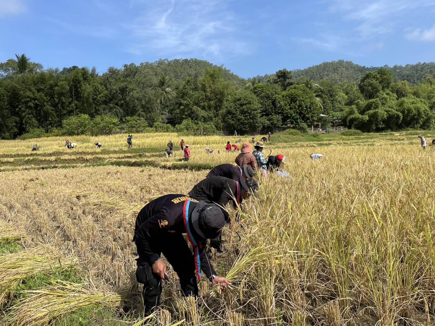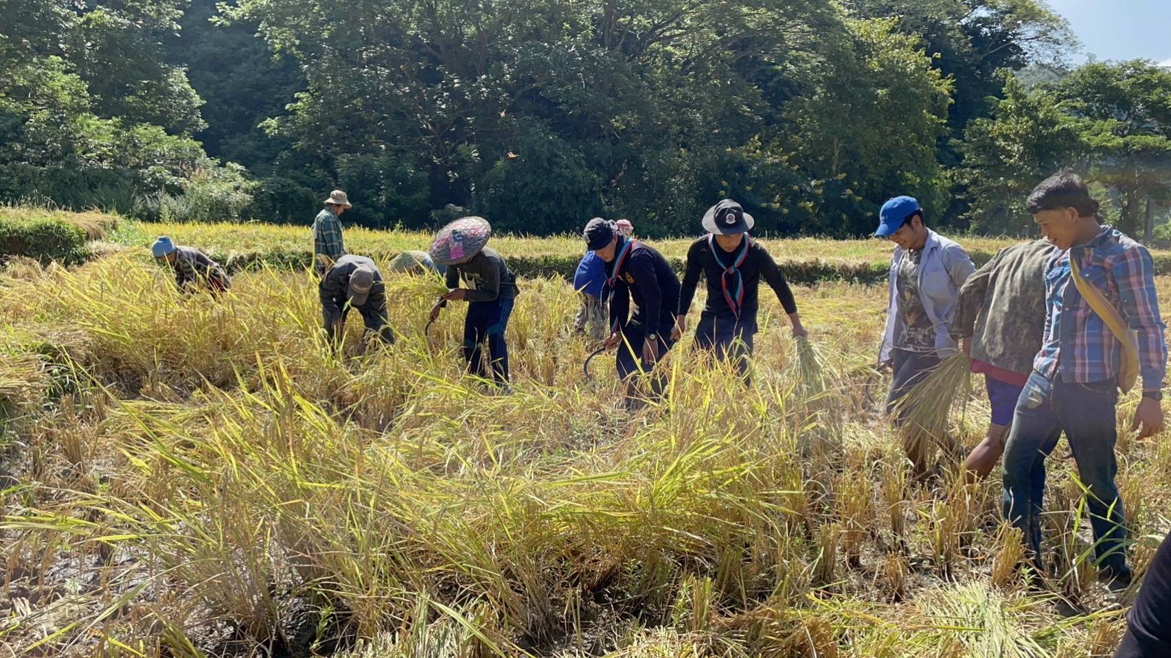 วันนี้ กองร้อยทหารพรานที่ 3605 หน่วยเฉพาะกิจกรมทหารพรานที่ 36 ร่วมกับ ผู้นำชุมชนและราษฎรในพื้นที่ บ.ท่าตาฝั่ง ร่วมกิจกรรมลงแขกเกี่ยวข้าวในนาของ นายสุทธิพงศ์ ปัญญาคม บ.ท่าตาฝั่ง ม.7 ต.แม่ยวม อ.แม่สะเรียง จ.แม่ฮ่องสอน บนเนื้อที่ประมาณ 15 ไร่ มีผู้เข้าร่วมกิจกรรม จำนวน 90 คน
