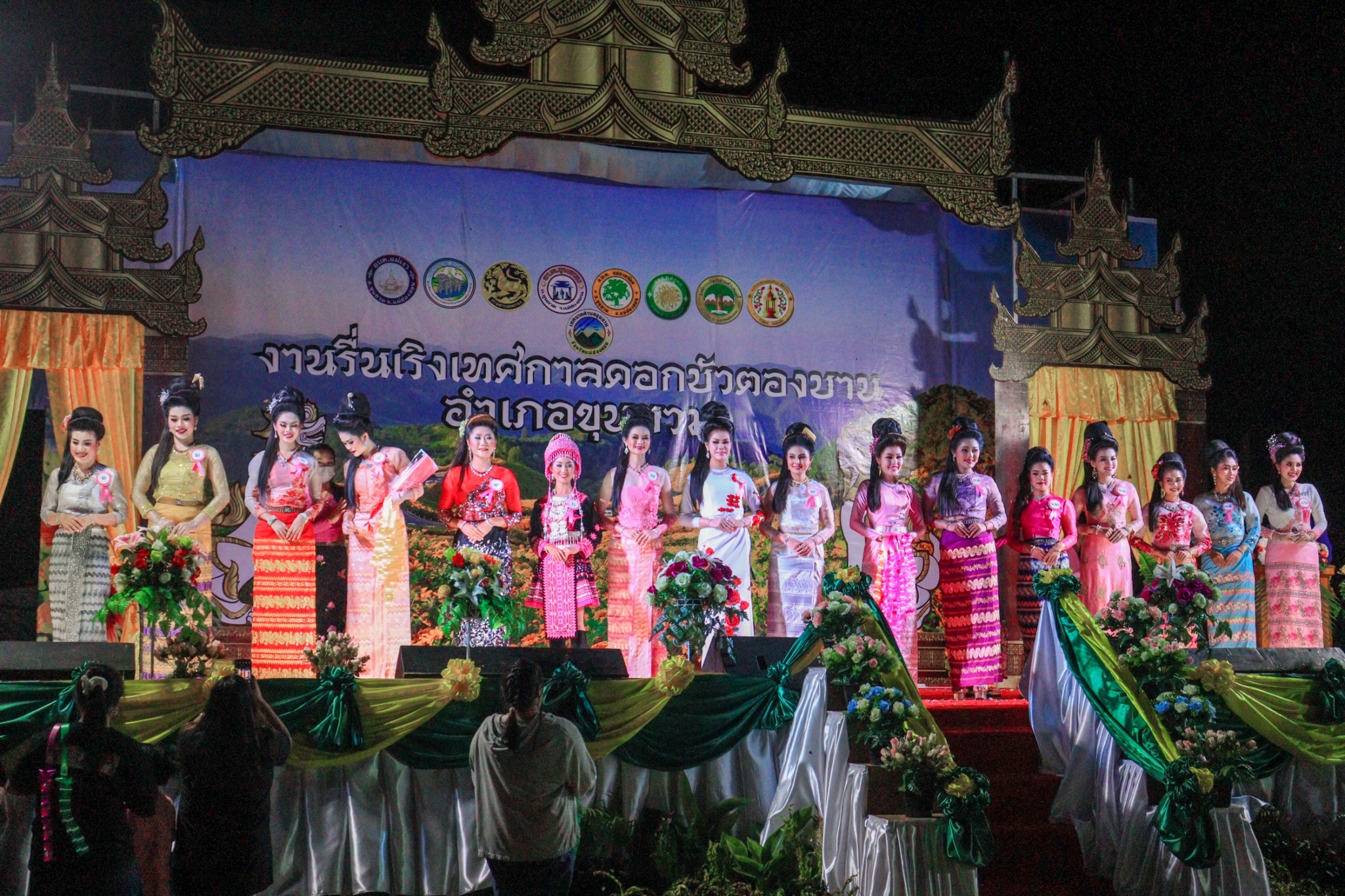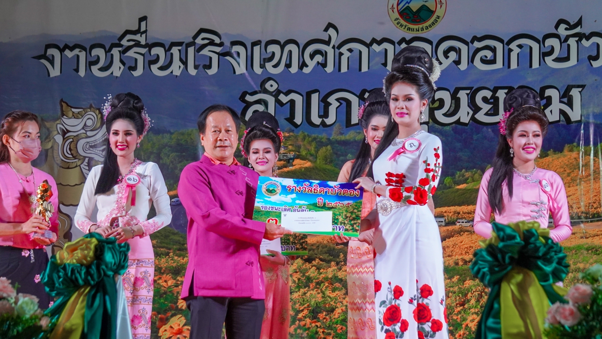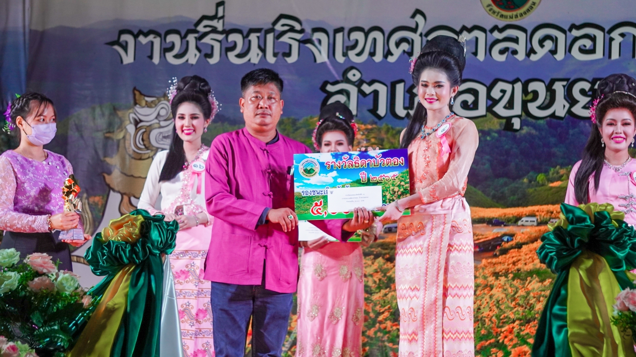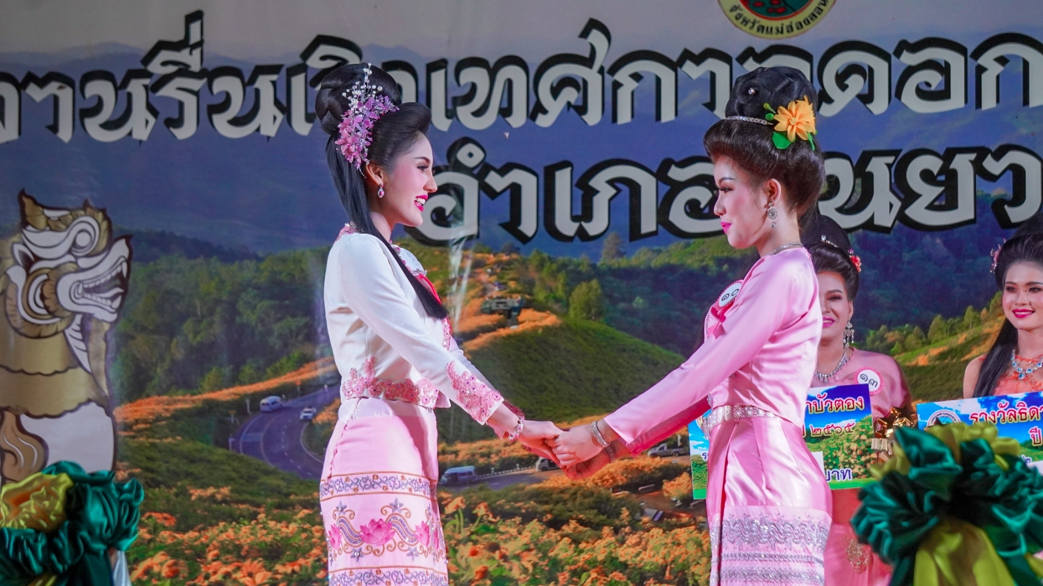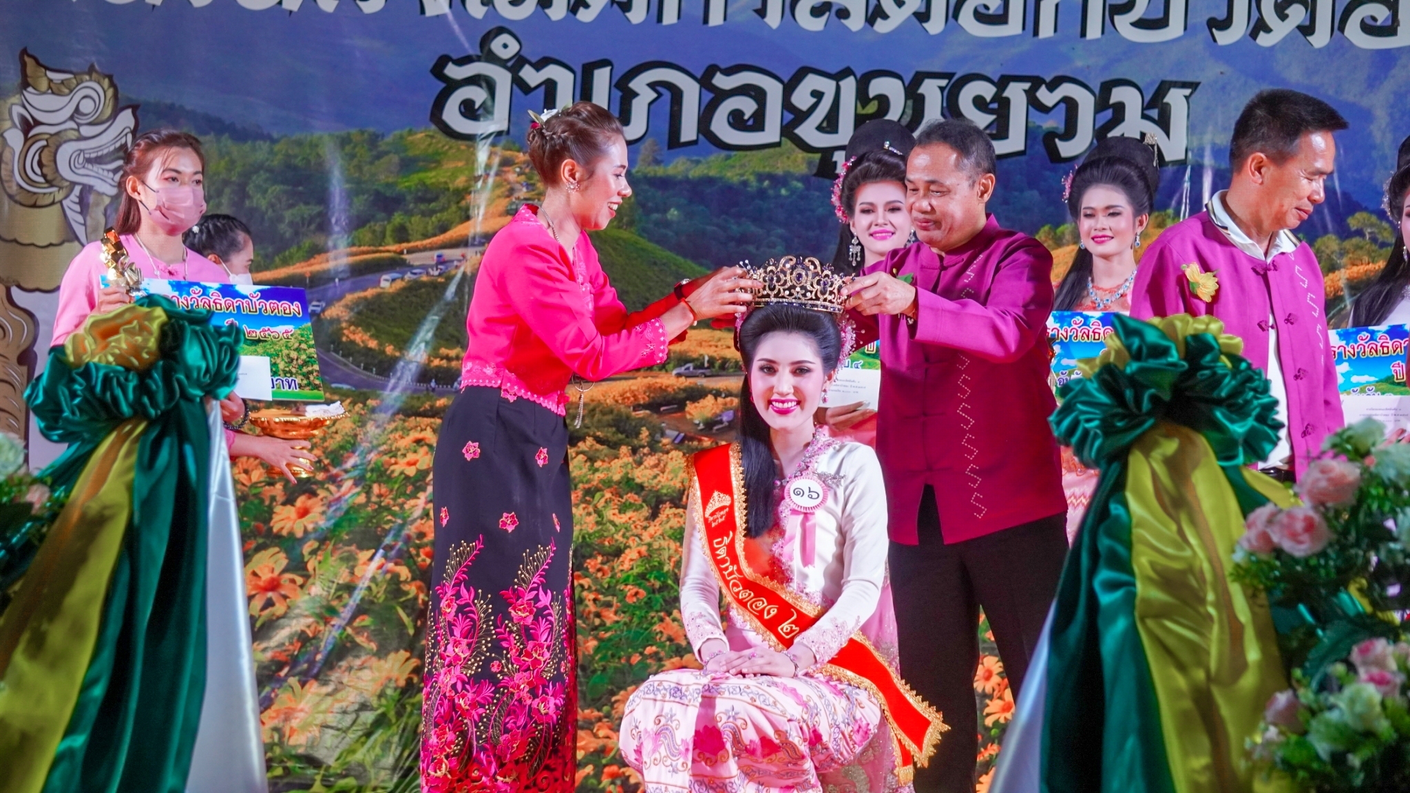 งานรื่นเริงเทศกาลดอกบัวตองบานที่ อ.ขุนยวม จ.แม่ฮ่องสอน มีการประกวดธิดาบัวตอง ในปีนี้สาวงามที่คว้าชัย เป็นสาวงามจาก อบต.แม่อูคอ เจ้าถิ่นในทุ่งบัวตอง